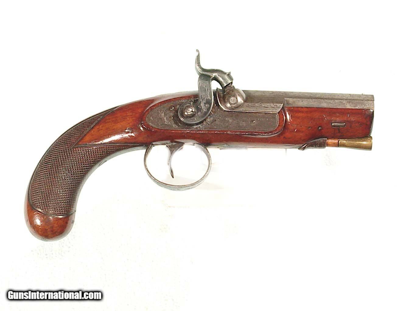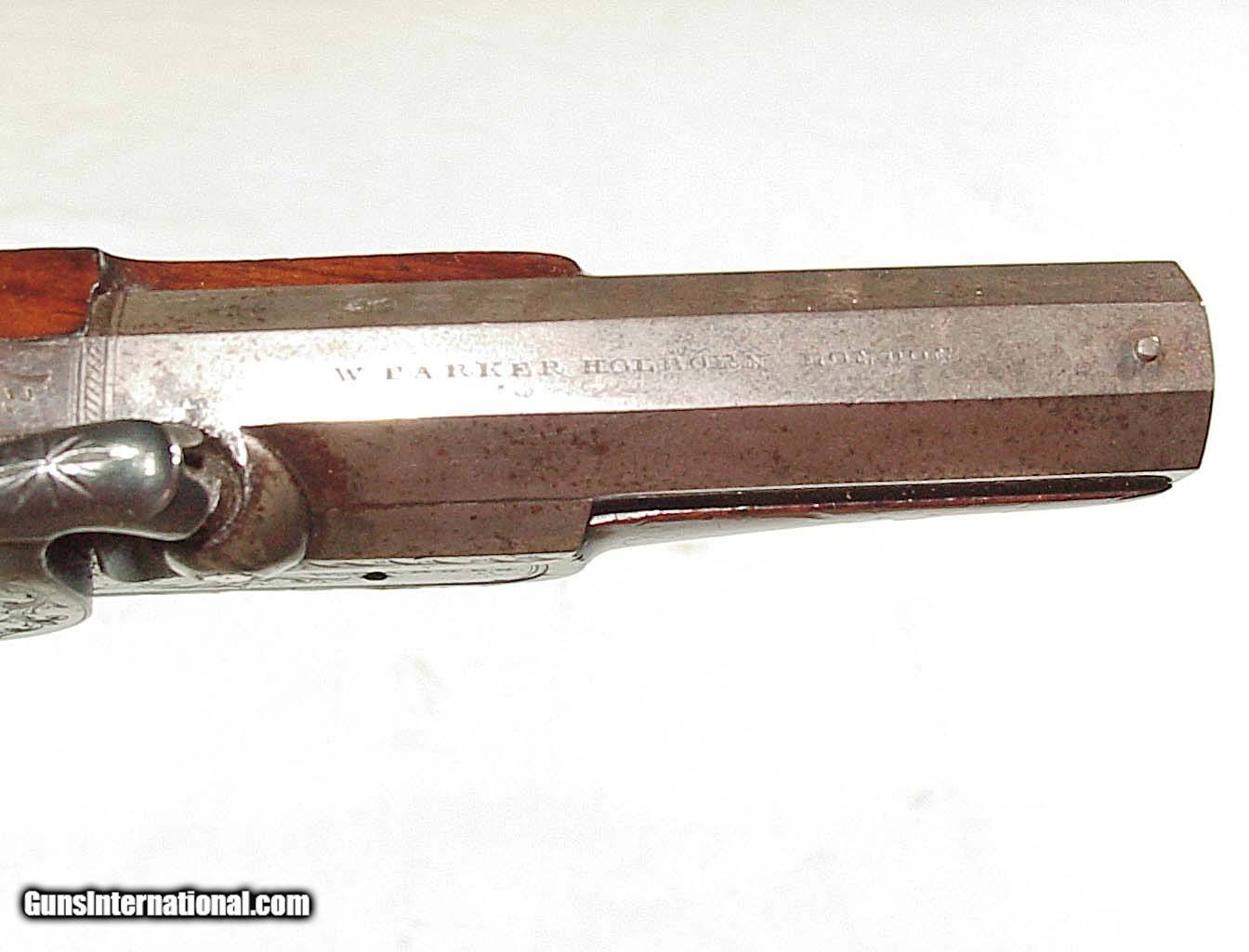 BRITISH PERCUSSION GREAT COAT PISTOL BY "W. PARKER, HOLBORN LONDON