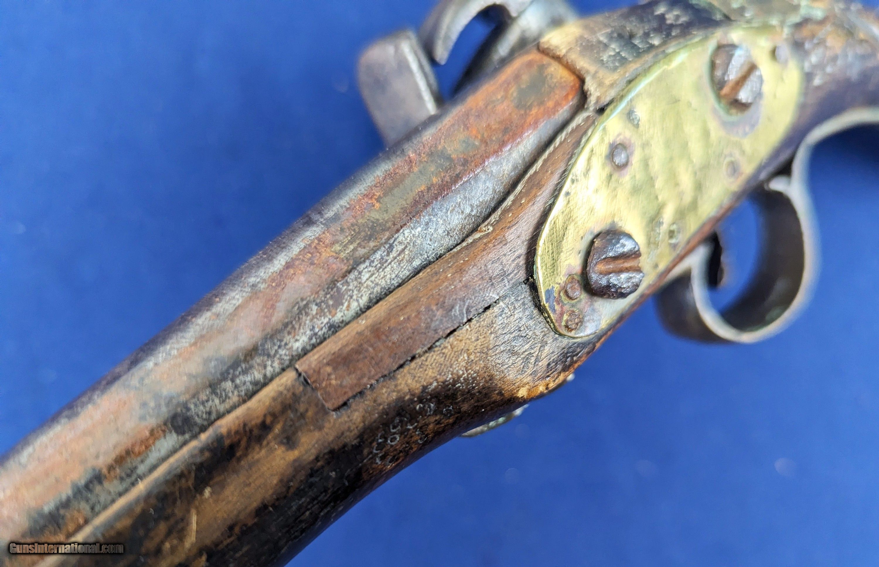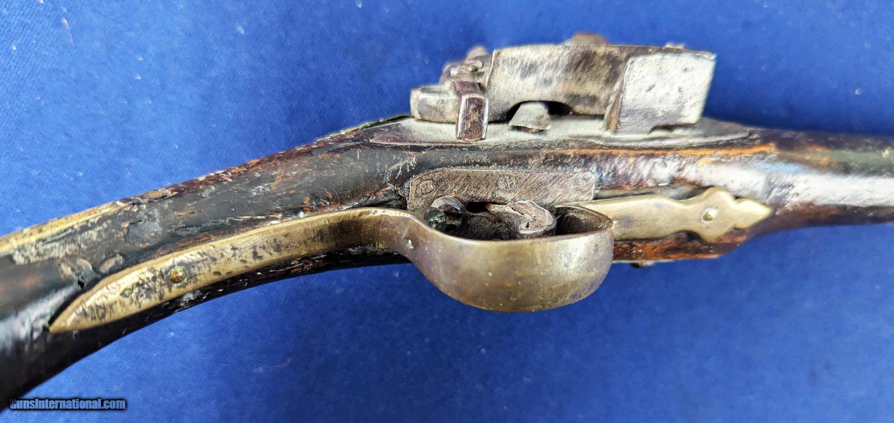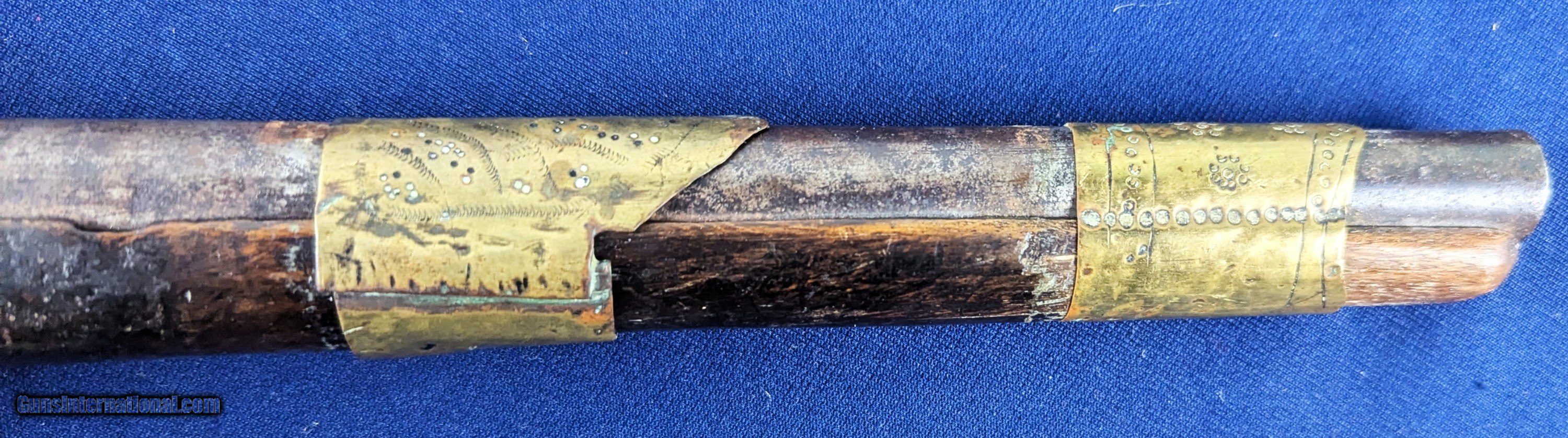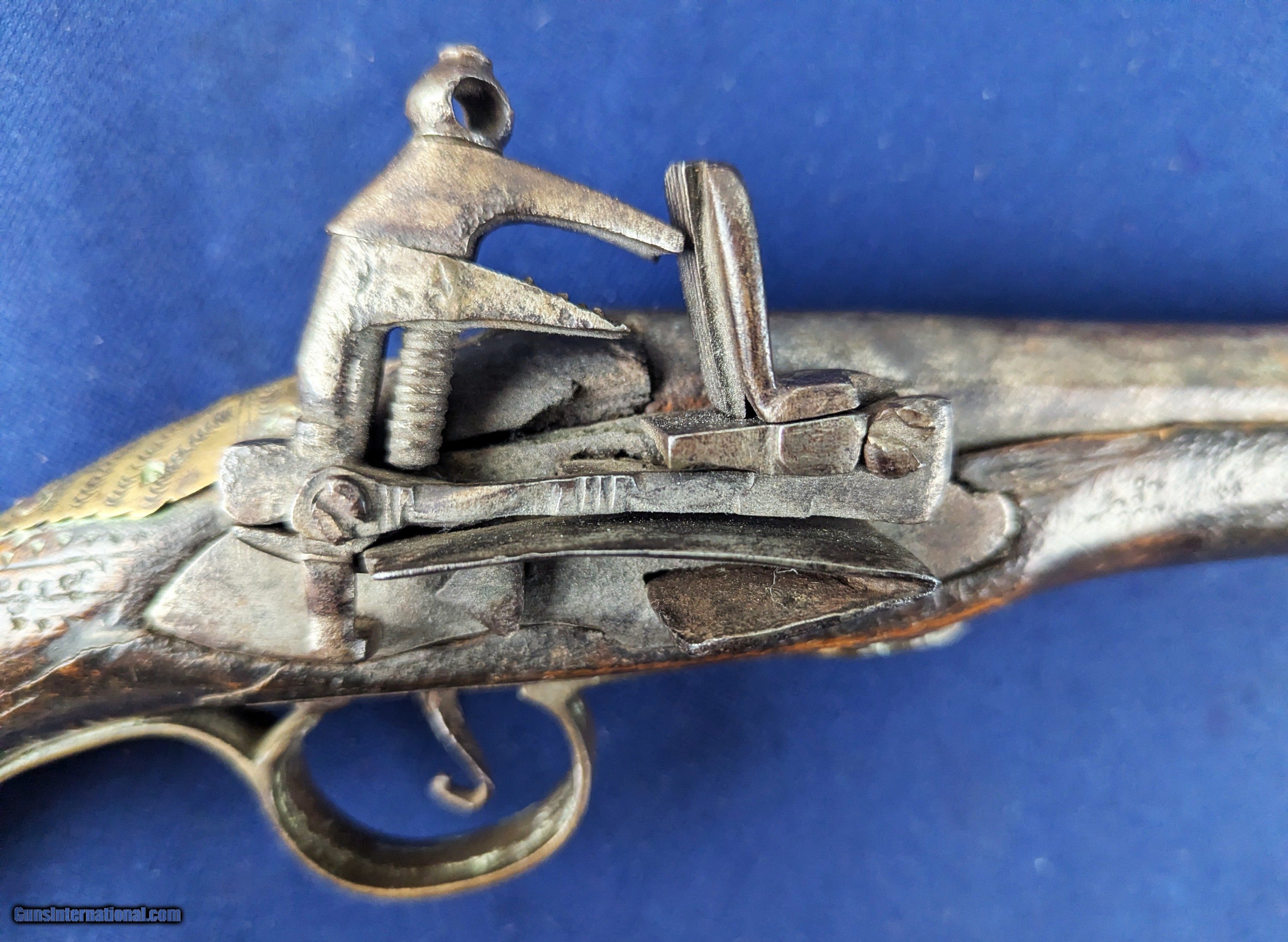 Description: Classic Early 19th Century Albanian “Rat Tail” Flintlock Pistol Offered here for sale and just acquired among a collection of Indo Persian firearms and edged weapons is this classic Albanian “rat-tail” flintlock (or more often “miquelet lock”) pistol. The “rat-tail” pistol is a type of muzzle-loading handgun often described as having a slender, tapered or “rat-tail” butt / stock. Its graceful, narrow outline made it easy to carry. Mechanically, many of these pistols used a Miquelet lock, a type of flint-against-steel ignition widely used in Mediterranean/Eastern-Europe firearms. Despite being a “Miquelet” (or flintlock) pistol, the term “rat-tail” emphasizes the distinctive shape more than the lock type; the slender, tapering butt / grip is the defining aesthetic feature. These are strongly associated with Albanian gunsmithing traditions within the broader context of Ottoman-Balkan firearms production. “Rat-tail” / miquelet pistols seem to have been manufactured from the 18th century through at least the first half of the 19th century. These pistols were typically carried as holster or side pistols, often worn in a sash or belt rather than a formal holster. They were common among Balkan irregular soldiers, militia, local fighters, or civilians. This pistol has seen a good deal of use and also sports a repaired/restored piece of wood top of comb. Still very complete and a fine early collectible antique pistol. Standard shipping is $42. however final shipping amount is based upon geographical area. Handling is $18.00 for longarms only. We gladly accept money orders, bank checks and personal checks. Credit card orders (VISA AND MASTER CARD ONLY) charged 3.95% additional for use. PLEASE CALL DALIA AT 203-257-5256 TO GIVE CREDIT CARD I NFORMATION. Also, please view our at hansenguns. Clicencounhterk on "Online Catalog" and see All OF OUR ITEMS LISTED CONSECUTIVELY on or search online on that site with the ID “lope”...... OFFERED ONLINE AND AVAILABLE IN OUR RETAIL GALLERY IN SOUTHPORT, CT. Visit us also on Facebook at ://facebook/hansenguns/?fref=ts. We also own and/or operate Hansen Cartridge Co. and the Ruger Collectors Assc.(RCA). Hansen & Hansen wishes to expedite each order received, however we ship 80-100 items weekly, therefore orders paid by money orders or bank checks are cleared for shipping 5-7 days after deposited funds show in our account. Shipping date is scheduled ONLY AFTER VERIFICATION TAKES PLACE AND FFL/C&R IS RECEIVED (IF APPLIES). This is 5-7 days after WE receive order by mail - NOT customer date mailed and postmarked and after credit card funds are posted. Credit card orders exceeding $500 must be cleared through customer’s bank before shipping. Personal checks are accepted but orders are held UP TO 3 WEEKS after deposit of funds before items released for shipping. IF you have special instructions or require overnight or expedited shipping please advise at time of ordering and we will gladly prioritize shipping FOR AN ADDITIONAL CHARGE. THIS IS OUR POLICY and we encourage buyers to PLEASE READ AND UNDERSTAND OUR POLICY BEFORE . We would be pleased to answer ANY questions by phone (our toll free number is 1-800-571-7337 or e-mail cwlopiaol. Antique: Yes Handgun Caliber: .60 Price: $675.00 Contact Seller |
