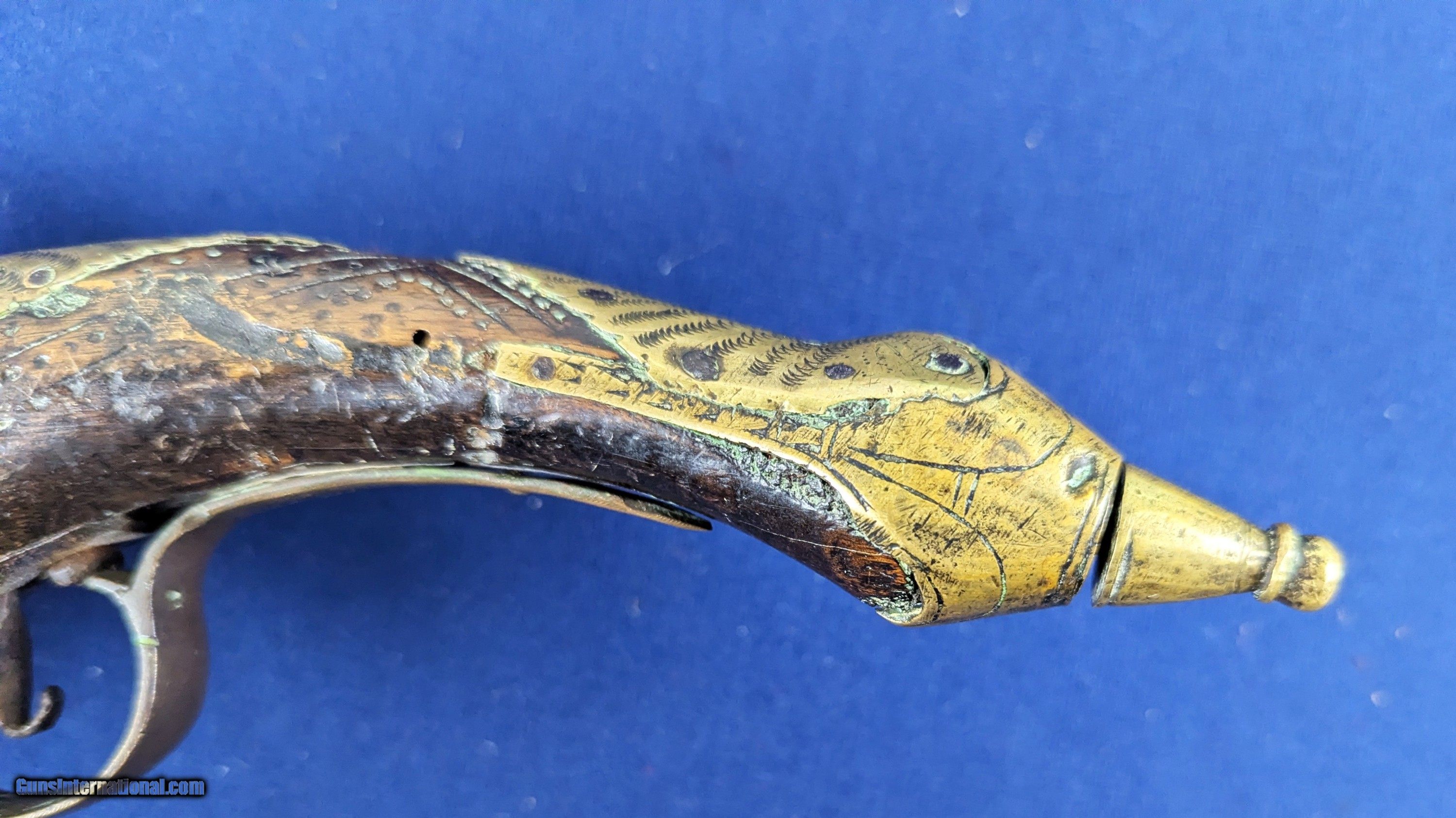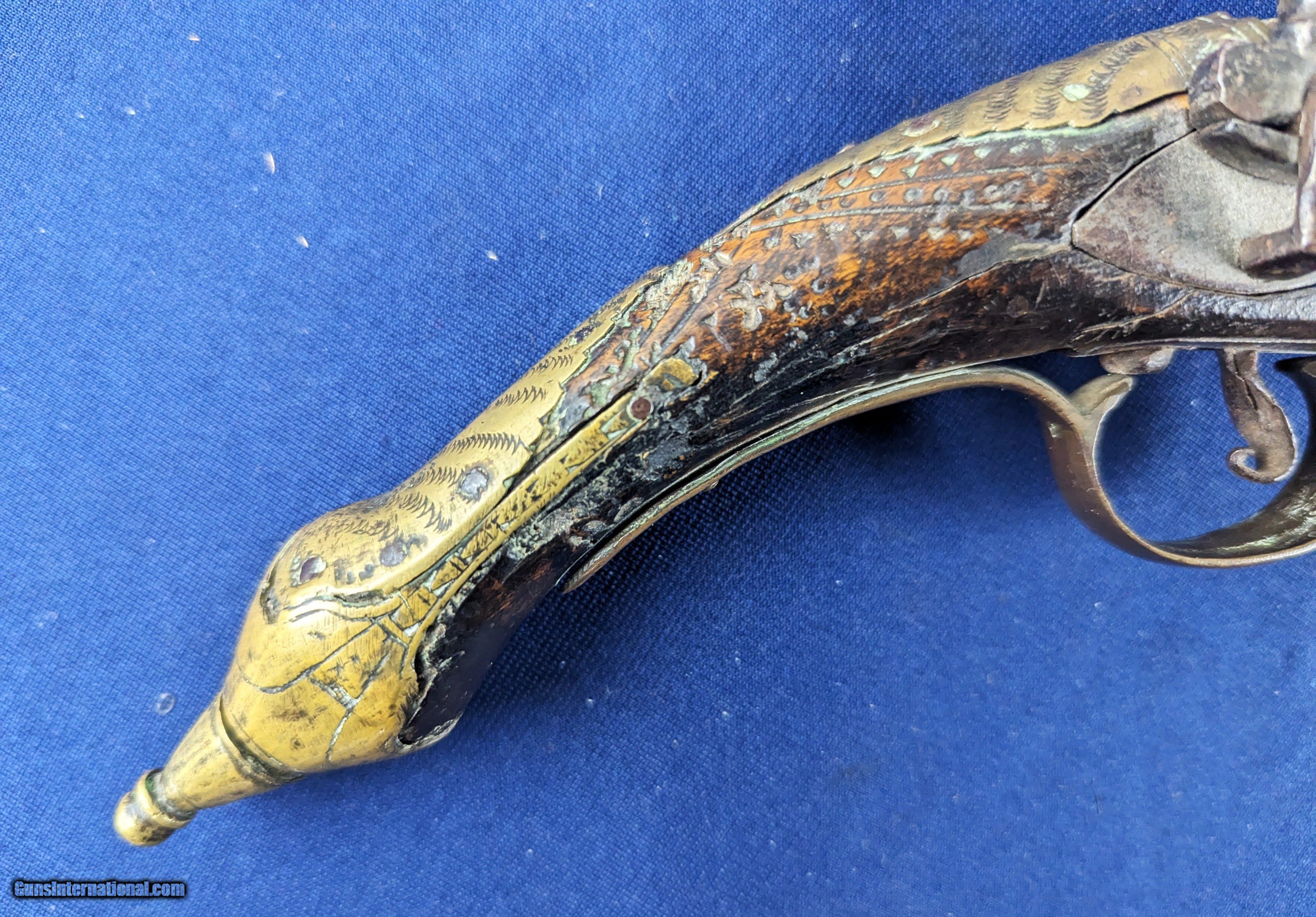 Classic Early 19th Century Antique Albanian “Rat Tail” Flintlock Pistol