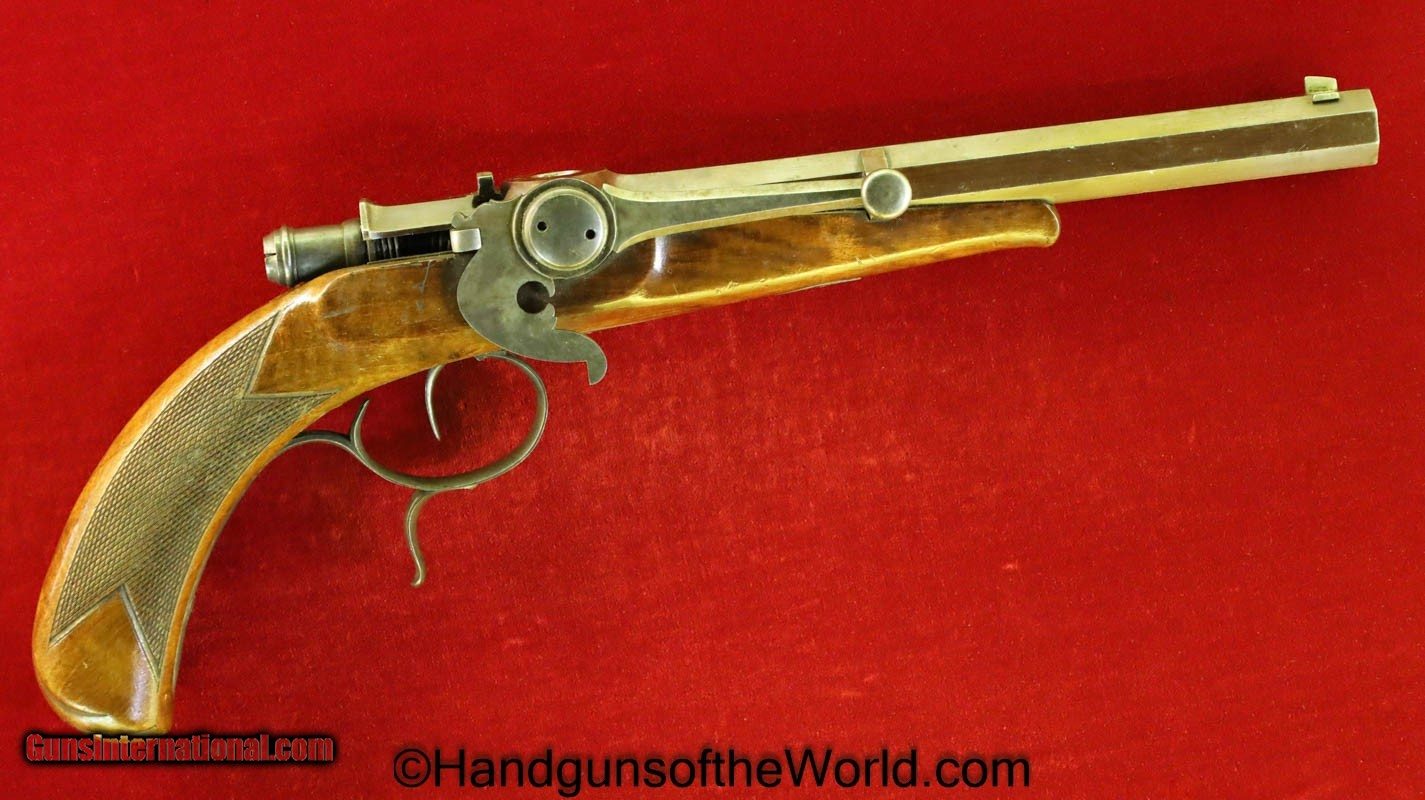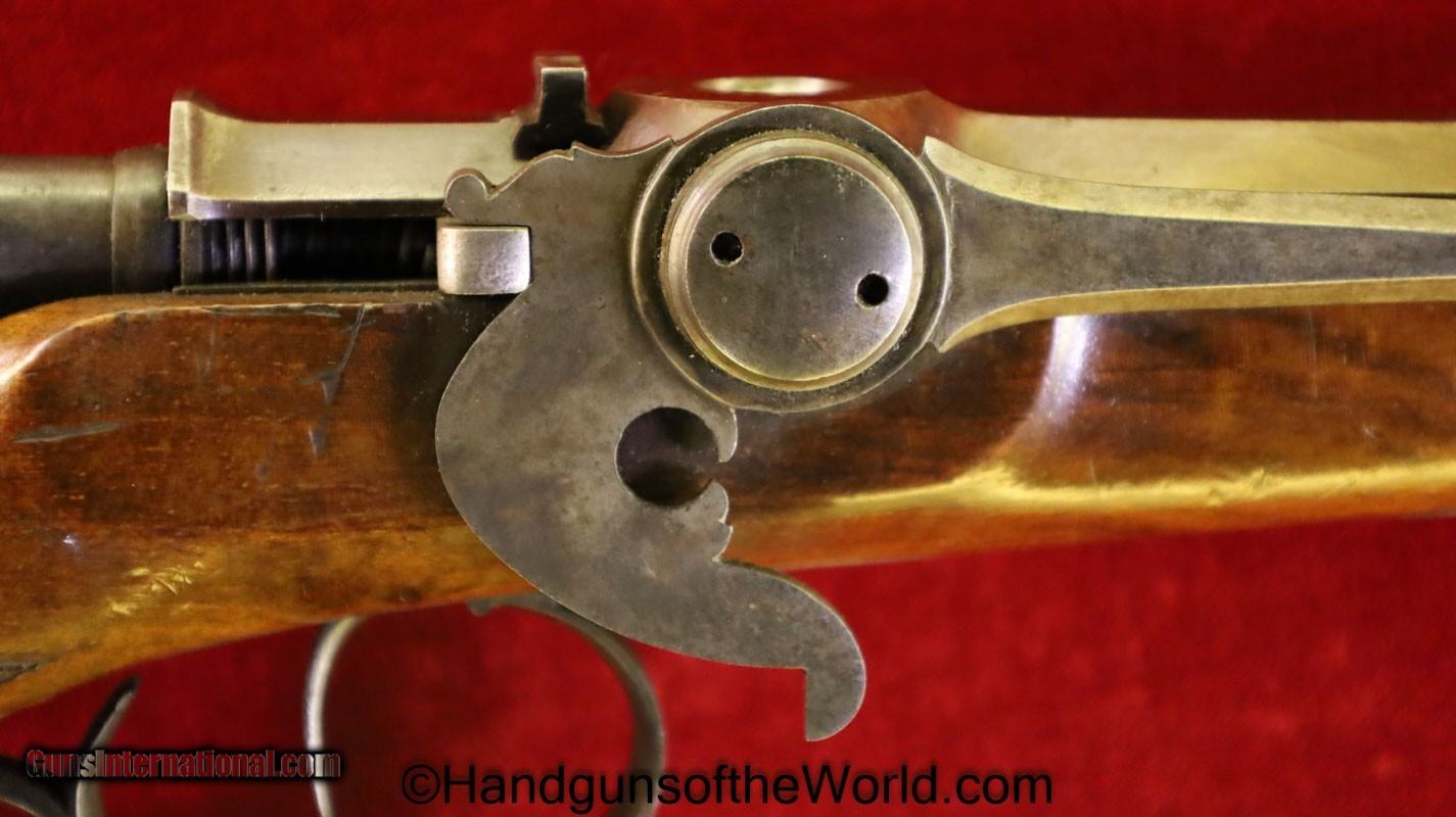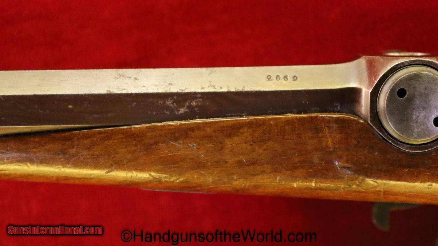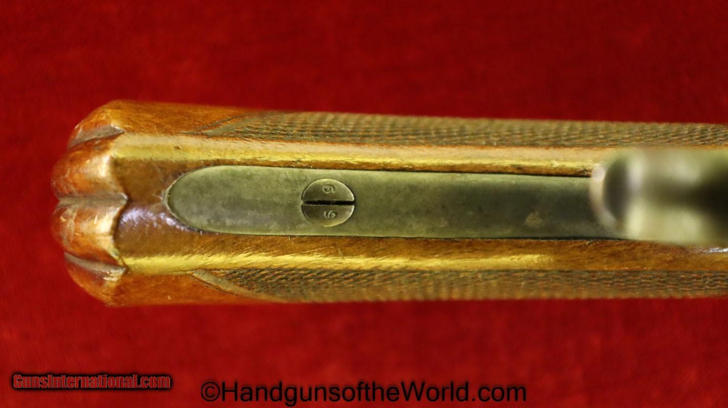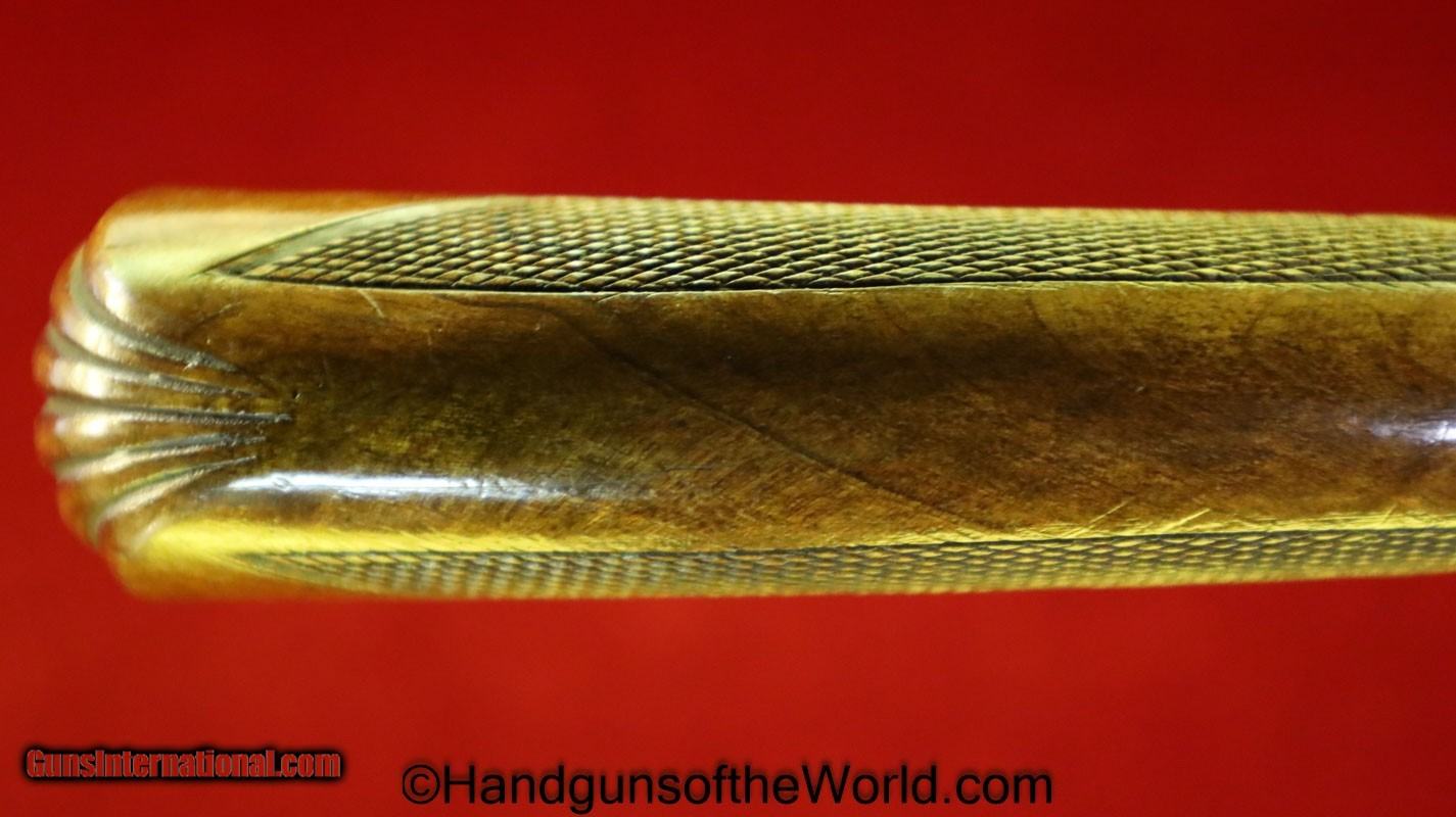 Description: Dreyse 1835 Needle Fire, Single Shot Pistol. .34 caliber. This has the forward facing loading lever. This is unmarked with a 7 1/2″ octagon barrel and a checkered walnut stock with a fluted butt. This has nice 95% plum finish and an excellent bore. Antique. Antique: Yes Manufacturer: Dreyse Model: 1835 Price: $2,795.00 Shipping: $35.00 Contact Seller |