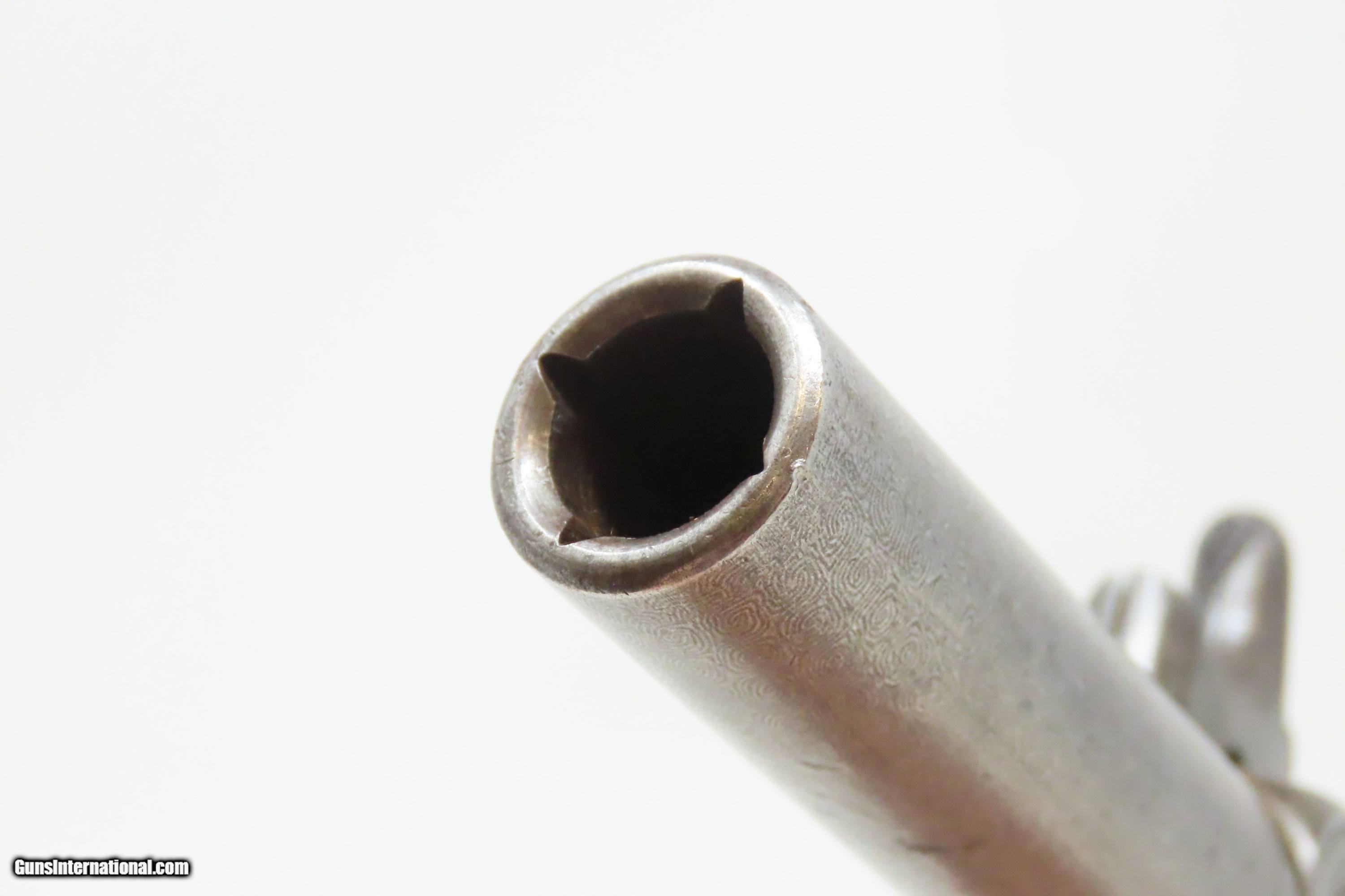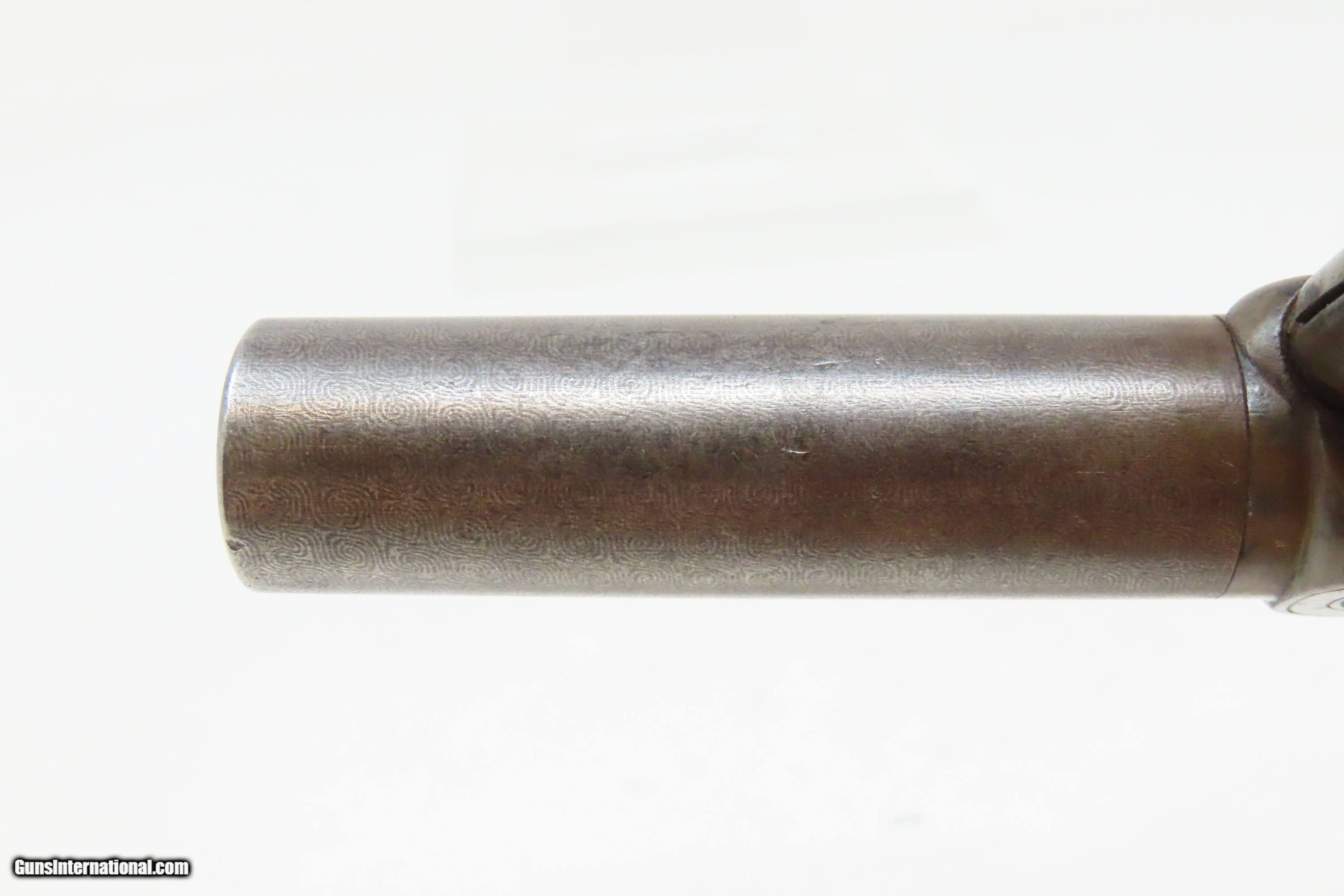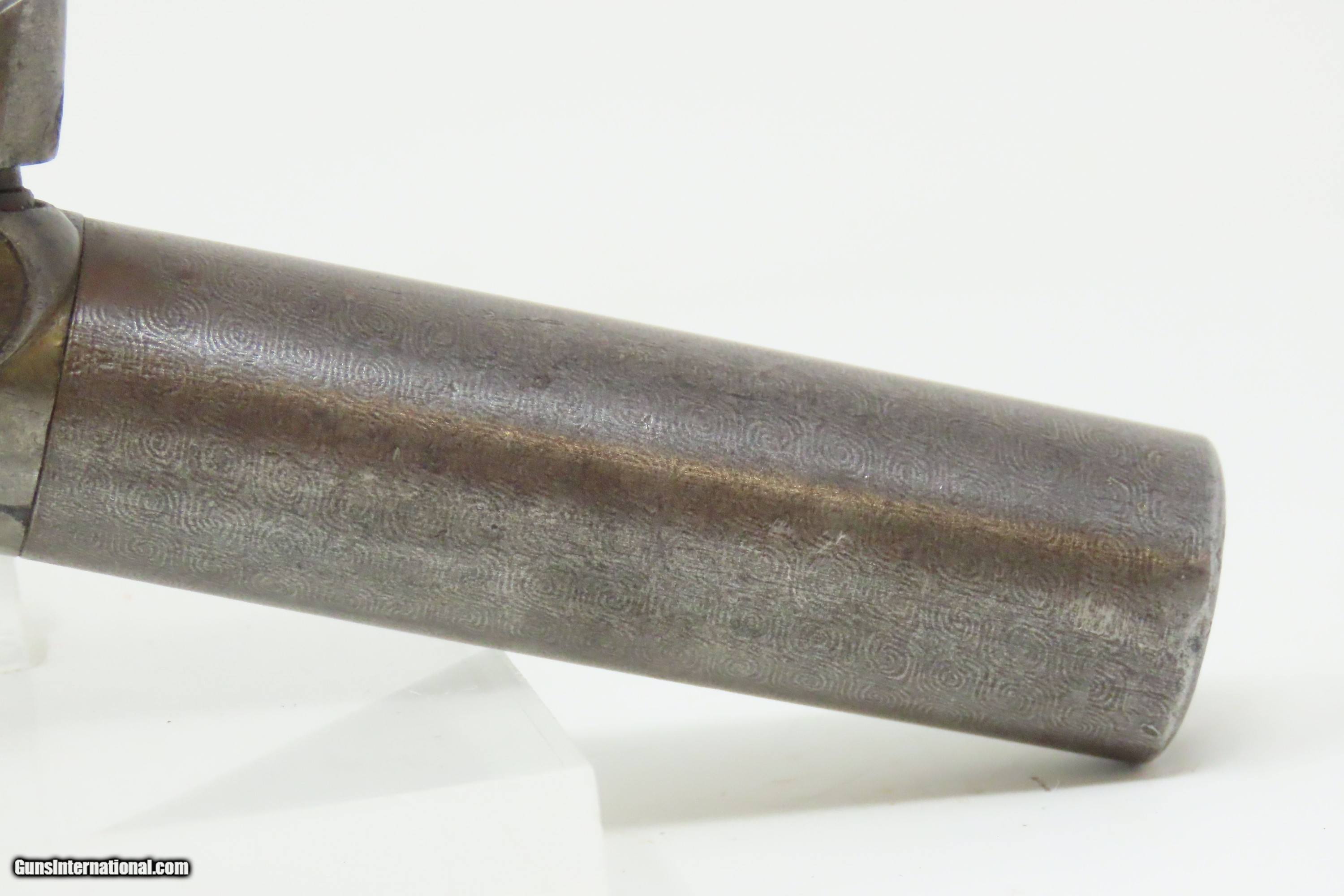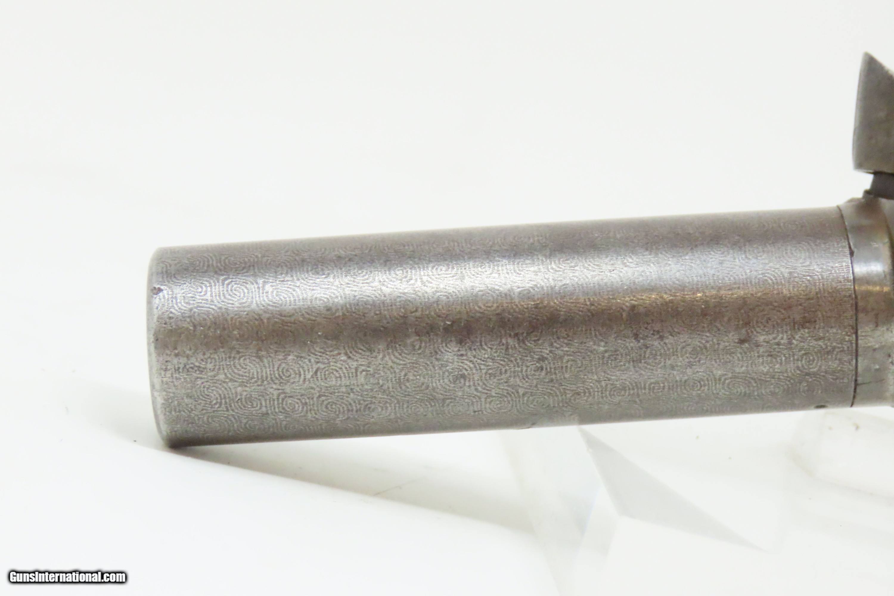 Description: ENGRAVED Antique BOXLOCK Single Shot .50 Percussion GENTLEMEN’S/MUFF Pistol Easy to Conceal Mid-1800s Self Defense Pocket Pistol Here we present an antique Engraved Boxlock Percussion Self Defense Pistol, made circa the 1850s. This little self-defense pistol would have been most at home in the pocket of anyone in the busy cities throughout the world during the tumultuous mid-1800s. This pistol is small, light and simple. The “Pocket Pistol” name says it all. They were the "Saturday Night Specials" of the 16th-18th century. Before the Deringer, they were "Gentleman's" or "Muff Pistols", typically, a smaller pistol that was easily concealed. They were favored among the gentry and women because of these traits. Men would carry them concealed in a waistcoat pocket and women would hide them in a hand muff. It is elegantly engraved on the sides of the frames while sporting a Damascus barrel. In any sort of scuffle, the user of this single shot pistol would have had quite the “pocket advantage!” The overall condition is near fine. Original finish with good Damascus pattern on the barrel. Nice engraving. The action is excellent. The bore is smooth and dim. The barrel does not currently turn off. The carved grip is solid. Own the original! This is a legitimate antique and not a reproduction. Barrel is 2-1/2 inches. Caliber: .50 Percussion Overall condition as seen in photos. Very Fast. Very Safe. FREE SHIPPING WORLDWIDE. Delivered directly to your door by express mail! Guaranteed AUTHENTIC & Includes CERTIFICATE OF AUTHENTICITY. ancestryguns $1200 #244059 SOLD Antique: Yes |