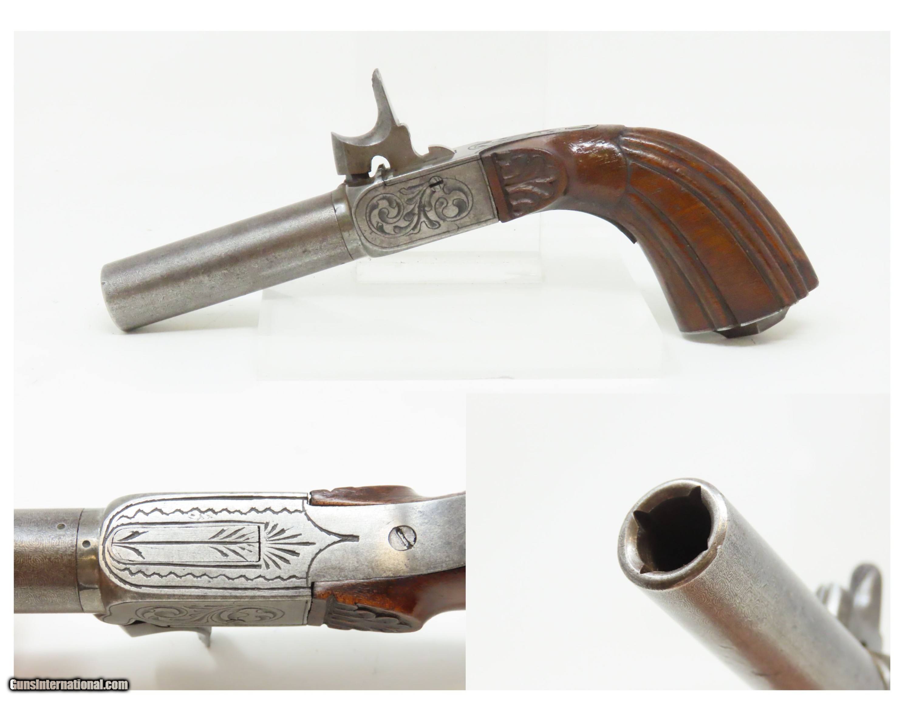 ENGRAVED Antique BOXLOCK Single Shot .50 Percussion GENTLEMEN’S/MUFF Pistol Easy to Conceal Mid-1800s Self Defense Pocket Pistol