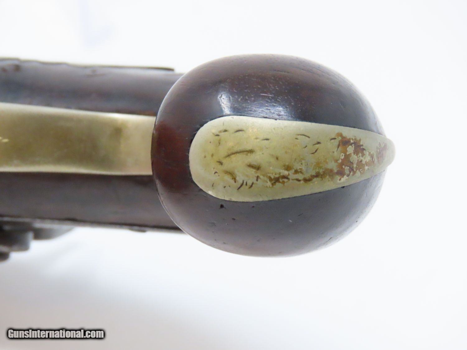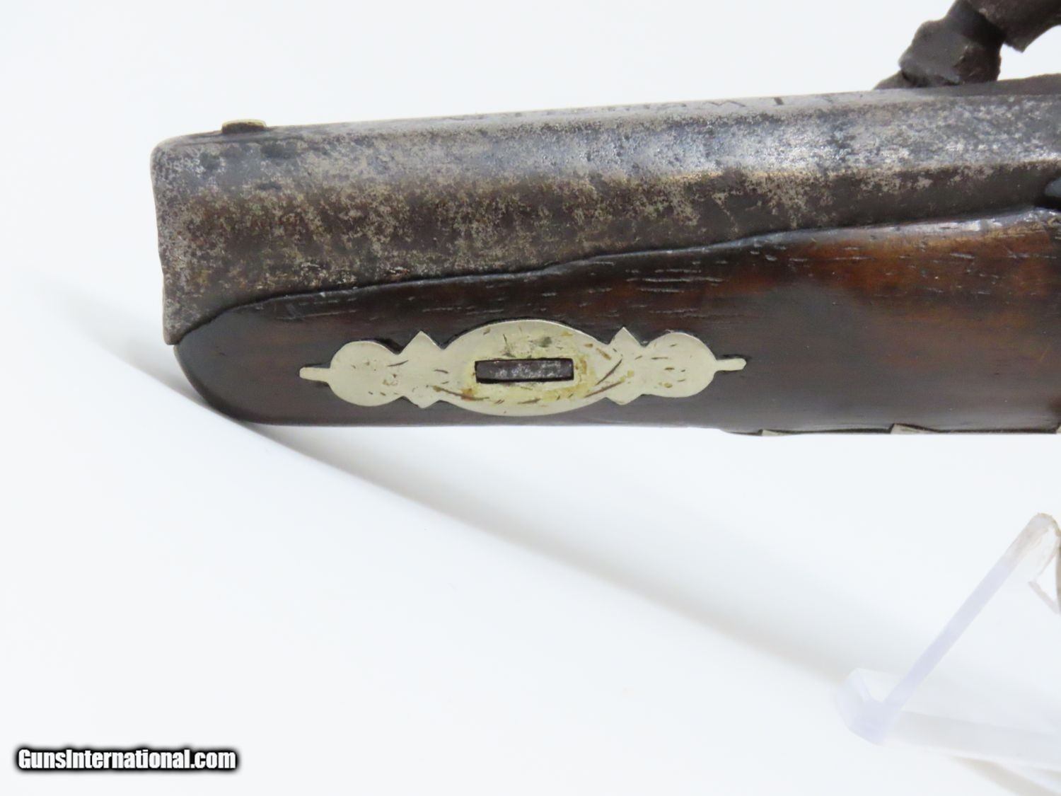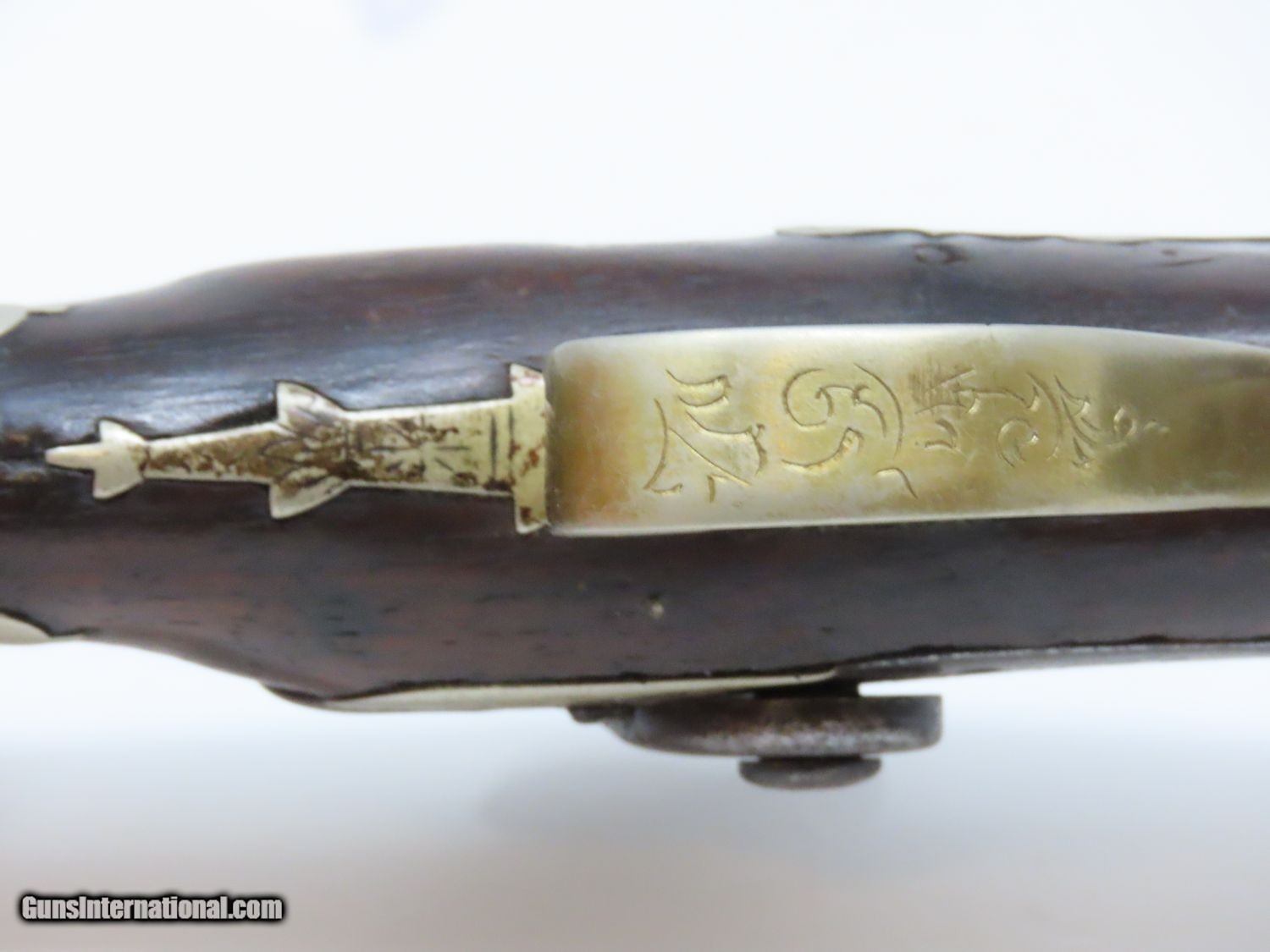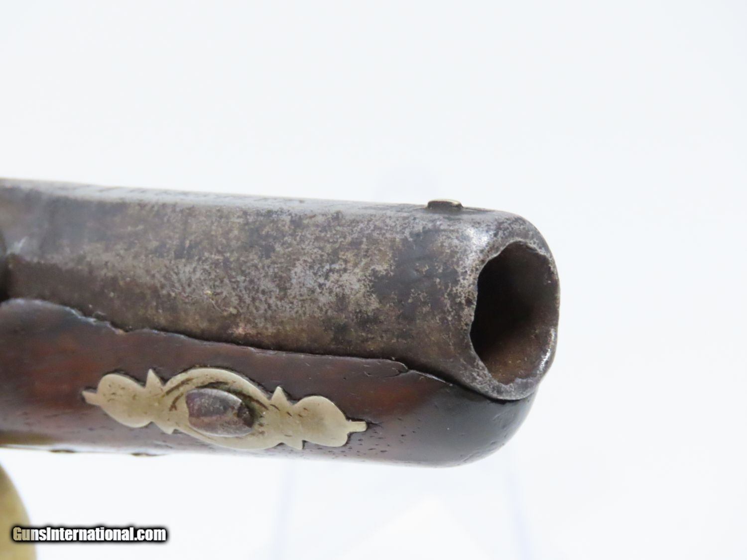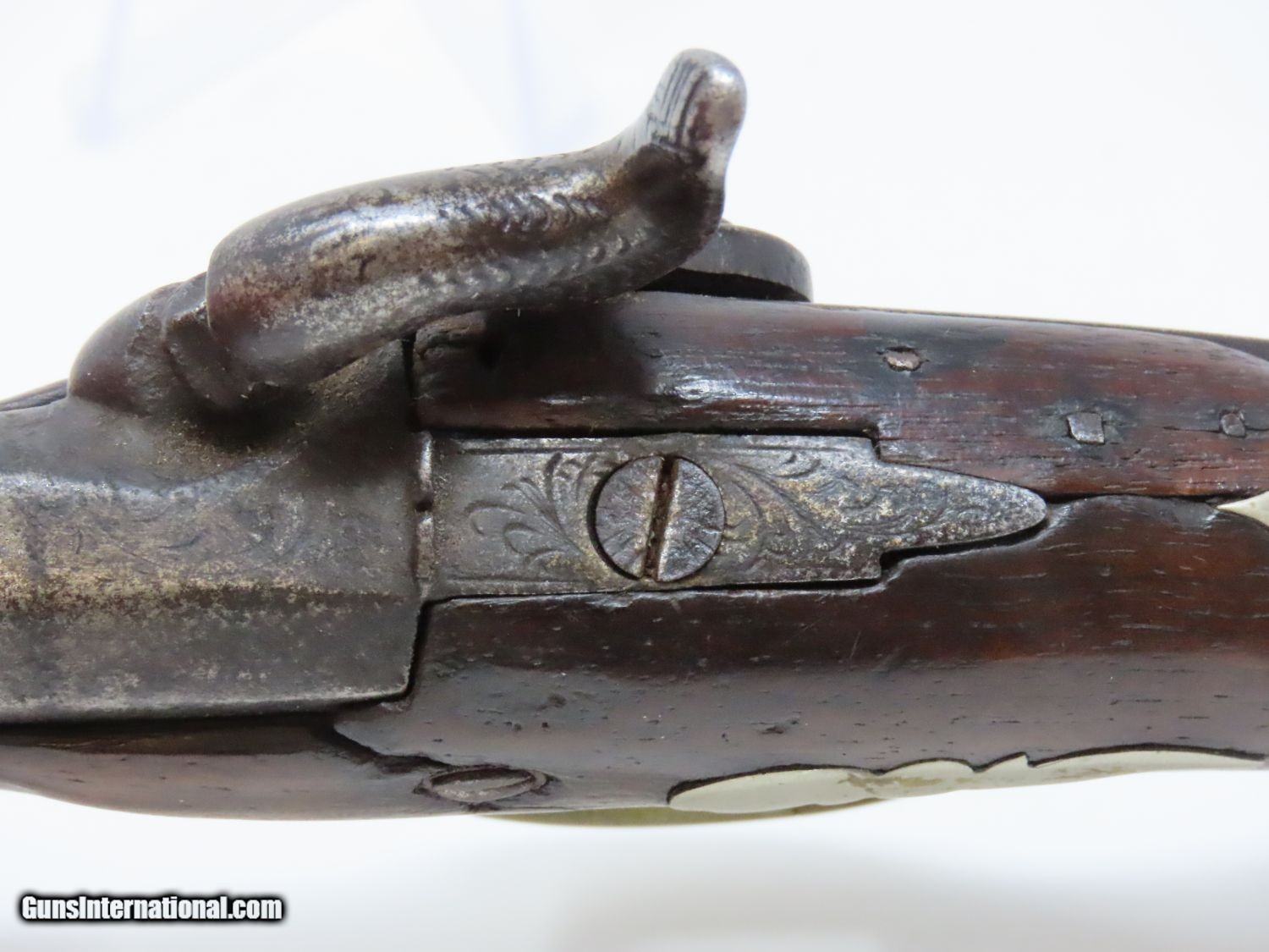 Description: ENGRAVED Antique JOHN WURFFLEIN PHILADELPHIA DERINGER Percussion Pistol Contemporary of Henry Deringer’s Here we present an antique Andrew Wurfflein Deringer Percussion Pistol, made circa the 1850s. Wurfflein arrived in New York from Germany in 1832 and settled in Philadelphia, Pennsylvania. By 1840, he was granted U.S. citizenship. In 1844, his brother John, also a gunsmith by trade, immigrated. They worked together for some time, and were two of the six that founded the Shuetzen Verein, a prominent German shooting club in Philadelphia. Their work included rifles and pistols, including close copies of their Philadelphia neighbor Henry Deringer’s hit pocket pistol. Henry Deringer was a very successful Pennsylvanian gunsmith who started his own company in his early twenties, circa 1809. It was not until the 1850s that his prototypical “Deringer” percussion pistol became extremely popular. Once it did become popular, the basic design was copied in dozens of different shops. Not only was it copied, but Deringer’s good name was stamped on guns made by others, some of them not up to the quality standards of Deringer himself. The inventor was apparently very worried about protecting his good name, so he pursued and sued any of the counterfeiters that he could find and warned the buying public to beware of his spurious imitators. The name “Deringer” often invokes certain historical event, characters or moments in film. Deringer’s name has become both a noun and a catch-all term. President Abraham Lincoln was shot and killed with one of Henry Deringer’s pocket sized percussion pistols, the night John Wilkes Booth revenged the South at the Ford Theater. They conjure images of the California Gold Rush, as well as riverboat gamblers. These pistols were very practical for the time, being small and concealable and of large bore size. Here is what Charles Edwin Chapel had to say about the Deringer pistol: “For a man in a tight spot, with an armed enemy only a few feet away, a pair of single-shot Deringer pistols was more effective than the multishot pepperbox. You either got your man at the first or second shot—if, indeed, you were given the chance to fire twice—or you got a fast funeral. That heavy-calibered little gun was a man-stopper at short range, an effective surprise weapon, an “equalizer” with which many a gold-camp David permanently tamed the muscle-bulging, belligerent Goliaths of the frontier. Included in a man’s personal arsenal, the pistol was carried either as a principal weapon or as a reserve to be used when revolver, pepperbox or Bowie knife failed.” The overall condition is good. The action is strong. The bore is dark. There have been a few repairs to the stock over the years, but it remains stable. “J. WURFFLEIN” can be read atop the barrel. A great example that looks like it has been there and done that! Own the original! This is a legitimate antique and not a reproduction. Barrel is 2-1/2 inches. Caliber: .44 Percussion Overall condition as seen in photos. Very Fast. Very Safe. FREE SHIPPING WORLDWIDE. Delivered directly to your door by express mail! Guaranteed AUTHENTIC & Includes CERTIFICATE OF AUTHENTICITY. ancestryguns $1745 #20698 SOLD Antique: Yes |