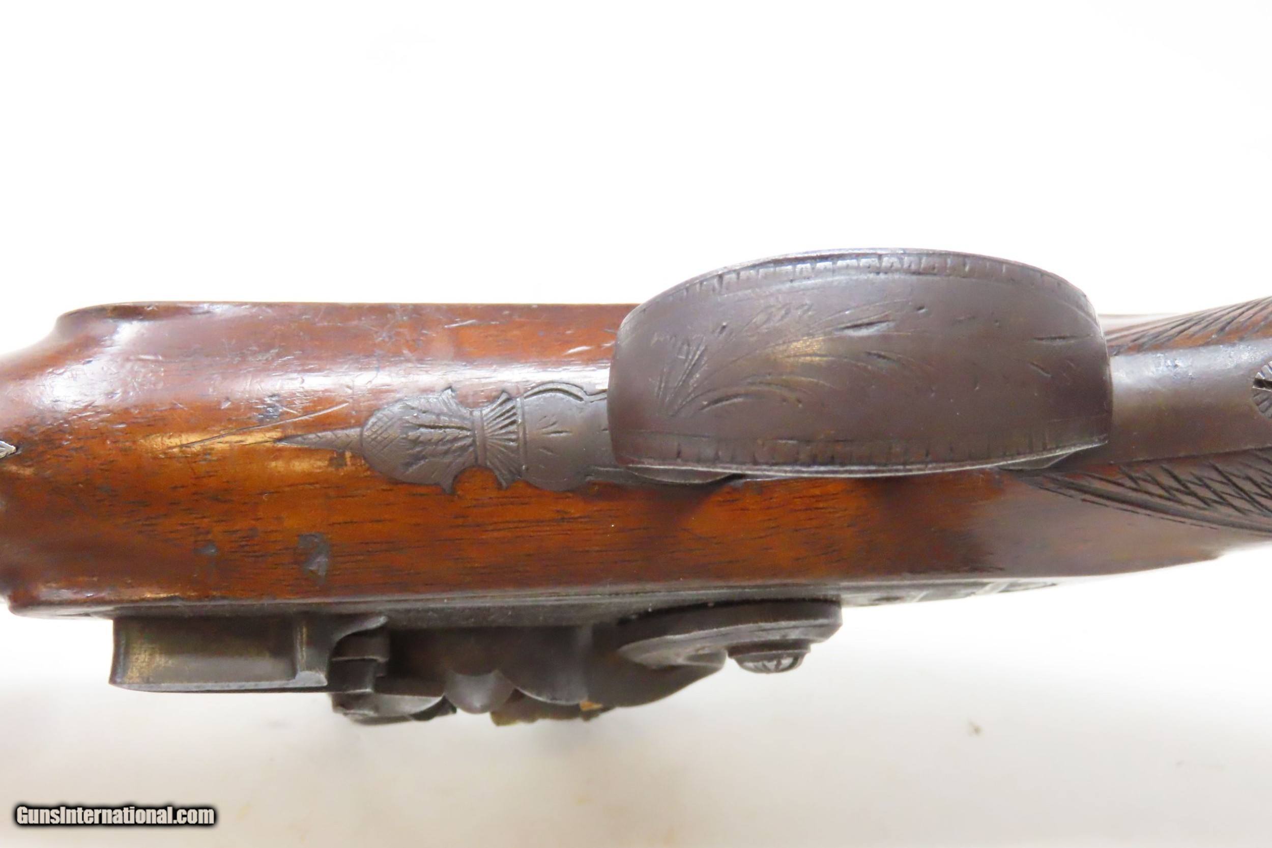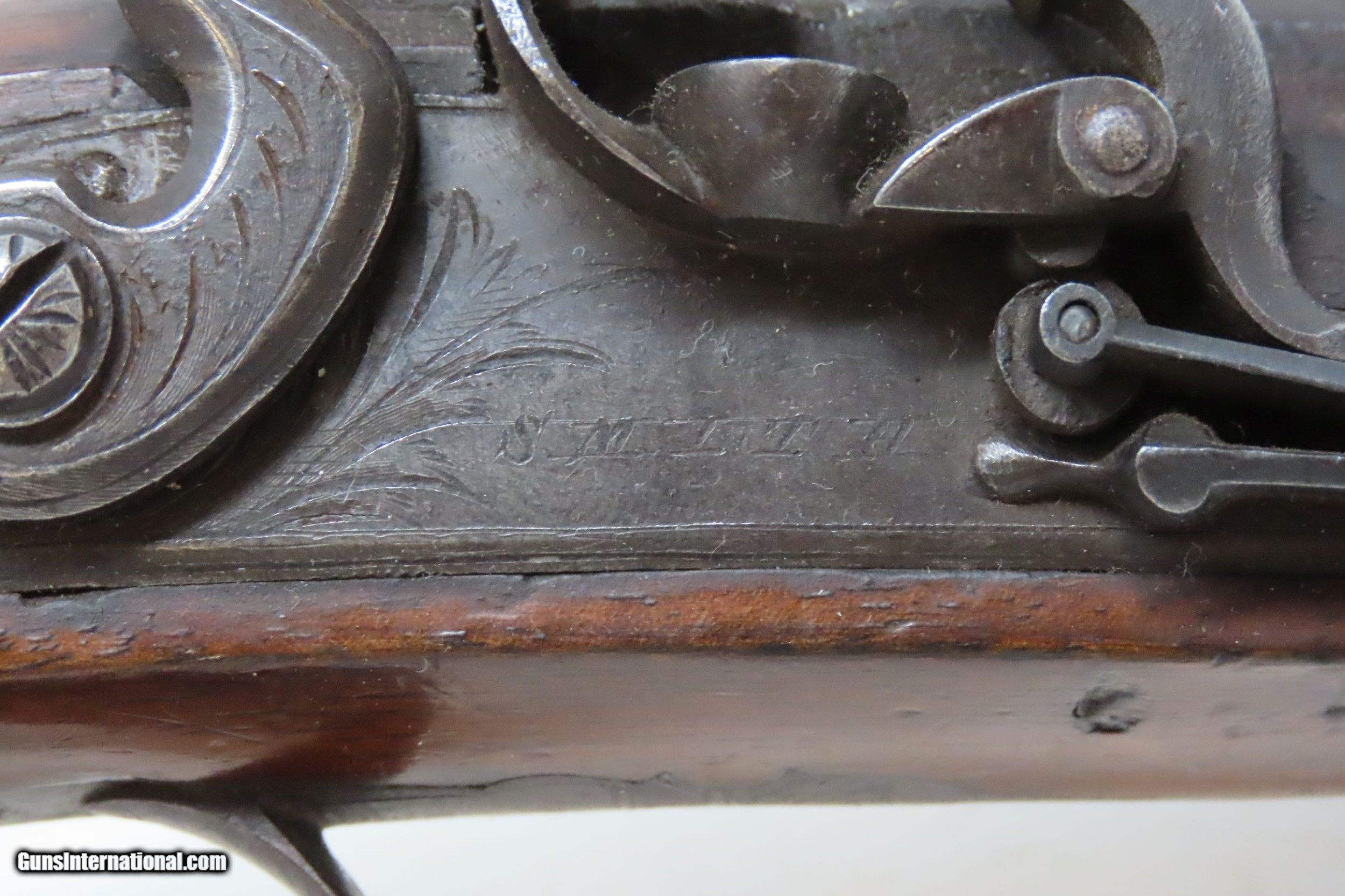 ENGRAVED Antique SMITH Marked British .60 Cal. FLINTLOCK COAT/BELT Pistol