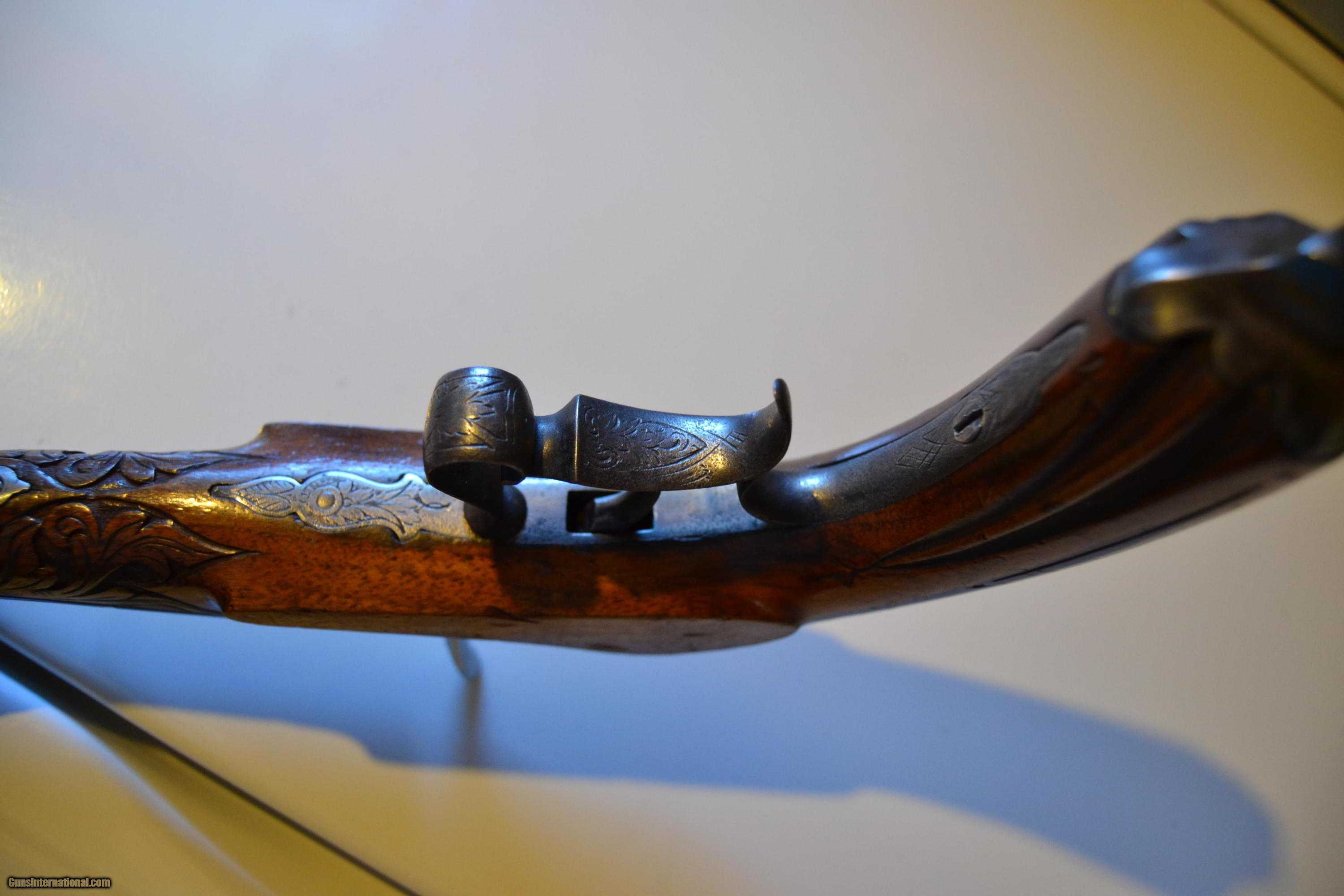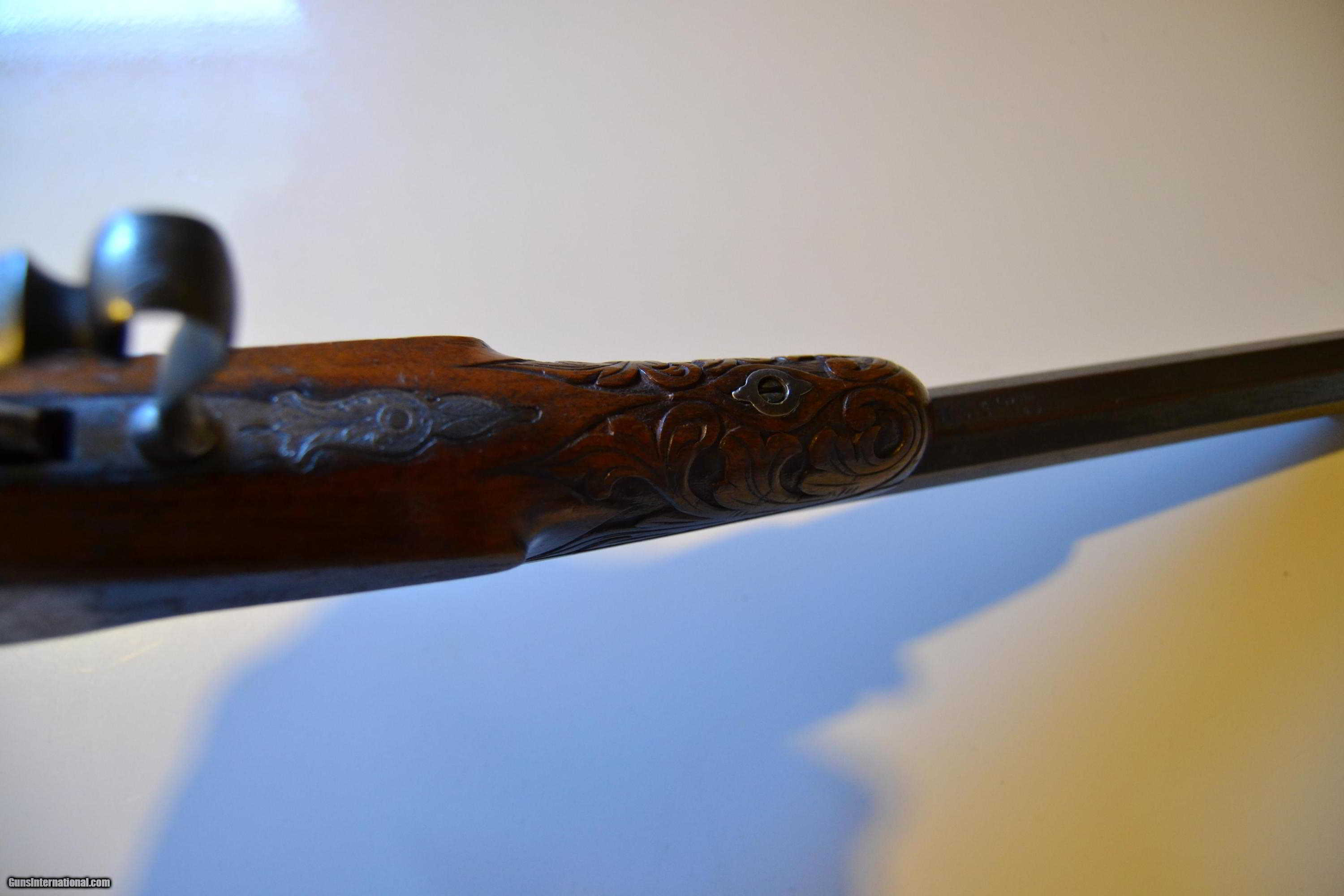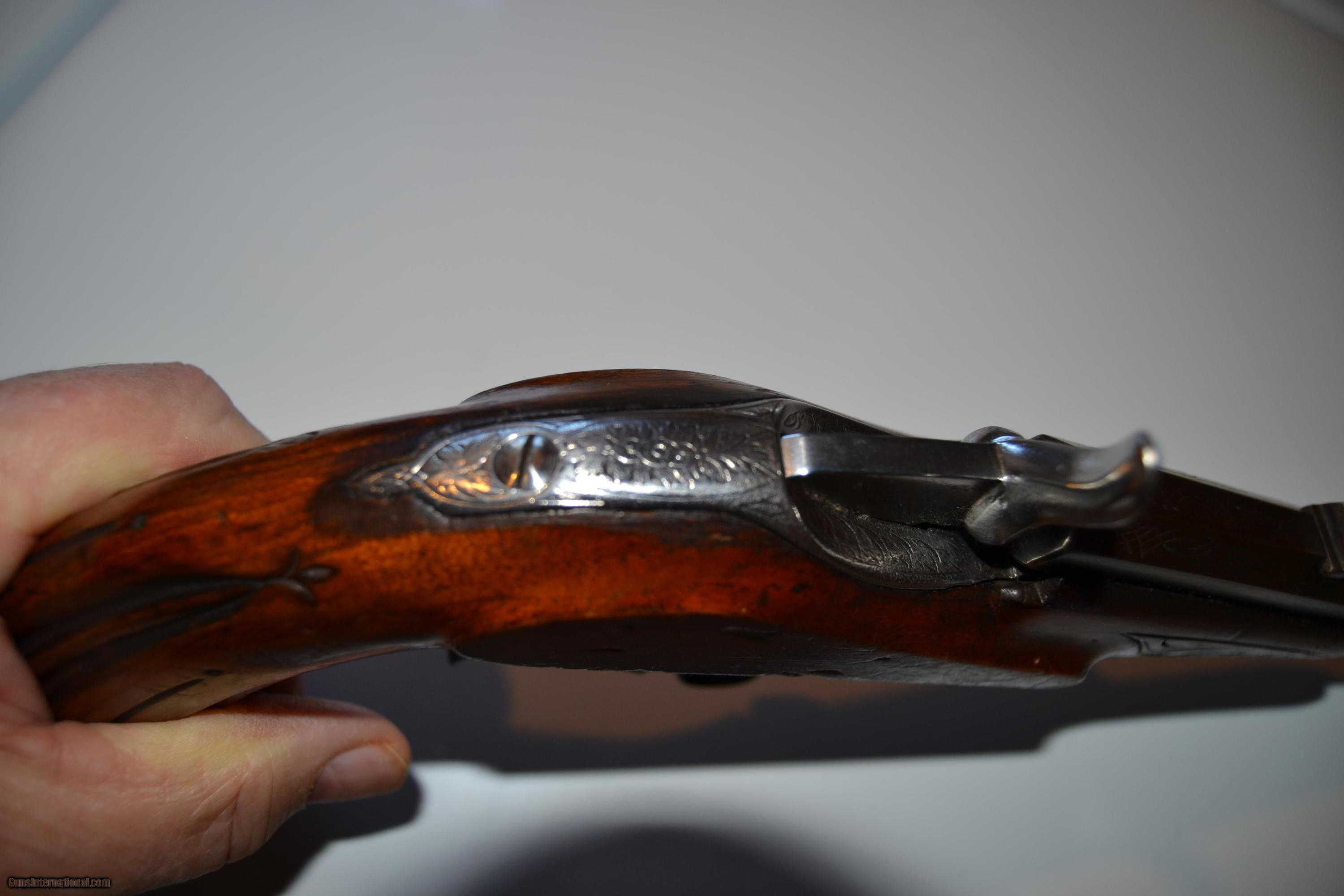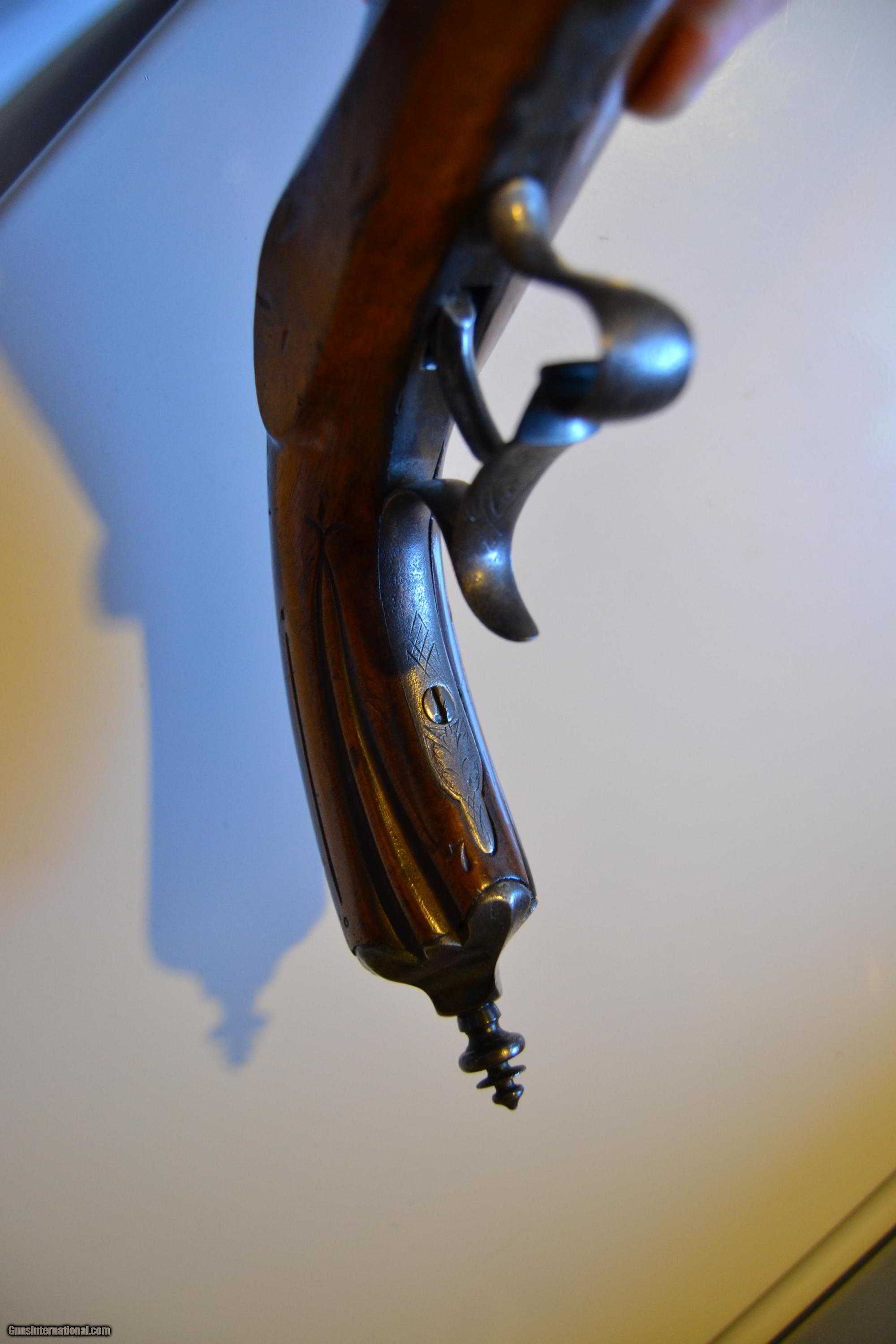 Description: GERMAN 22 CAL PRECUSION PARLOR PISTOL. THE CONDITION OF THIS PIECE IS EXTREMELY NICE IT HAS A 9 1/2 INCH, OR 10 BARREL DEPENDING IF YOU INCLUDE THE NIPPPLE OR NOT. ALL COLORING ON THE GUN IS STILL THERE IT HAS SOME VERY SMALL MARKS ON IT, THE METAL IS INGRAVED ON THE TOP OF THE BARREL AND THE SIDES THE METAL AROUND THE HAMMER AND ON DTHE METAL IS ENGRAVEL. THE WOOD IS CARVED, NO CRACKS BREAKS IN THE WOOD BUT THERE ARE USE MARKS IN THE WOOD. IT IS BLACK POWDER SO I CAN SHIP IT DIRECTLY TO YOU. SHIPPING WILL BE FEDEX $35.00 SOLD Curio/Relic: Yes Antique: Yes Serial Number: NONE |