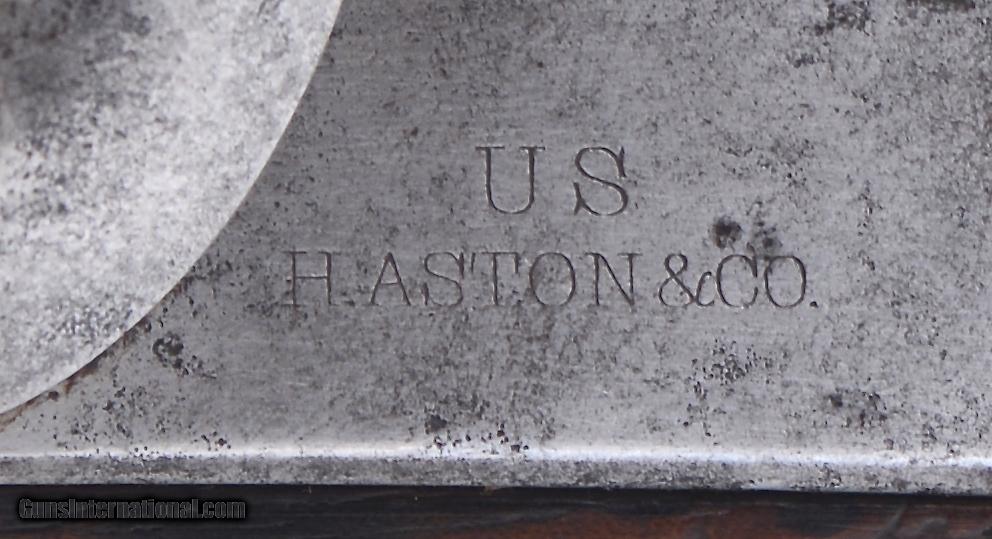 Description: H. Aston & Co model 1842 Percussion Pistol. 1851 dated, 8 ½” barrel, .54 caliber. Markings indicate this is one of approximately 6,000 made. The 1842 is regarded as a “primary” US issued military pistol, many of which saw service in the Civil War. This pistol is in antique good to very good condition with the exception of a small patch of surface rust on the lock plate that somewhat obscures the date stamp and the numbers 259492 that are stamped into the stock on the left side between the bolts. Very good cartouches are visible on the left side of the stock above the trigger. Tight and mechanically excellent. SOLD Antique: Yes |