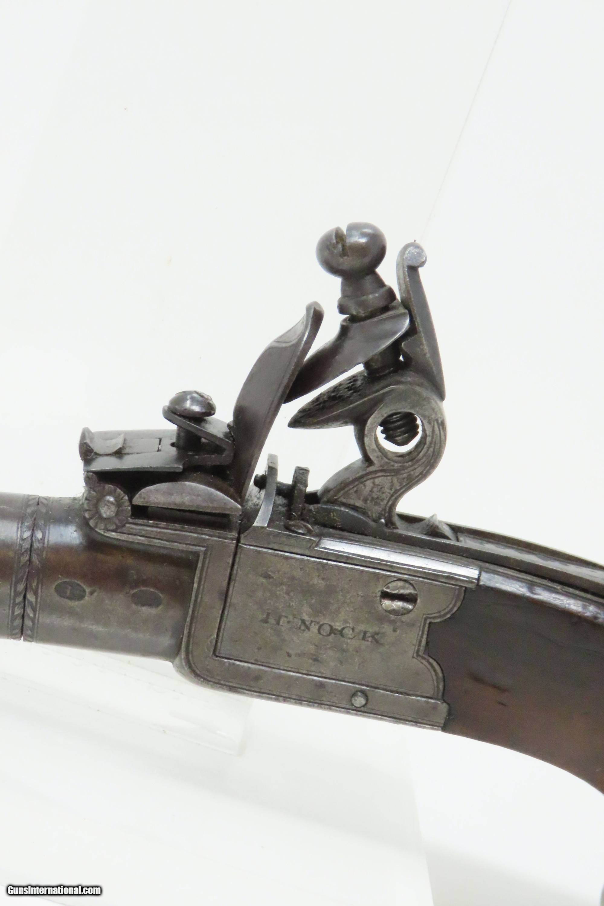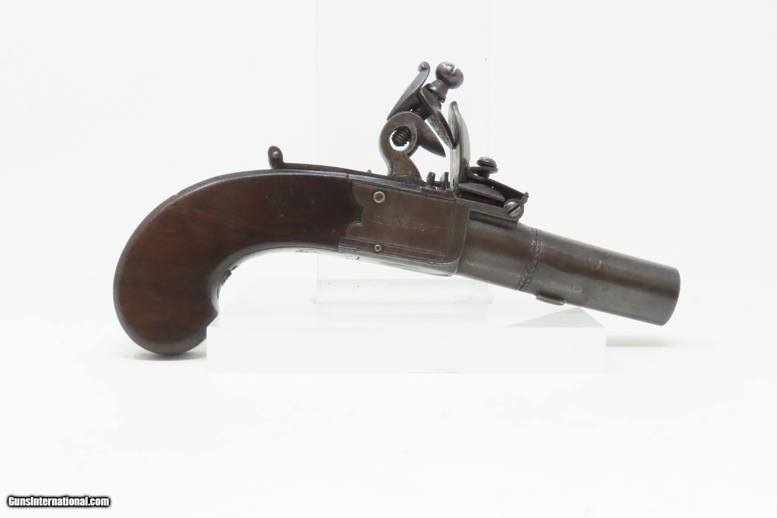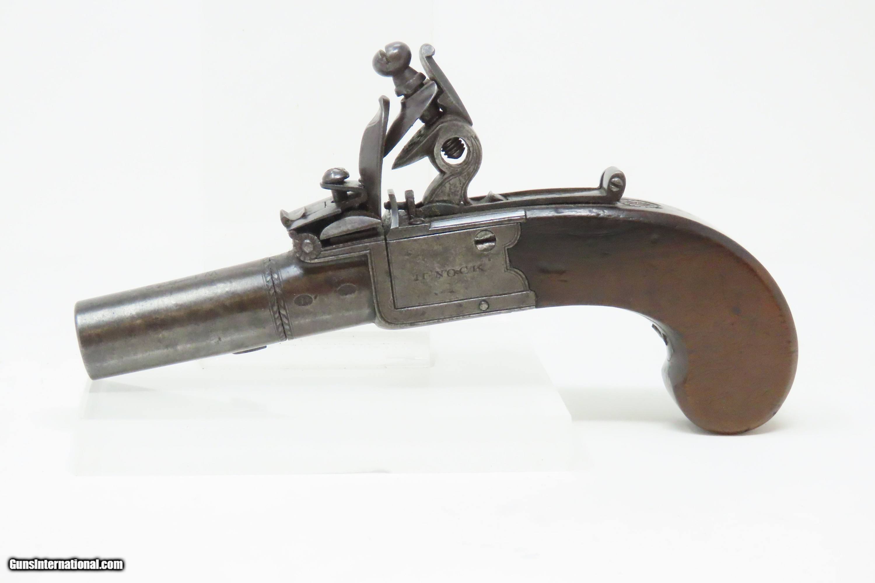 IRISH County WICKLOW Marked Antique H. NOCK Boxlock FLINTLOCK Pocket Pistol With the IRISH REGISTRATION MARK on Barrel & Grip