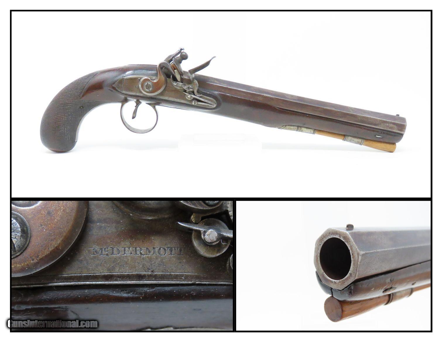 Late-18th Century IRISH Antique FARRELL McDERMOTT OFFICER’S Pistol .66 Caliber