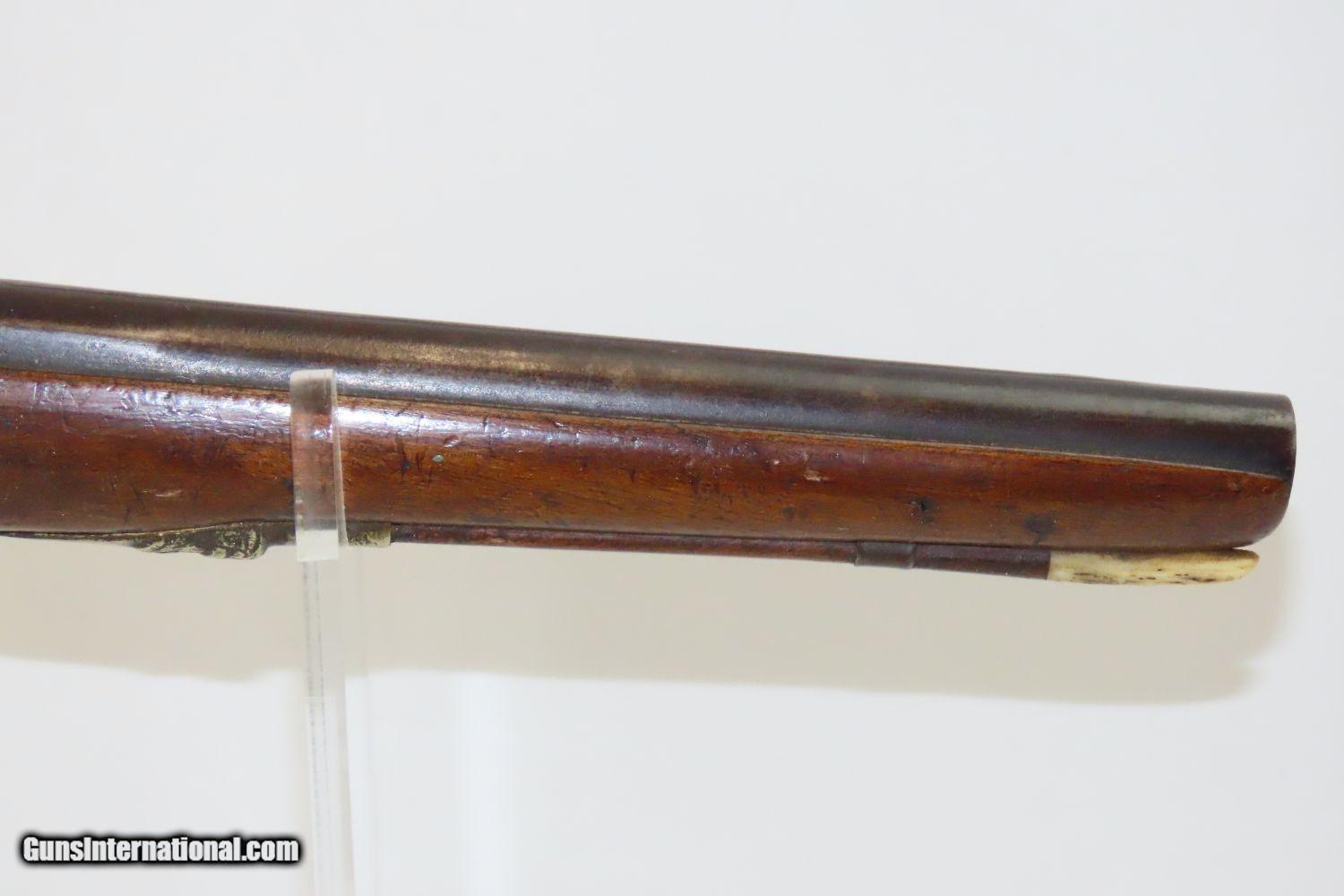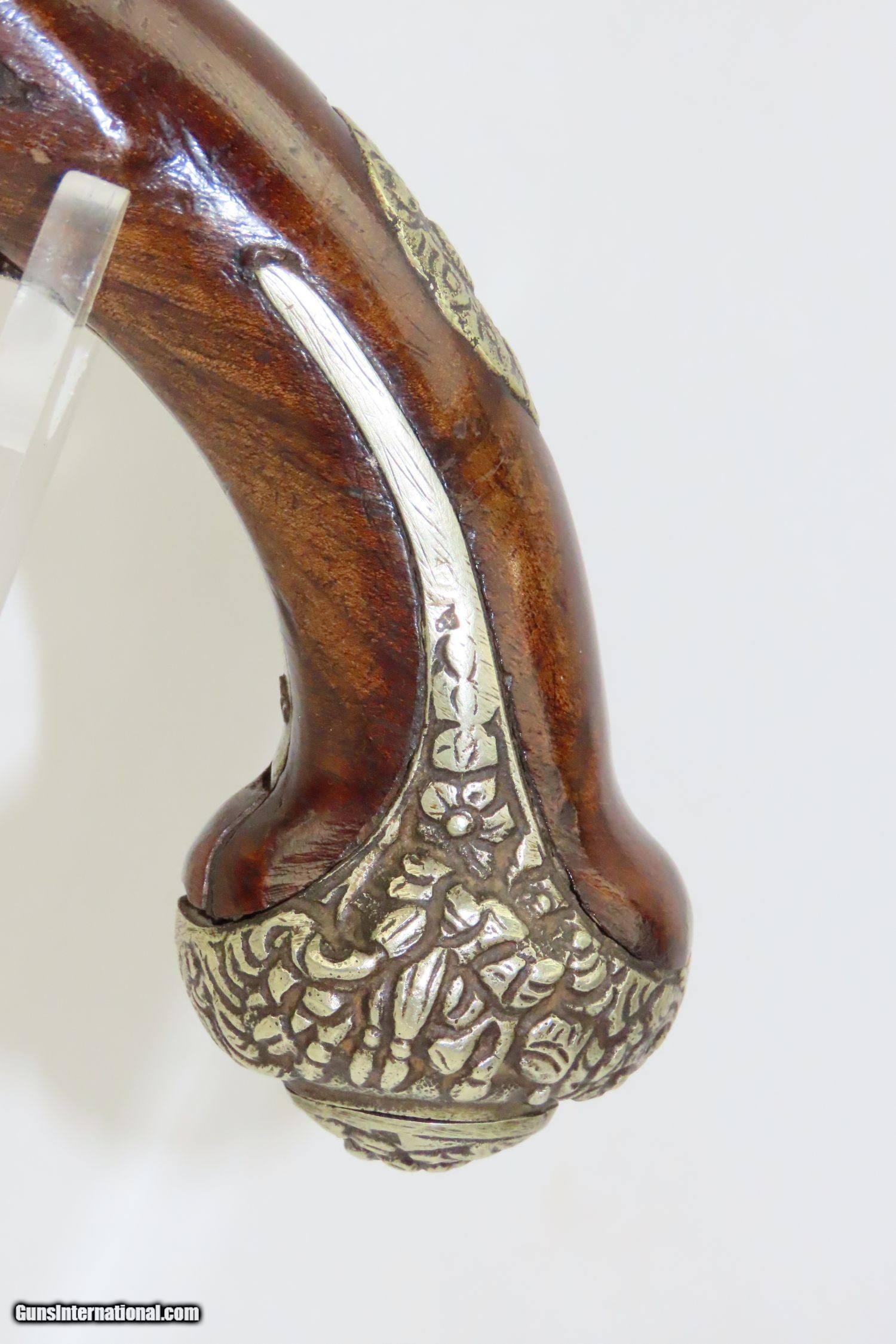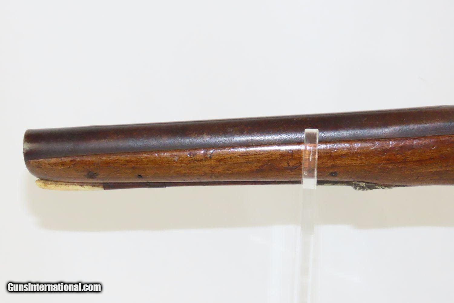 Description: ORNATE Antique MEDITERANEAN Flintlock Pistol Naval PIRATE Military Sidearm Early 19th Century Pistol with JOSEPH MANTON Lock Here we present an antique Ottoman Flintlock Pistol with a Joseph Manton lock, made circa the early-19th century. Pistols like these were commonly used around the Mediterranean in the 18th and early 19th Centuries. The lock and perhaps other parts are European in origin while the cast hardware is in the Ottoman fashion. The lock may have been traded or perhaps this pistol was made of scavenged parts! This would have been like those weapons carried by Tripolitan pirates when the young United States sent the Marines to take care of them. This is a large pistol used for fighting but it was also a status symbol with its engravings in the stock. “JOSEPH MANTON/ LONDON” is engraved on the lock. The overall condition is very good. The action is strong and tight. The bore is in good shape for its age. The stock is solid all around and the hardware is seated firmly. Here is a beautiful piece of history for display in the collection. Own the original! This is a legitimate antique and not a reproduction. Barrel is 11 inches. Caliber: .69 Flintlock Overall condition as seen in photos. Very Fast. Very Safe. FREE SHIPPING WORLDWIDE. Delivered directly to your door by express mail! Guaranteed AUTHENTIC & Includes CERTIFICATE OF AUTHENTICITY. ancestryguns $1565 #201031 SOLD Antique: Yes |