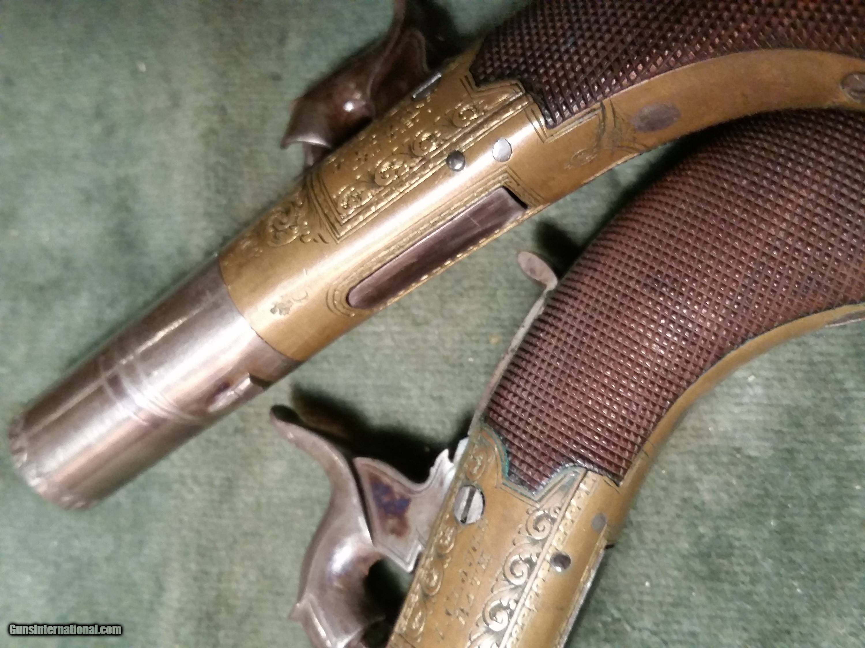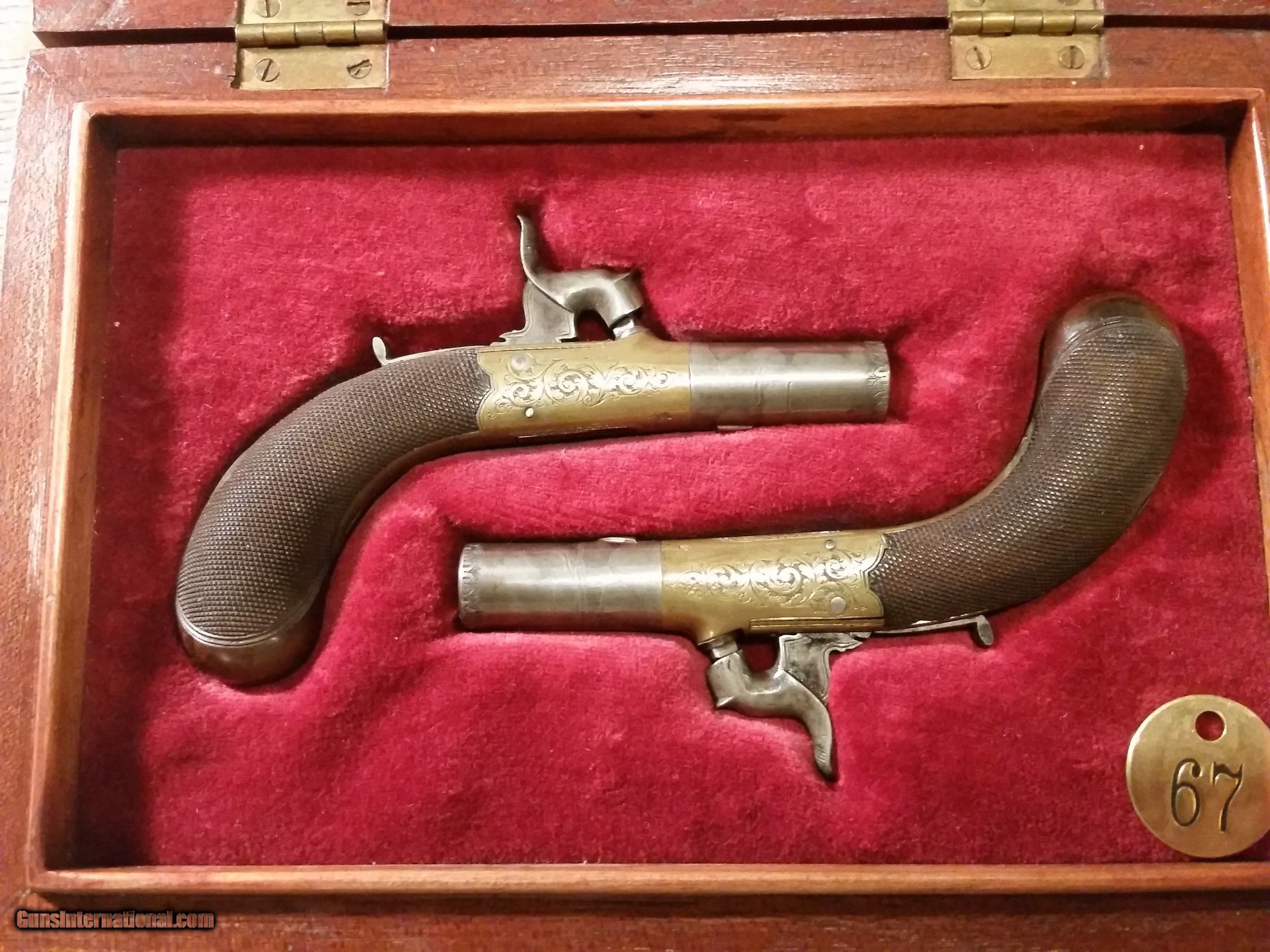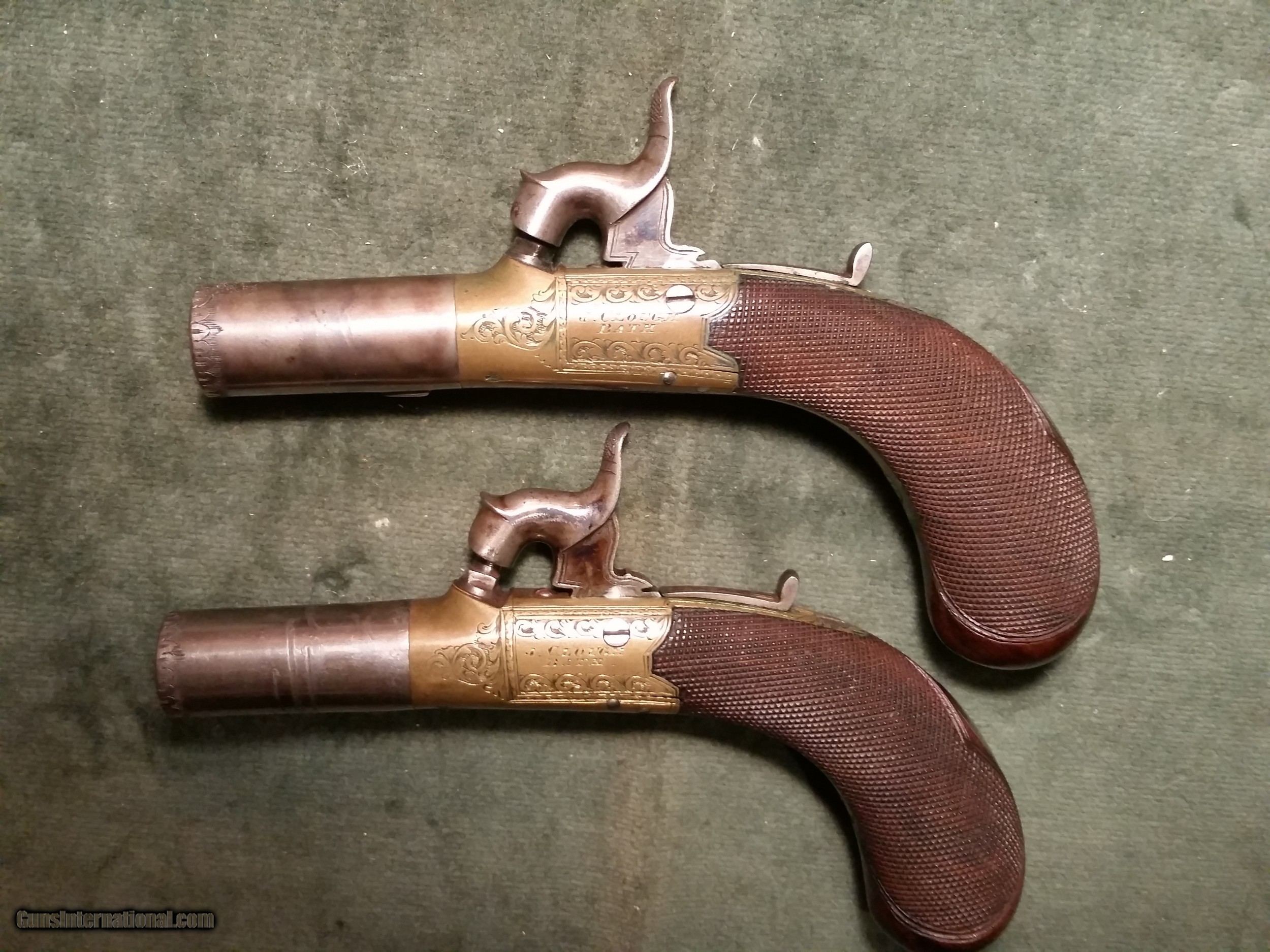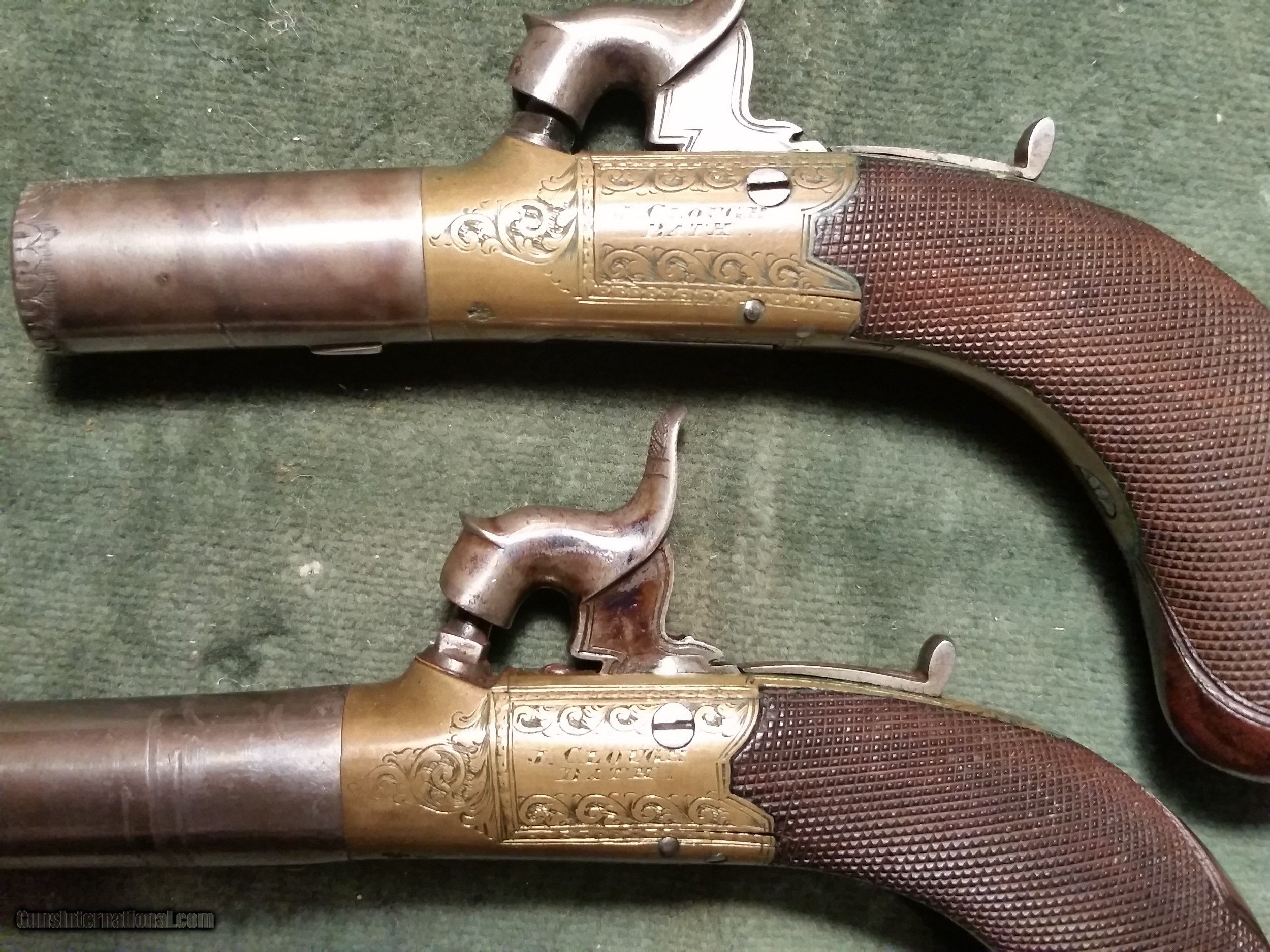 Pair of John Clough, Bath England, Cased Muff Pistols, Approximately 38 Caliber.