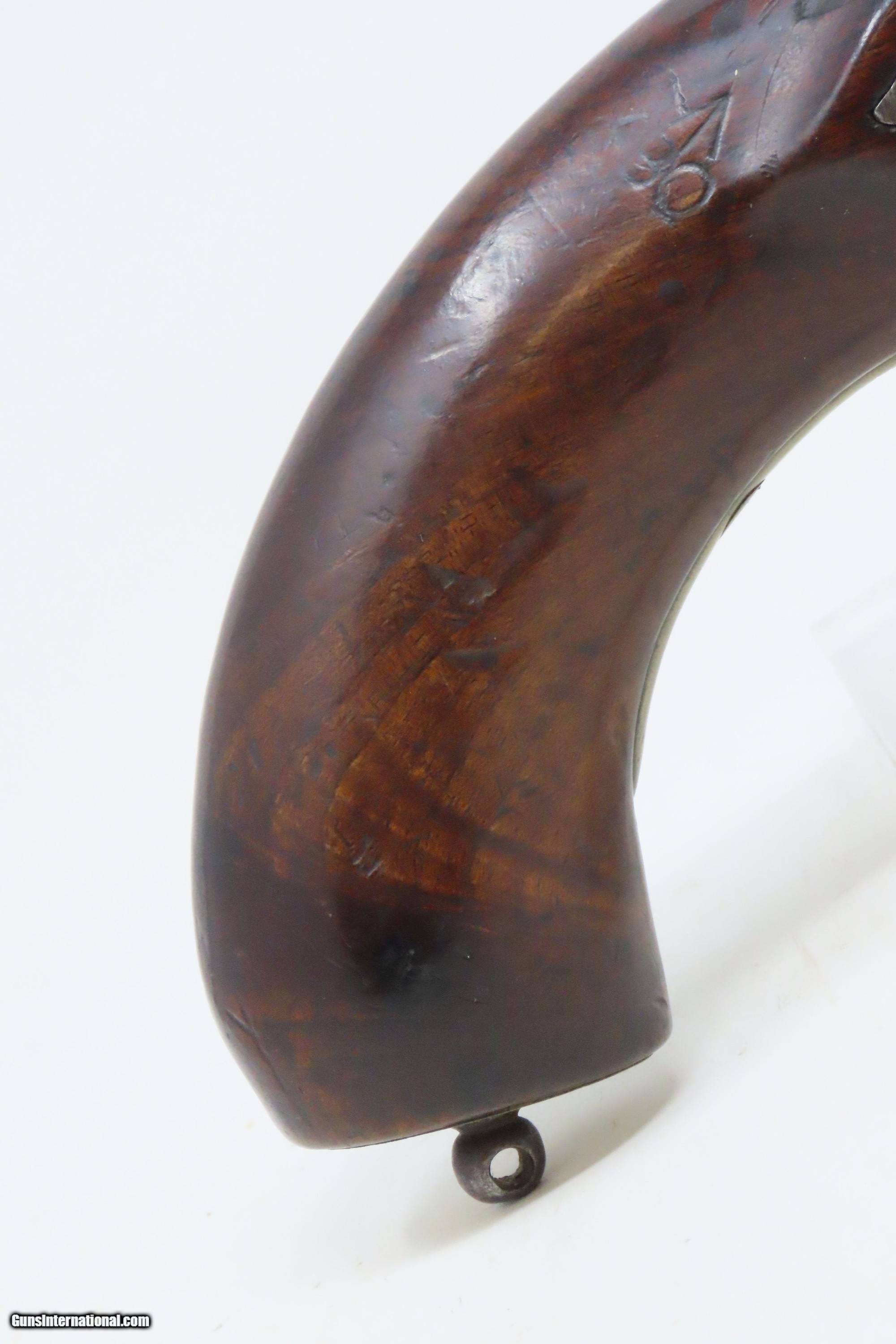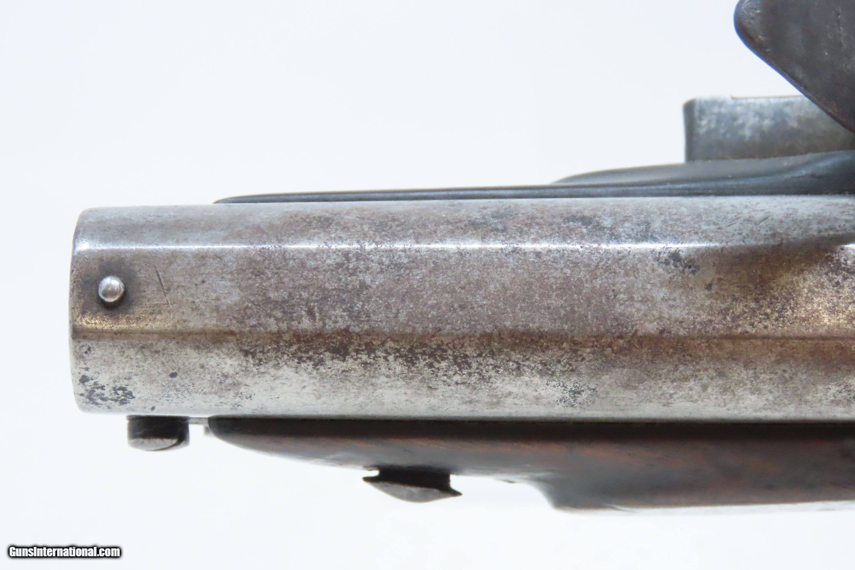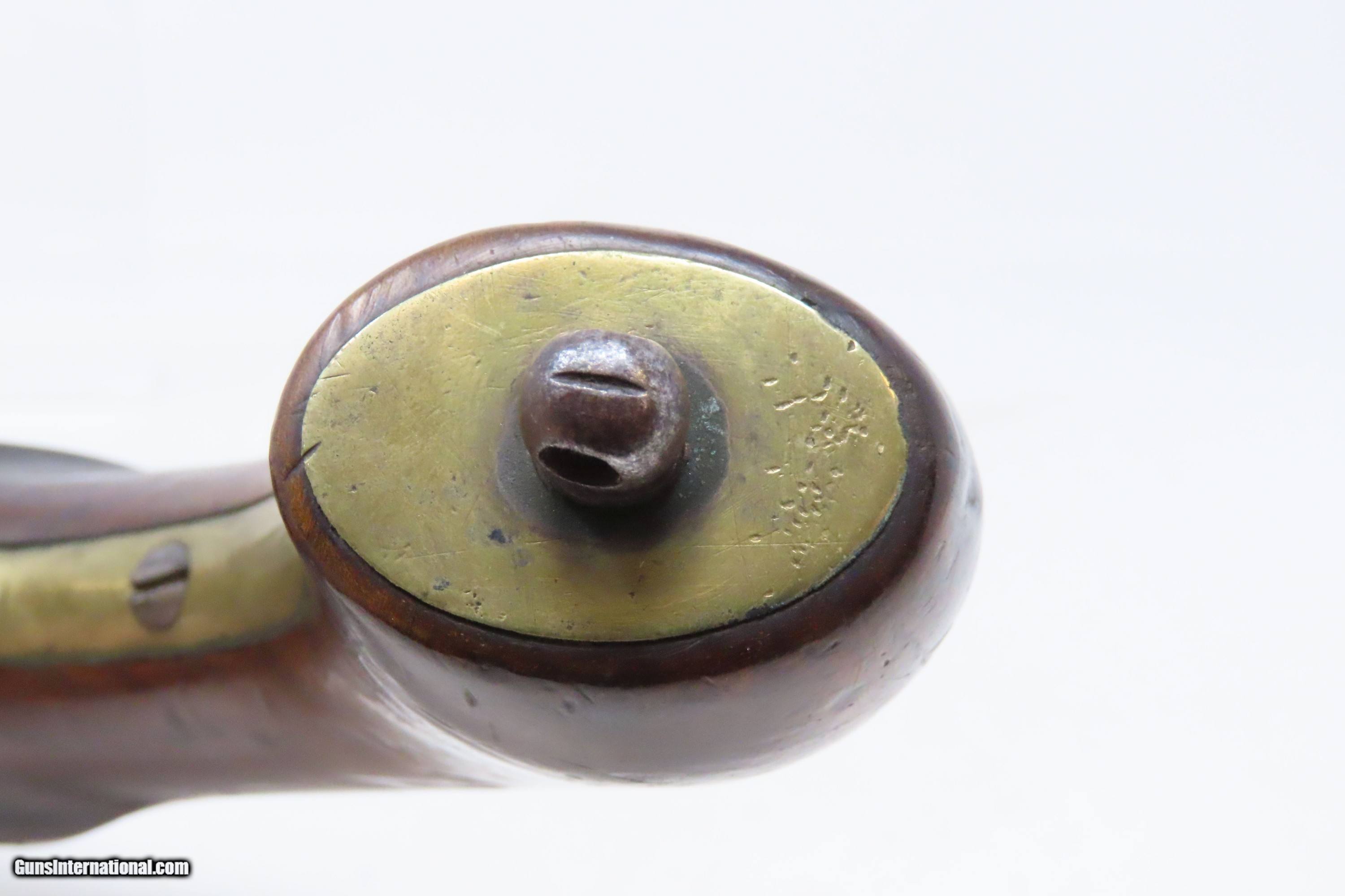 Description: Rare Antique BRITISH TOWER P1831 CUSTOMS/COAST GUARD FLINTLOCK Pistol “GR” Used by the British Coast Guard/Customs Service Here we present a rare antique British Pattern 1831 Tower Marked Flintlock Pistol. This pistol dates to the mid-1830s and was used by the British Coast Guard and Custom’s Services along with much of the Royal Navy. Her Majesty’s Coast Guard was established in 1822 and had the primary responsibility of saving the sailors and property when a shipwreck occurred. The Coast Guard also patrolled the entire UK coastline to prevent smuggling. By the 1850s, smuggling was on the wane, and so the responsibility of protecting the coastline from smugglers was transferred to the Royal Navy, putting the Coast Guard’s primary duty once again to assisting with wrecks and rescue operations. This model saw service during the Crimean War (1853-1856). The rise of the revolver made pistols such as this somewhat outdated, and by the late 1850s, it started to fall out of favor due to the increasing popularity of percussion revolvers, although examples continued to be produced into the early 1870s and were used side by side. The lock bears the royal cipher of (“GR” for Georgius Rex or King George). The overall condition is very good. Patina throughout. The action is excellent. The bore is smooth and in good condition. Stock shows use and remains solid throughout with Board of Ordnance markings. Own the original! This is a legitimate antique and not a reproduction. Barrel is 4-1/2 inches. Caliber: .68 Flintlock Overall condition as seen in photos. Very Fast. Very Safe. FREE SHIPPING WORLDWIDE. Delivered directly to your door by express mail! Guaranteed AUTHENTIC & Includes CERTIFICATE OF AUTHENTICITY. ancestryguns $1800 #234029 SOLD Antique: Yes |