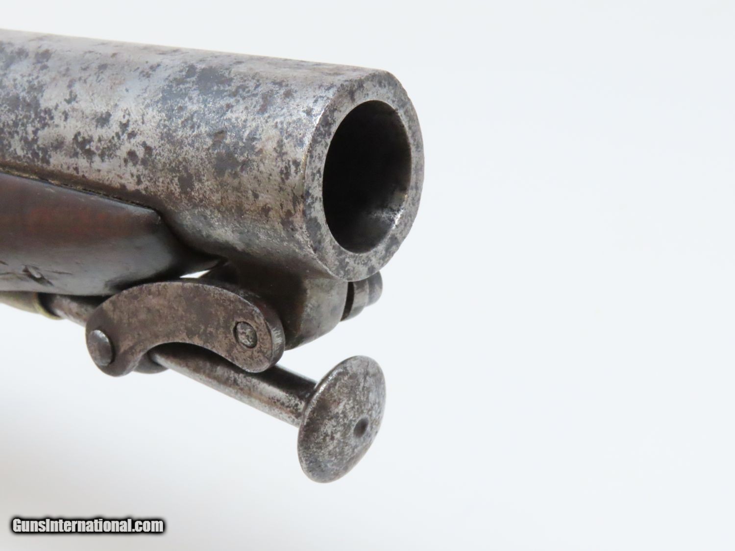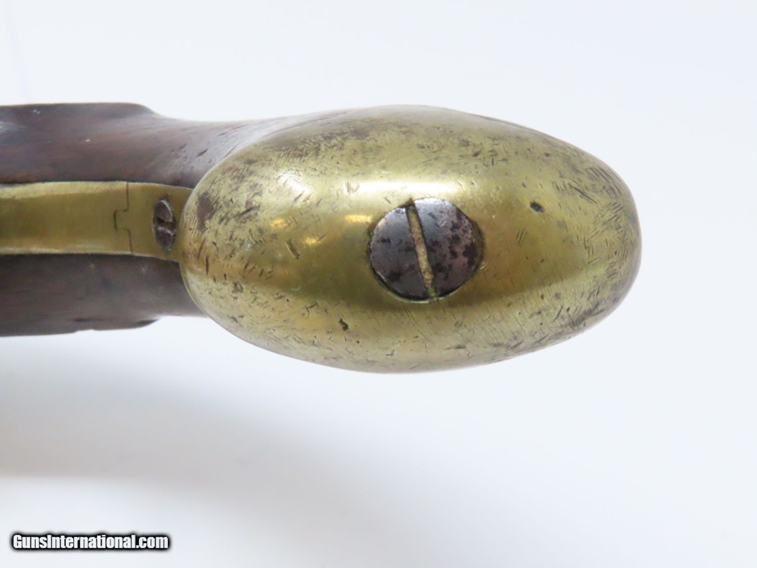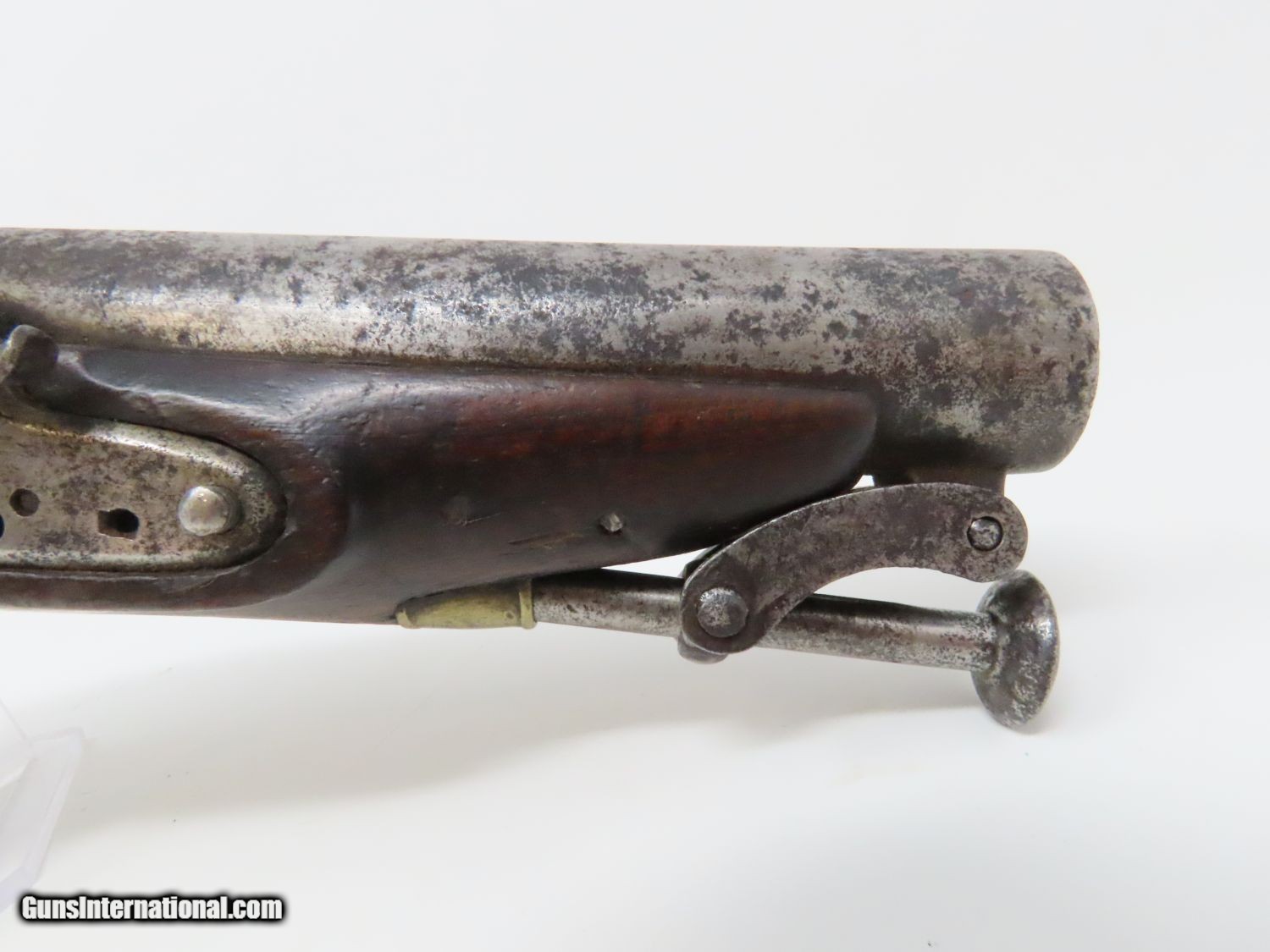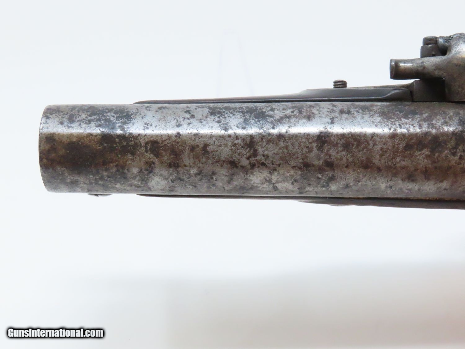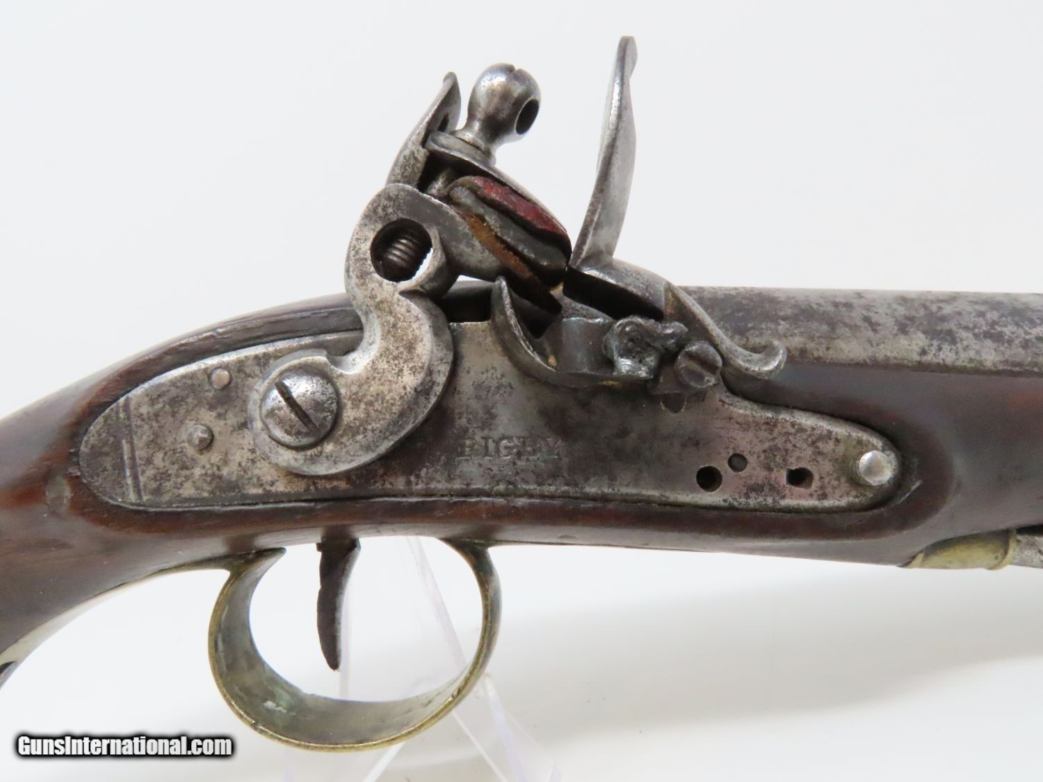 Description: RARE Early 1800s IRISH W. & J. RIGBY Antique “MAN-STOPPER” Flintlock Pistol DUBLIN, IRELAND Made Antique Flintlock Pistol Here we present an antique William and John Rigby Flintlock Pistol, made circa the early-1800s in Dublin, Ireland. This Irish flintlock is a rare example of a pre-serial numbered Rigby pistol of which very few have survived. Serial numbering began in 1821, starting with serial number 5337, making this an early product of the brothers William and John partnership. This example is the constabulary model with a tapering twist 5-inch barrel with a full-length sighting flat. This large bored pistol would have been intended for use as a self-defense firearm. It is a small to medium sized flintlock, being able to fit into a large pocket or more likely in a belt. This pistol has a .67 caliber bore and would have been most at home tucked into a gentleman’s belt when not punching large holes. This also would have been the type of pistol an officer would have purchased on his own to bring to battle in case he was to come into contact with the enemy. The overall condition is good. The action is strong. The frizzen spring is absent and the frizzen hinge is cracked. The bore is smooth and dark. The walnut stock is in good shape and remains solid! “RIGBY” is engraved on the lock. Here is a big bore “Man-Stopper” pistol that will fit into an early 19th century collection quite well! Own the original! This is a legitimate antique and not a reproduction. Barrel is 5 inches. Caliber: .67 Overall condition as seen in photos. Very Fast. Very Safe. FREE SHIPPING WORLDWIDE. Delivered directly to your door by express mail! Guaranteed AUTHENTIC & Includes CERTIFICATE OF AUTHENTICITY. ancestryguns $1395 #20678 SOLD Antique: Yes |