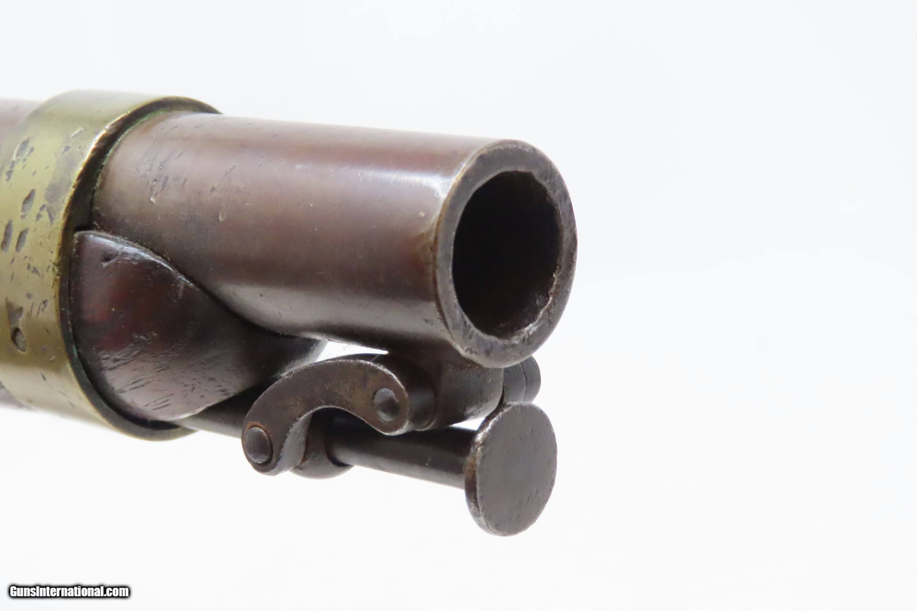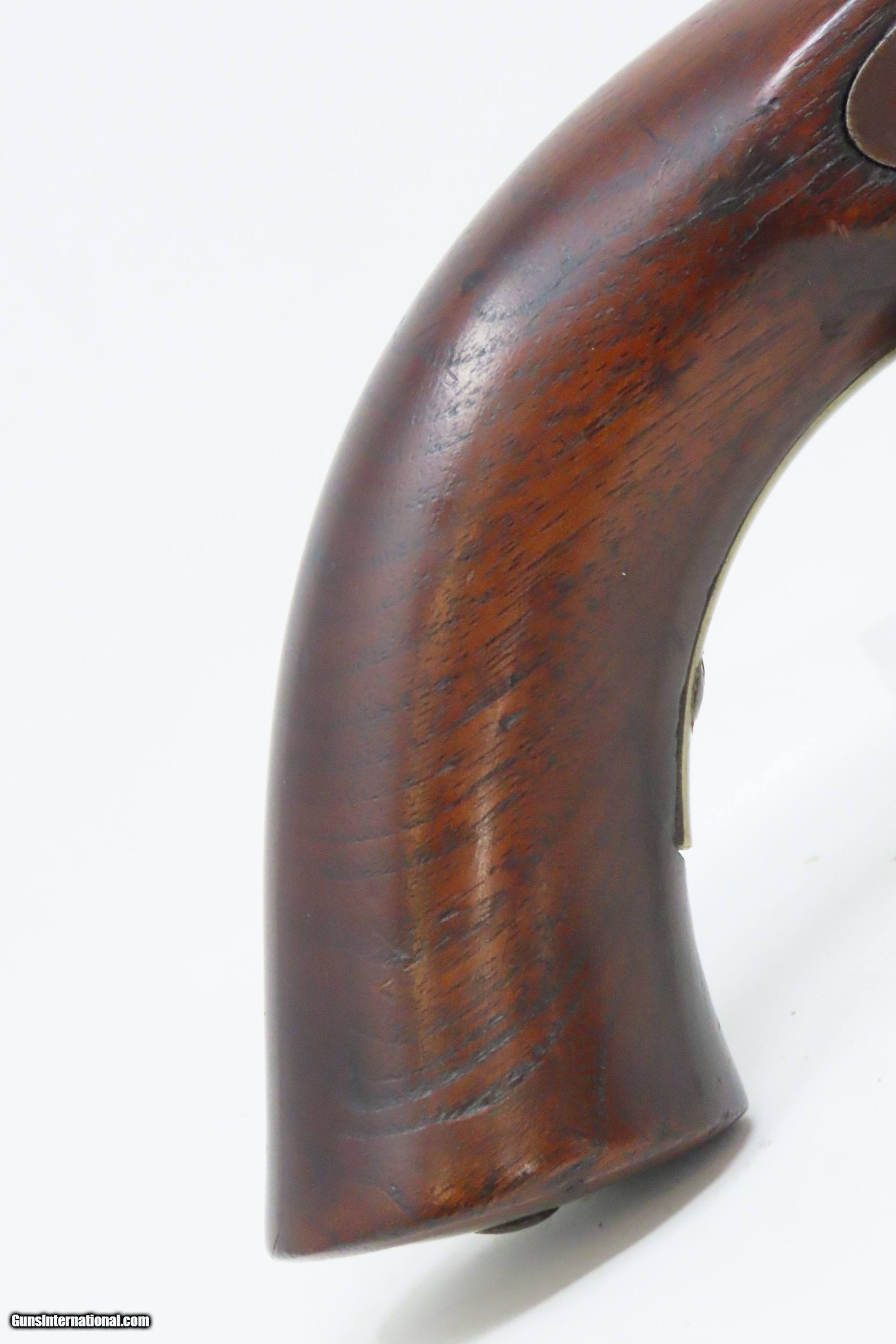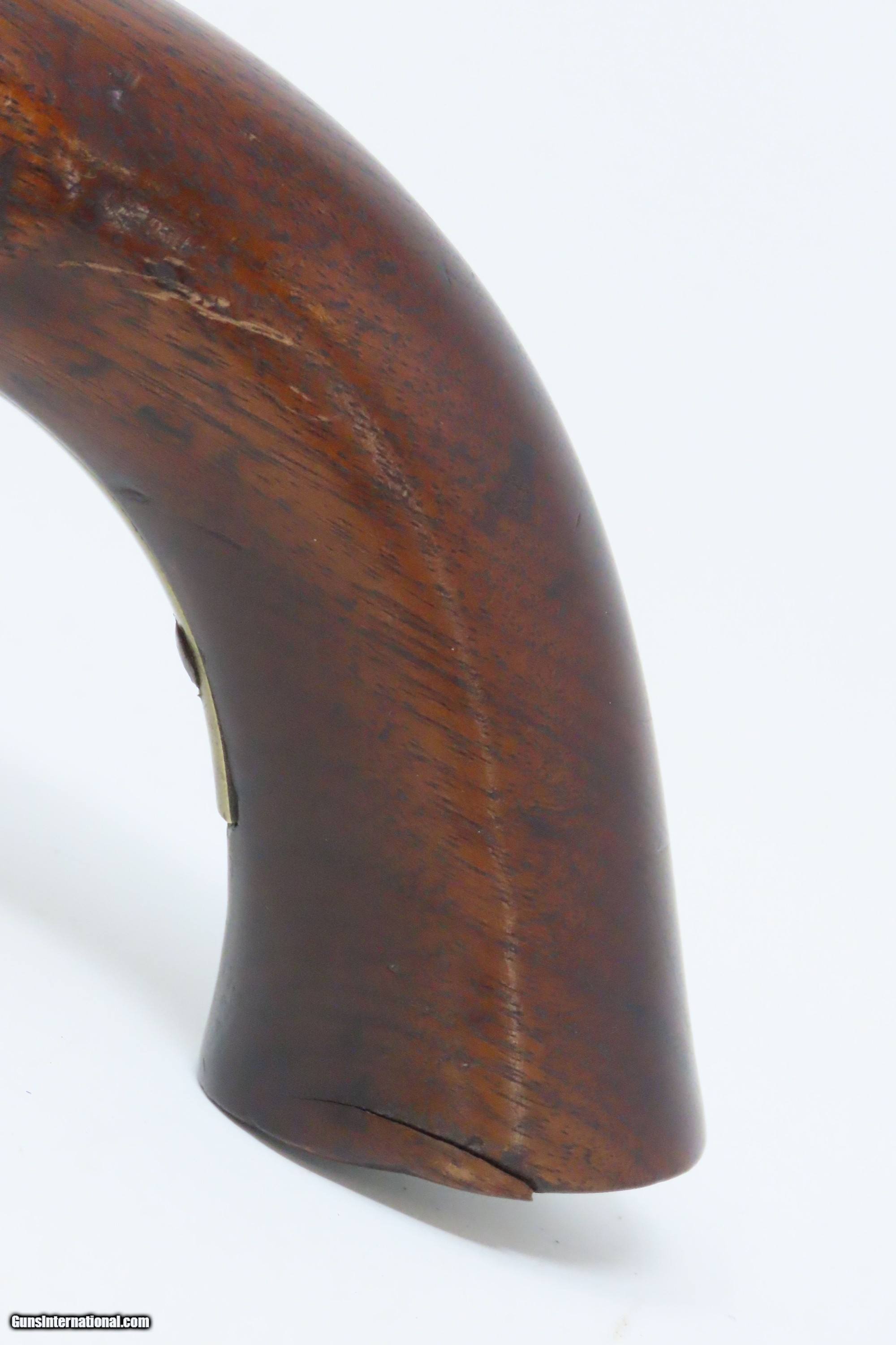 Description: RARE USN AMES NAVY Model 1842 SHIP’S Pistol .54 Civil War Antique 1 of only 2,000, Dated MEXICAN-AMERICAN WAR Era Here we present an antique N.P. Ames U.S. Navy Contract Model 1842 “Box Lock” Pistol, in .54 caliber, made circa 1845 in Springfield, Massachusetts. Only 2000 of these were made by Ames circa 1842-1847. Most of these scarce pistols saw service through the American Civil War. This one was made just one year prior to the Mexican-American War. Unlike most martial pistols of its time, the hammer is mounted on the interior of the lock plate. It also features a captive ramrod on a swivel to avoid loss in the sea during boarding maneuvers. Its smoothbore made loading straightforward. The Model 1842 saw service during a time of great change and increasing tension, as well as firearms innovation. The Mexican-American War (1846-1848), the numerous conflicts with Native Americans, annexing of new territory, the rising blood-pressure over slavery, and a quick 36% population increase that all culminated in the blood-letting of the American Civil War. This was the first official percussion pistol to be adopted by the U.S. and simultaneously the last large smooth bore single shot pistol. By 1845 it was the primary issued weapon to the First and Second Regiment of Dragoons, replacing many of their Model 1836 flintlocks, just in time for the Mexican-American War. The Model 1842 was the last single shot smoothbore pistol issued by the U.S. Army. This example is marked “USN/1845/RP/P” on the breech, and “USN/1844” marked at the tail of the lock. The overall condition is good. Modestly refinished. The action is excellent. The bore is smooth and patinated. The stock has a short, stable split in the typical place at the lock screw, a chip on the left side of the bottom of the grip, and some cracking front and rear of the lock. Good Ordnance cartouche on the left stock flat. Own the original! This is a legitimate antique and not a reproduction. Barrel is 6 inches. Caliber: .54 Percussion Overall condition as seen in photos. Very Fast. Very Safe. FREE SHIPPING WORLDWIDE. Delivered directly to your door by express mail! Guaranteed AUTHENTIC & Includes CERTIFICATE OF AUTHENTICITY. ancestryguns $1700 #228138 SOLD Antique: Yes |