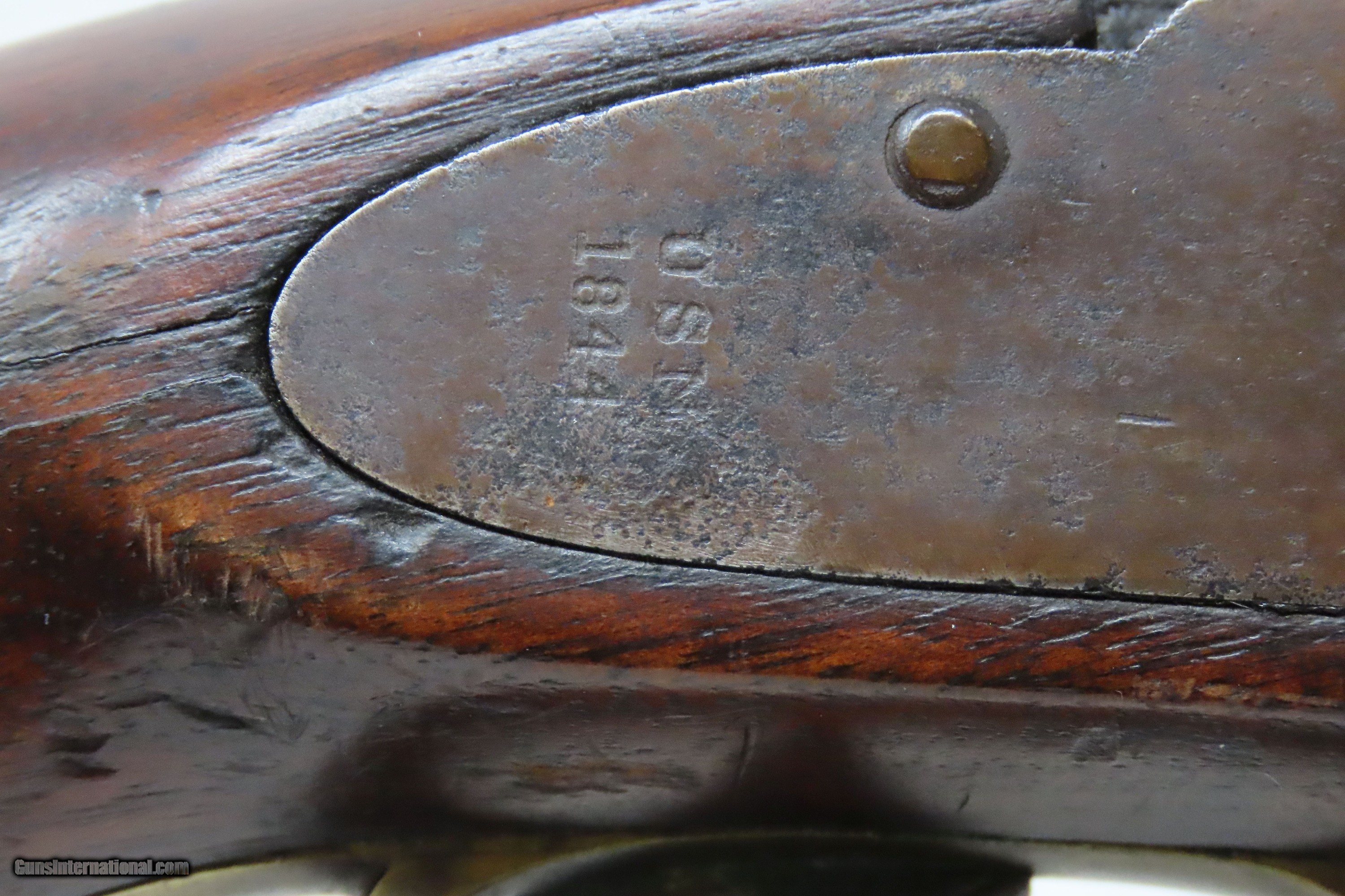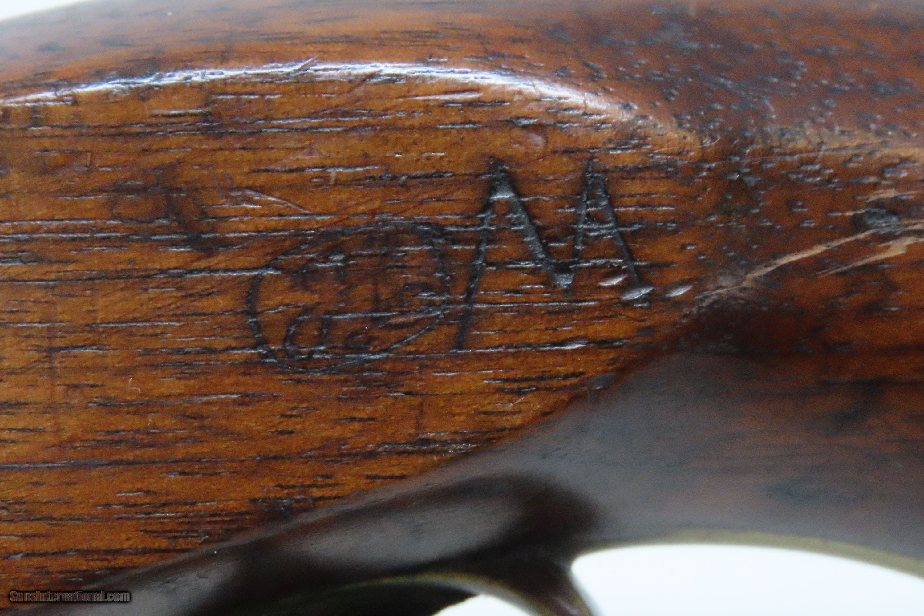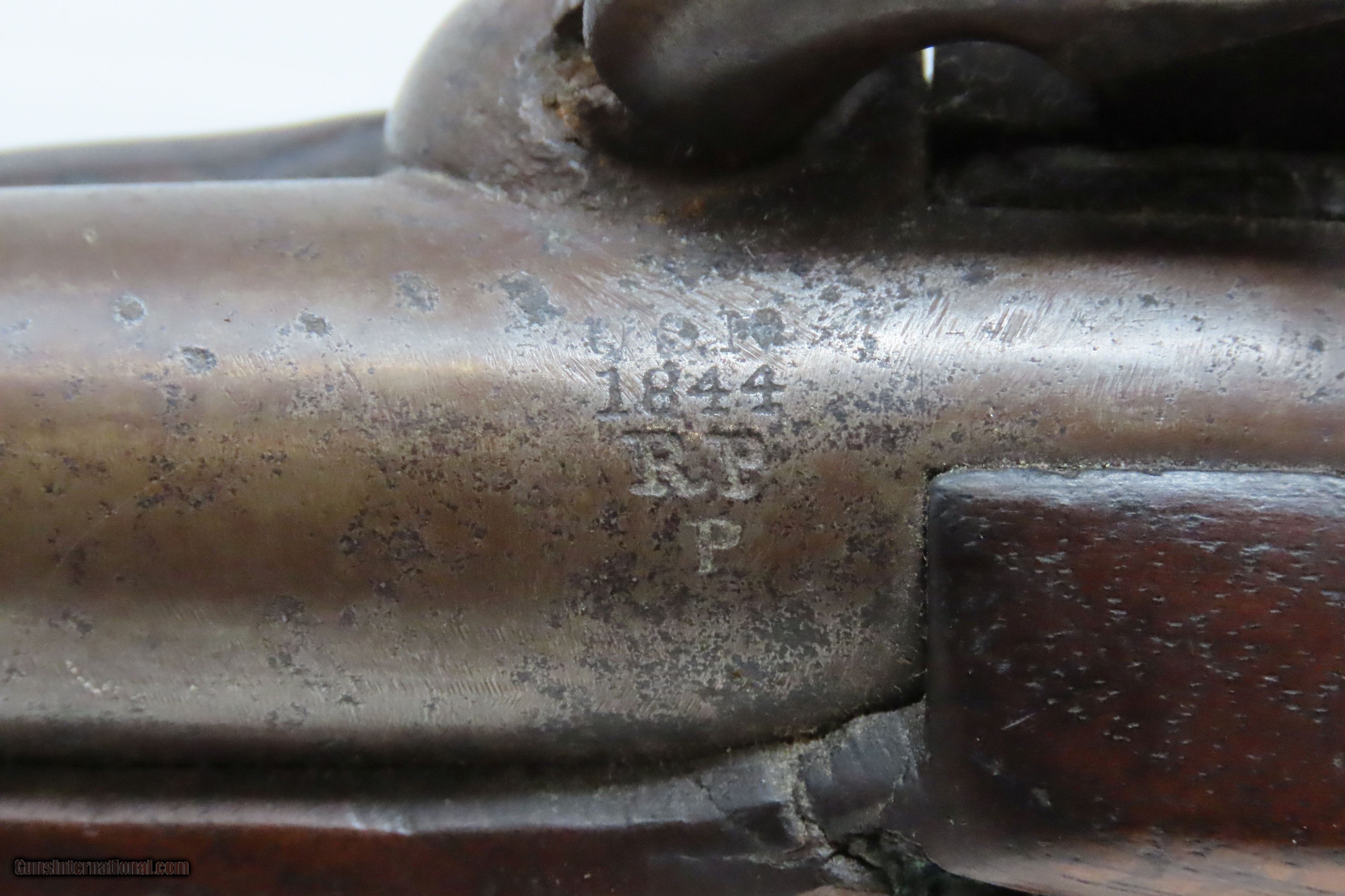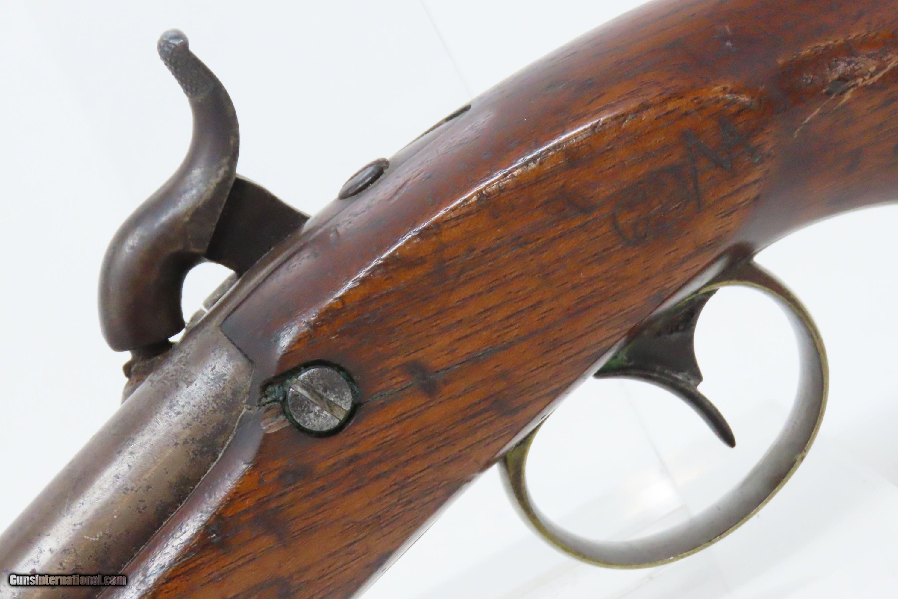 Description: RARE USN AMES NAVY Model 1842 SHIP’S Pistol .54 Civil War Antique 1 of only 2,000, Dated MEXICAN-AMERICAN WAR Era Here we present an antique N.P. Ames U.S. Navy Contract Model 1842 “Box Lock” Pistol, in .54 caliber, made circa 1845 in Springfield, Massachusetts. Only 2000 of these were made by Ames circa 1842-1847. Most of these scarce pistols saw service through the American Civil War. This one was made just one year prior to the Mexican-American War. Unlike most martial pistols of its time, the hammer is mounted on the interior of the lock plate. It also features a captive ramrod on a swivel to avoid loss in the sea during boarding maneuvers. Its smoothbore made loading straightforward. The Model 1842 saw service during a time of great change and increasing tension, as well as firearms innovation. The Mexican-American War (1846-1848), the numerous conflicts with Native Americans, annexing of new territory, the rising blood-pressure over slavery, and a quick 36% population increase that all culminated in the blood-letting of the American Civil War. This was the first official percussion pistol to be adopted by the U.S. and simultaneously the last large smooth bore single shot pistol. By 1845 it was the primary issued weapon to the First and Second Regiment of Dragoons, replacing many of their Model 1836 flintlocks, just in time for the Mexican-American War. The Model 1842 was the last single shot smoothbore pistol issued by the U.S. Army. This example is marked “USN/1845/RP/P” on the breech, and “USN/1844” marked at the tail of the lock. The overall condition is good. Modestly refinished. The action is excellent. The bore is smooth and patinated. The stock has a short, stable split in the typical place at the lock screw, a chip on the left side of the bottom of the grip, and some cracking front and rear of the lock. Good Ordnance cartouche on the left stock flat. Own the original! This is a legitimate antique and not a reproduction. Barrel is 6 inches. Caliber: .54 Percussion Overall condition as seen in photos. Very Fast. Very Safe. FREE SHIPPING WORLDWIDE. Delivered directly to your door by express mail! Guaranteed AUTHENTIC & Includes CERTIFICATE OF AUTHENTICITY. ancestryguns $1700 #228138 SOLD Antique: Yes |