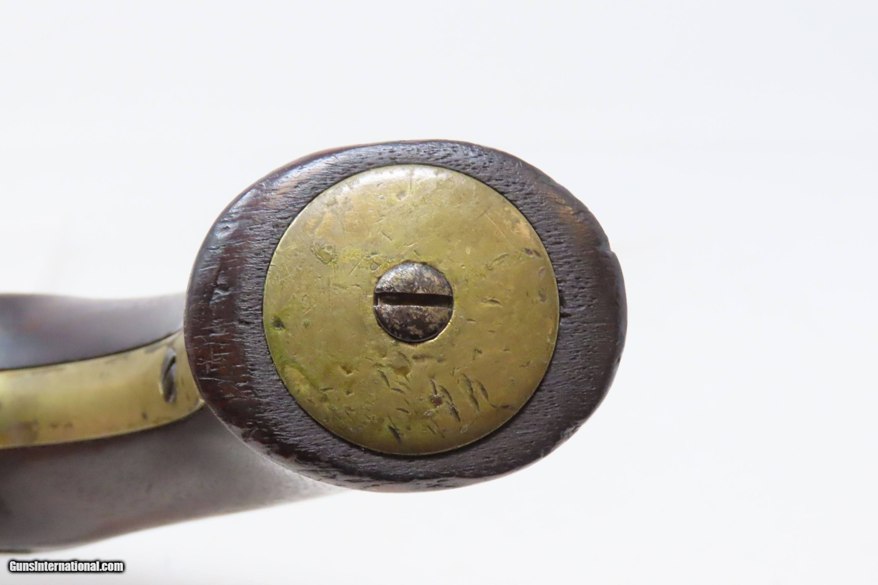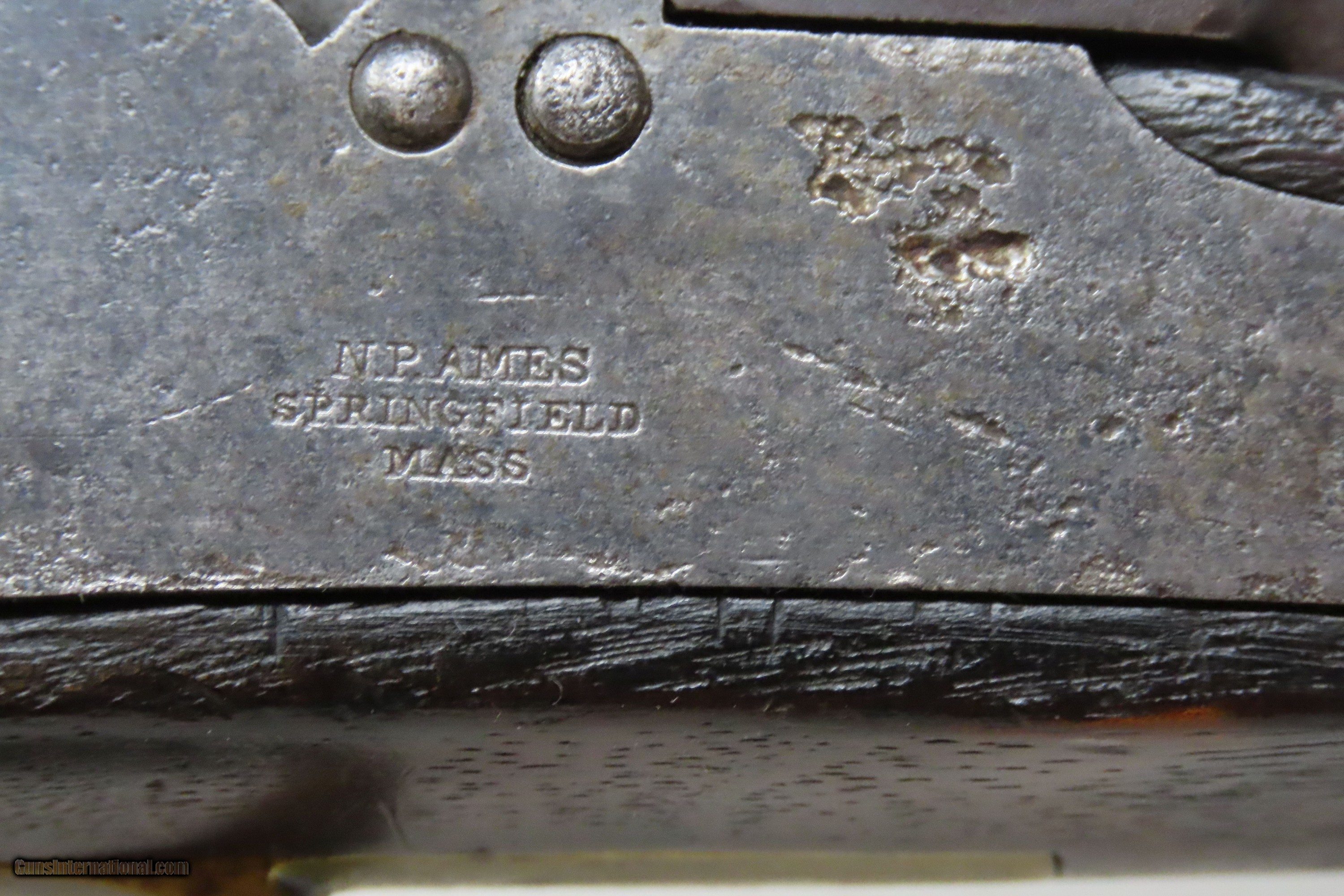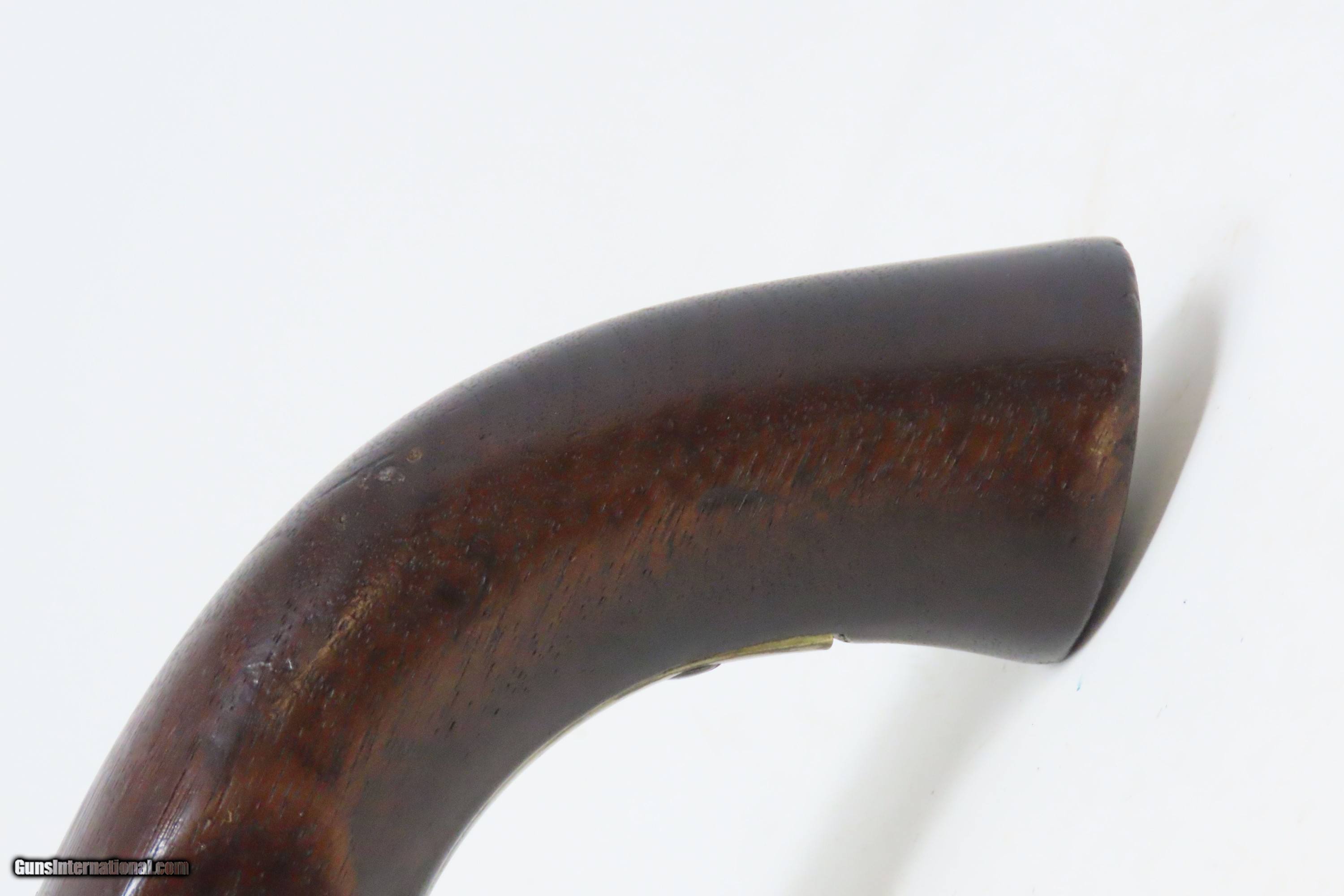 Description: SCARCE Antique N.P. AMES U.S. NAVY Model 1842 BOXLOCK .58 Percussion Pistol 1 of only 2,000; 1945 Dated MEXICAN-AMERICAN WAR Here we present an antique N.P. Ames U.S. Navy Contract Model 1842 “Box Lock” Percussion Pistol, in .58 caliber, made one year before the Mexican-American War in 1845 in Springfield, Massachusetts. Only 2000 of these were made by Ames between 1842 and 1847. Most of these scarce pistols saw service through the American Civil War. This one was made just prior to the Mexican-American War. Unlike most martial pistols of its time, the hammer is mounted on the interior of the lock plate. It also features a captive ramrod on a swivel to avoid loss in the sea during boarding maneuvers. Its smoothbore made loading straightforward. The Model 1842 saw service during a time of great change and increasing tension, as well as firearms innovation. The Mexican-American War (1846-1848), the numerous conflicts with Native Americans, annexing of new territory, the rising blood-pressure over slavery, and a quick 36% population increase that all culminated in the blood-letting of the American Civil War. This was the first official percussion pistol to be adopted by the U.S. and simultaneously the last large smooth bore single shot pistol. By 1845 it was the primary issued weapon to the First and Second Regiment of Dragoons, replacing many of their Model 1836 flintlocks, just in time for the Mexican-American War. The Model 1842 was the last single shot smoothbore pistol issued by the U.S. Army. The overall condition is good. Dark patina. The action is strong. The bore is smooth and patinated. The stock shows use and remains solid. The ramrod’s back is absent so it is not captive to the hinge at the front. Own the original! This is a legitimate antique and not a reproduction. Barrel is 6 inches. Caliber: .58 Percussion Overall condition as seen in photos. Very Fast. Very Safe. FREE SHIPPING WORLDWIDE. Delivered directly to your door by express mail! Guaranteed AUTHENTIC & Includes CERTIFICATE OF AUTHENTICITY. ancestryguns $1500 #233044 SOLD Antique: Yes |