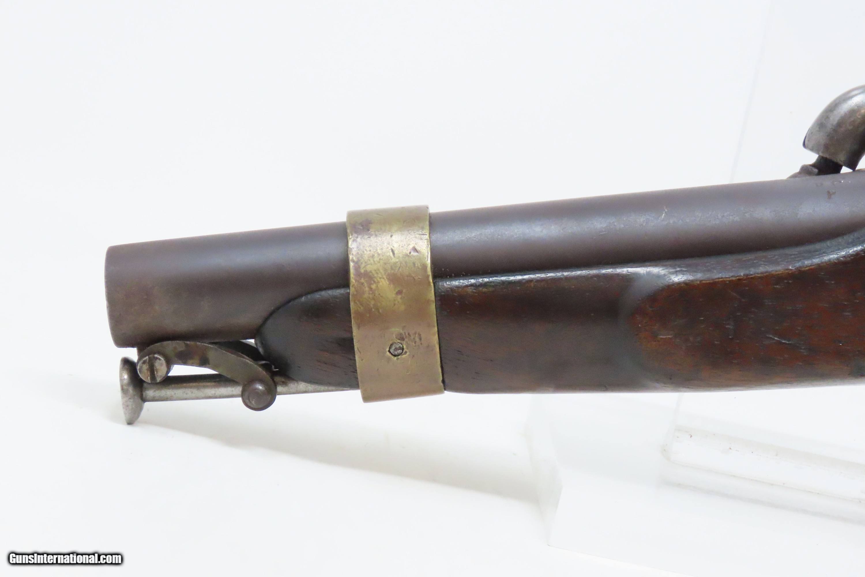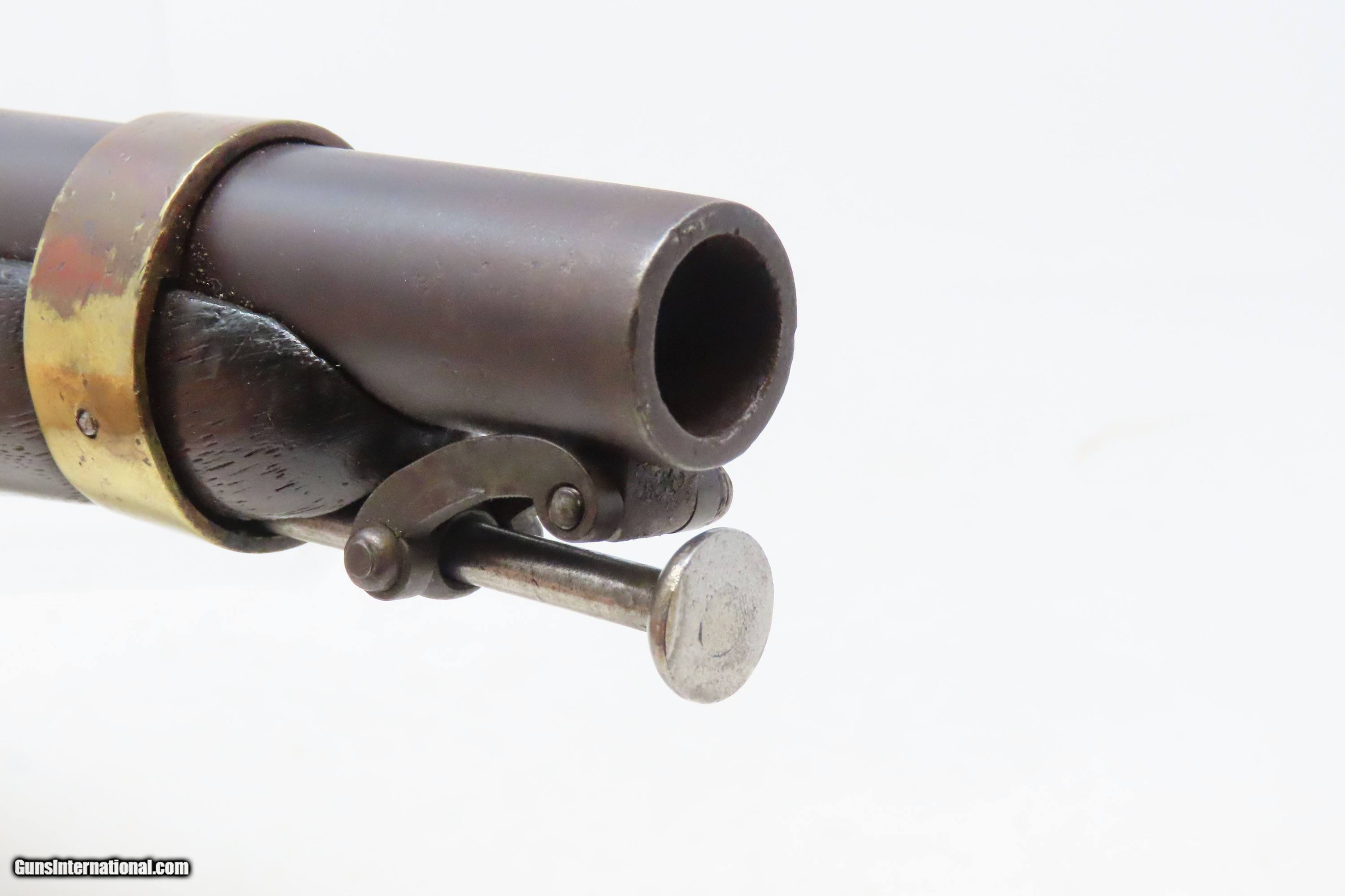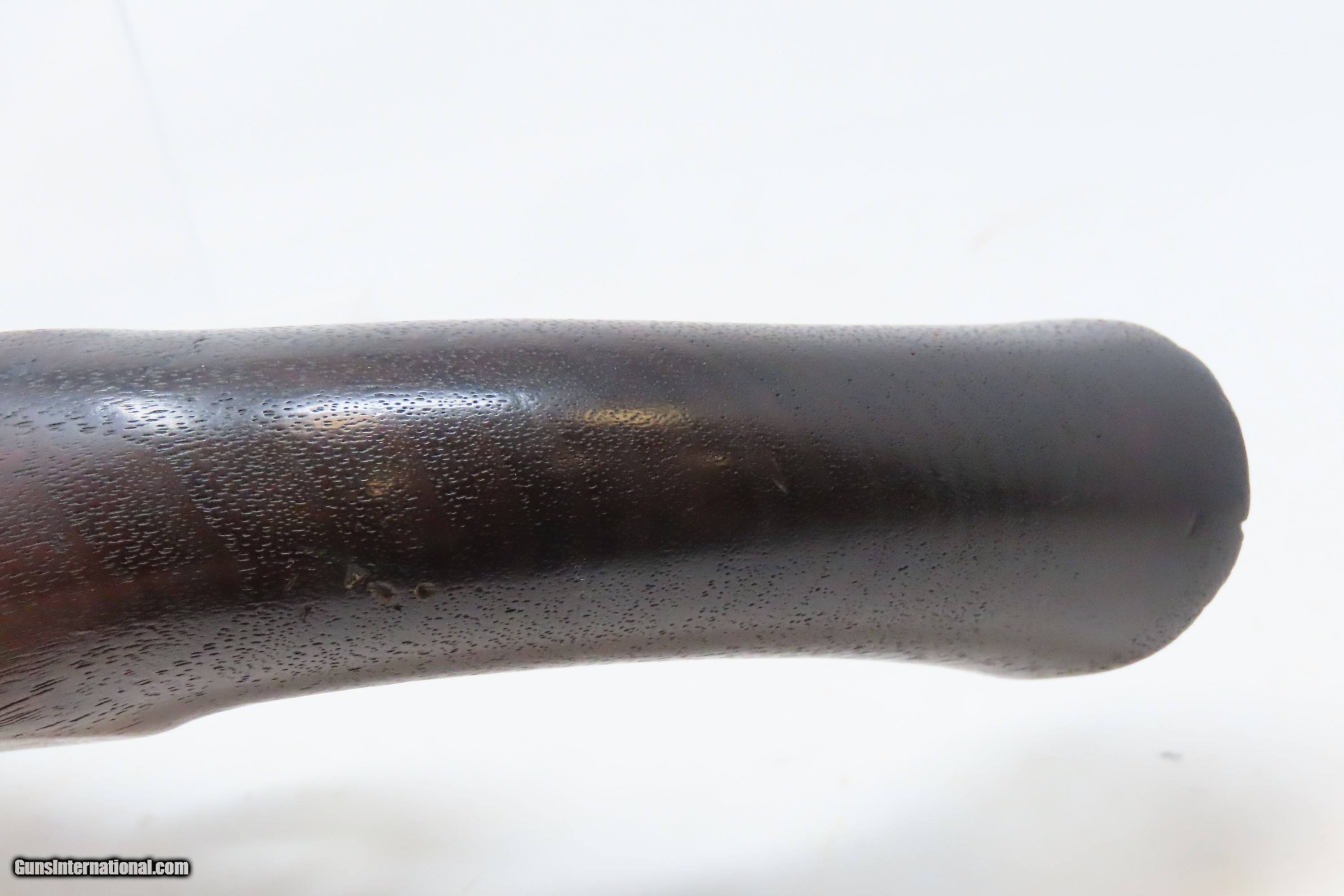 Description: SCARCE Antique N.P. AMES U.S. NAVY Model 1842 BOXLOCK .58 Percussion Pistol 1 of only 2,000; 1945 Dated MEXICAN-AMERICAN WAR Here we present an antique N.P. Ames U.S. Navy Contract Model 1842 “Box Lock” Percussion Pistol, in .58 caliber, made one year before the Mexican-American War in 1845 in Springfield, Massachusetts. Only 2000 of these were made by Ames between 1842 and 1847. Most of these scarce pistols saw service through the American Civil War. This one was made just prior to the Mexican-American War. Unlike most martial pistols of its time, the hammer is mounted on the interior of the lock plate. It also features a captive ramrod on a swivel to avoid loss in the sea during boarding maneuvers. Its smoothbore made loading straightforward. The Model 1842 saw service during a time of great change and increasing tension, as well as firearms innovation. The Mexican-American War (1846-1848), the numerous conflicts with Native Americans, annexing of new territory, the rising blood-pressure over slavery, and a quick 36% population increase that all culminated in the blood-letting of the American Civil War. This was the first official percussion pistol to be adopted by the U.S. and simultaneously the last large smooth bore single shot pistol. By 1845 it was the primary issued weapon to the First and Second Regiment of Dragoons, replacing many of their Model 1836 flintlocks, just in time for the Mexican-American War. The Model 1842 was the last single shot smoothbore pistol issued by the U.S. Army. The overall condition is good. Dark patina. The action is strong. The bore is smooth and patinated. The stock shows use and remains solid. The ramrod’s back is absent so it is not captive to the hinge at the front. Own the original! This is a legitimate antique and not a reproduction. Barrel is 6 inches. Caliber: .58 Percussion Overall condition as seen in photos. Very Fast. Very Safe. FREE SHIPPING WORLDWIDE. Delivered directly to your door by express mail! Guaranteed AUTHENTIC & Includes CERTIFICATE OF AUTHENTICITY. ancestryguns $1500 #233044 SOLD Antique: Yes |