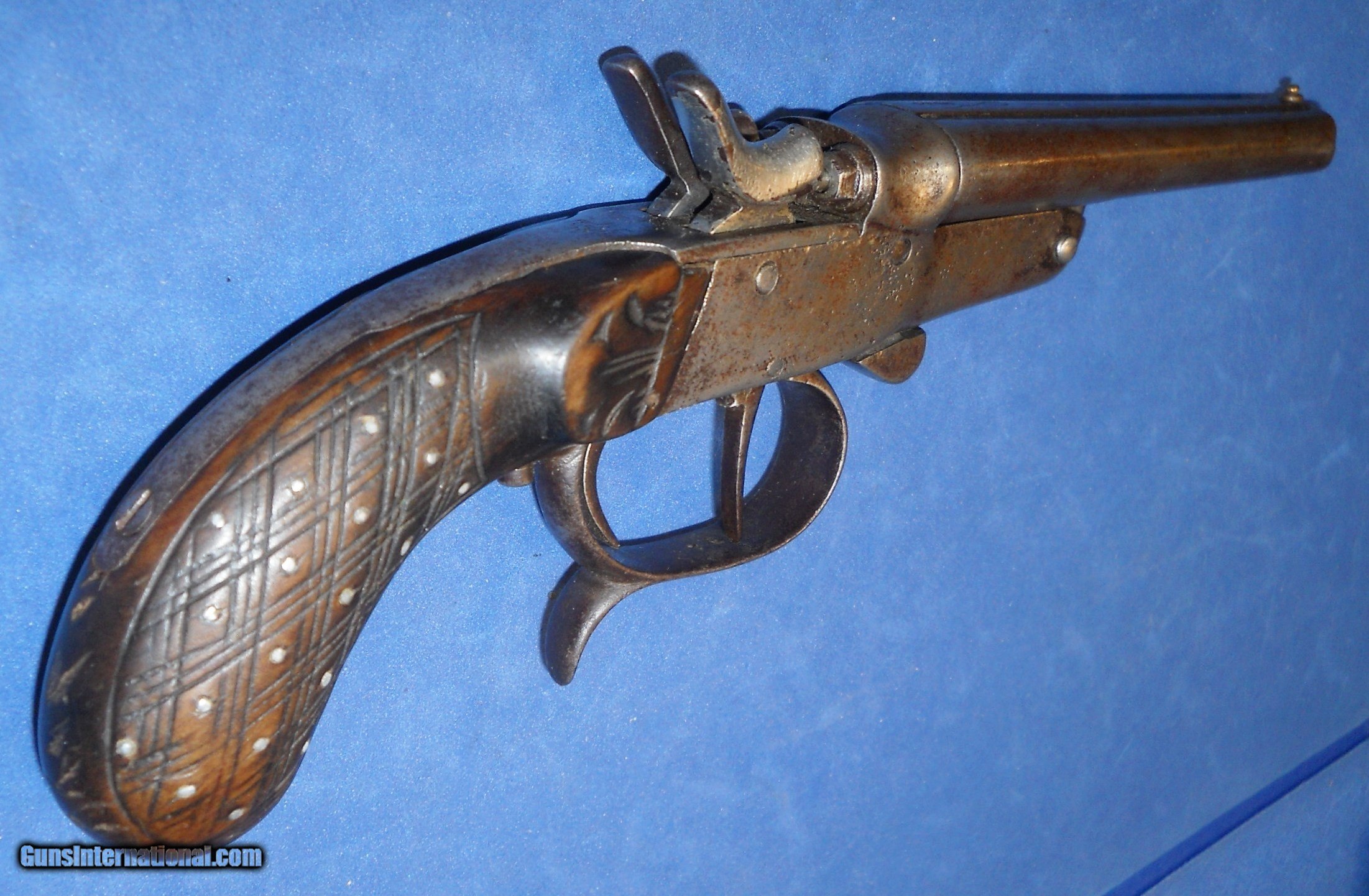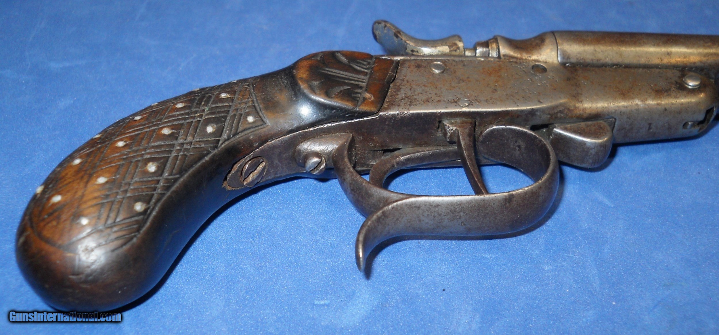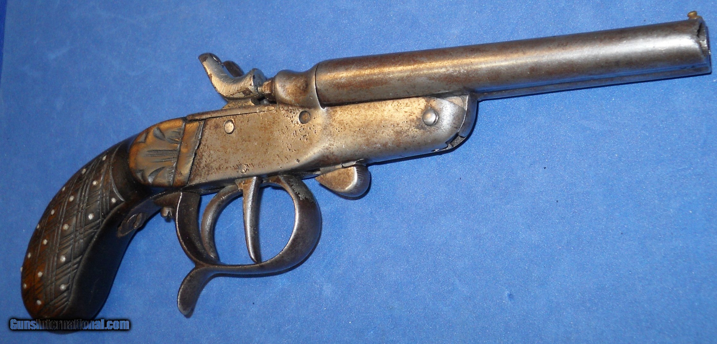 * Antique BELGIUM DOUBLE SxS HAMMER PISTOL SUPERIOR 320 CAL