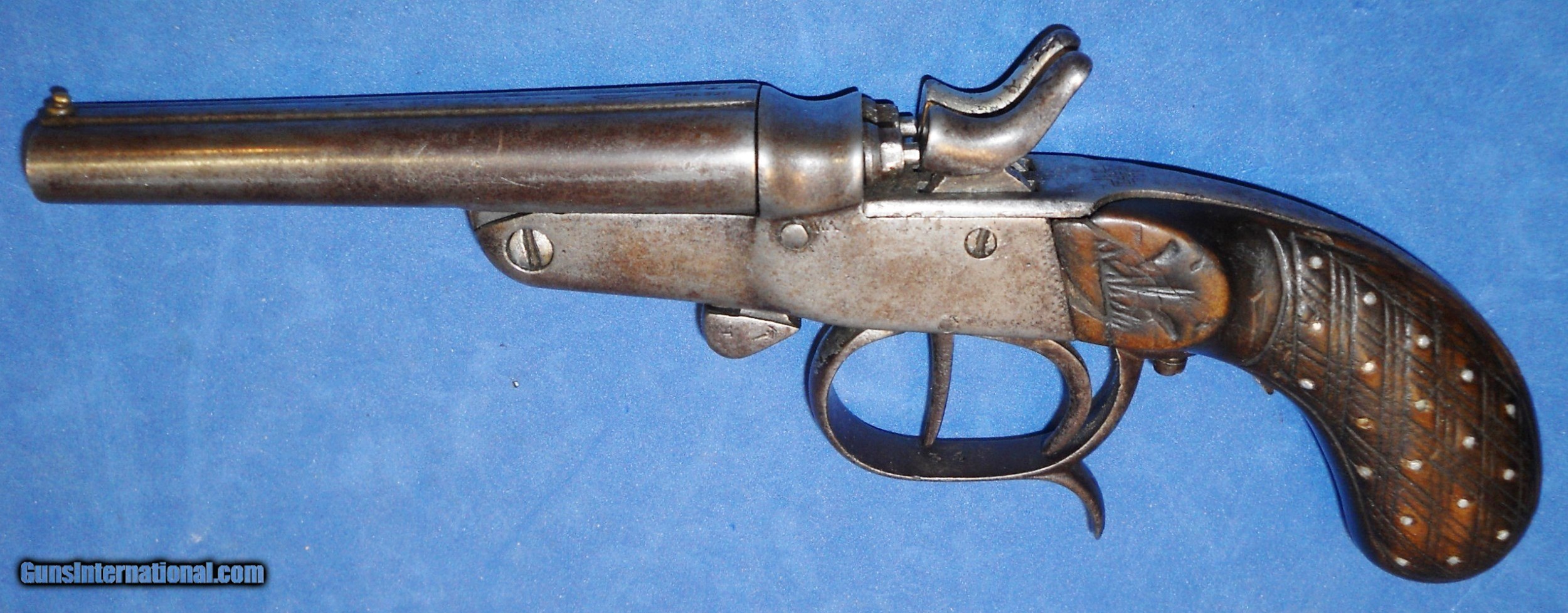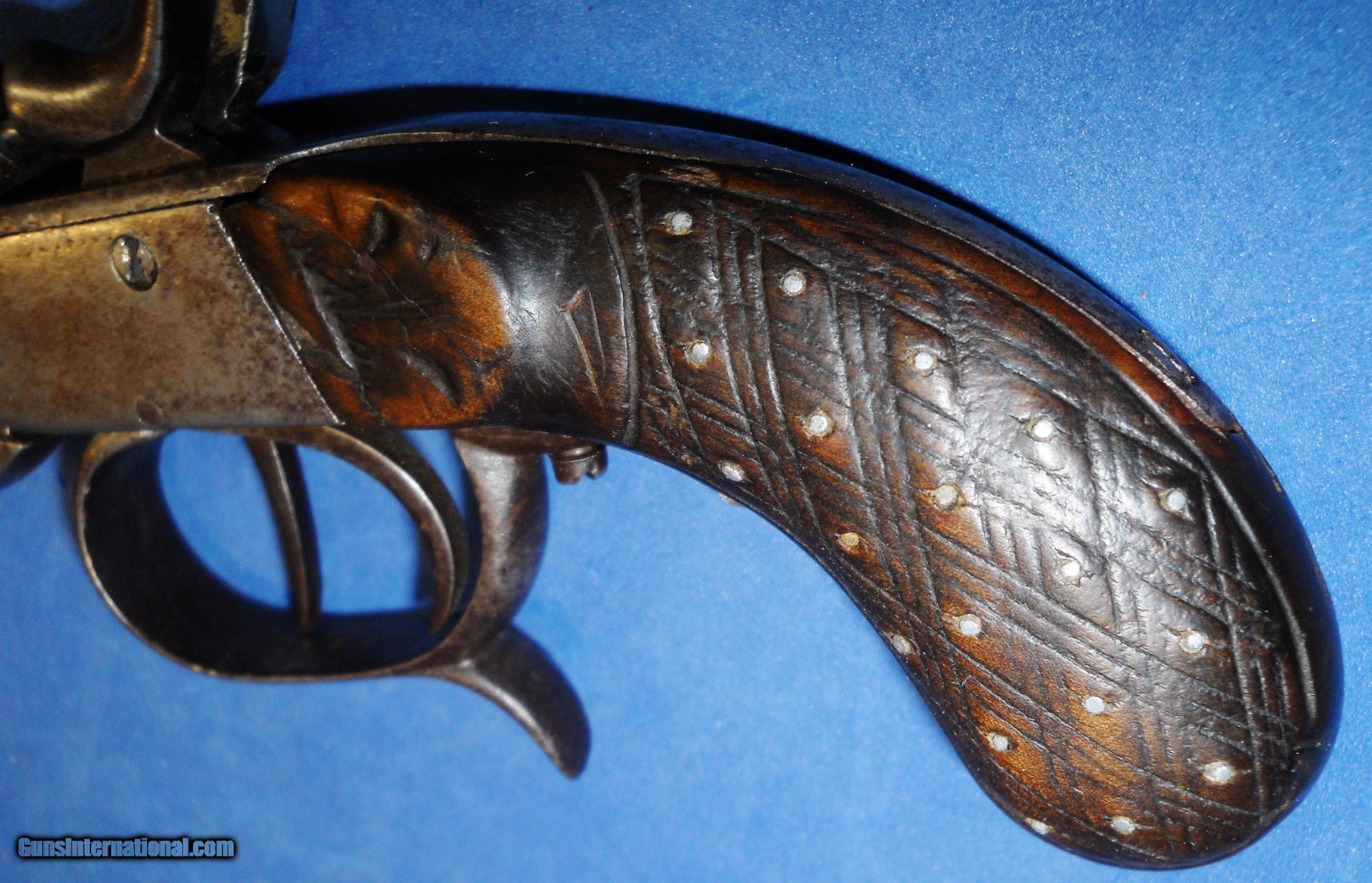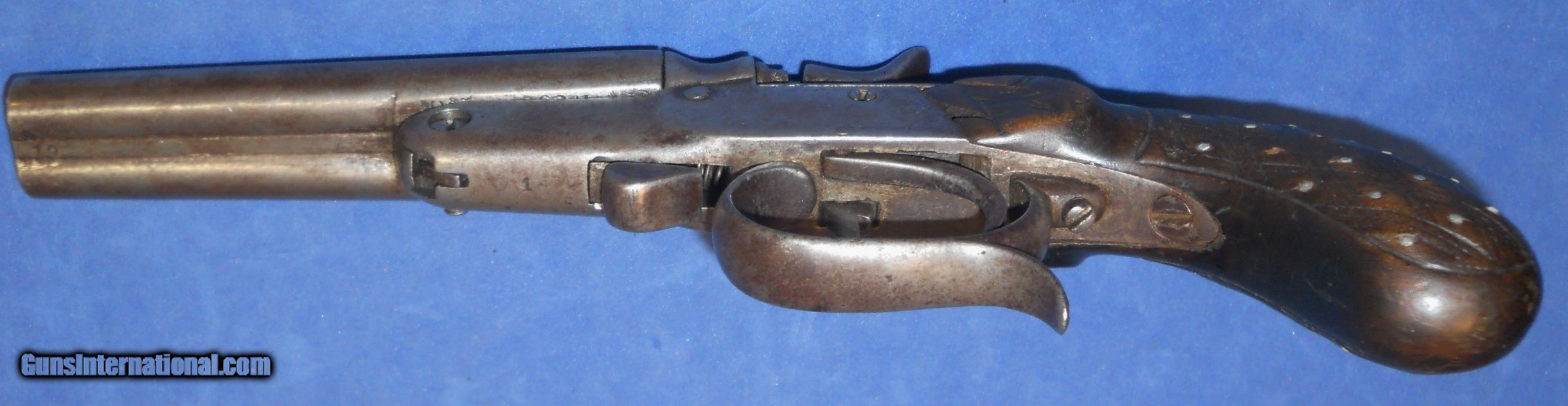 * Antique BELGIUM DOUBLE SxS HAMMER PISTOL SUPERIOR 320 CAL