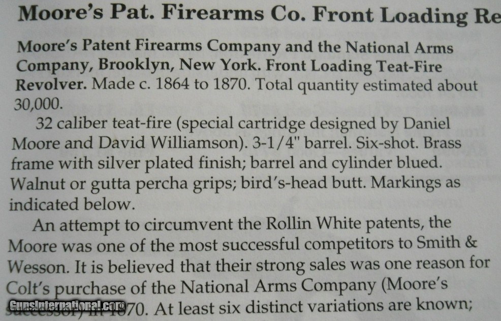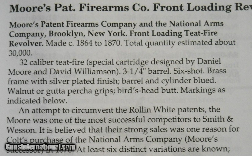 Description: ANTIQUE NATIONAL ARMS Co., BROOKLYN, NY .32 CALIBER TEAT-FIRE REVOLVER WITH ONE ORIGINAL LIVE CARTRIDGE FOR DISPLAY. FULLY LEGIBLE D.WILLIAMSON CYLINDER MARKING SEE MY OTHER ITEMS FOR A MOORE'S FIREARMS Co. EXAMPLE.. SHIPS DITECT TO BUYER ANYWHERE THAT'S OK. $10.00 S&H USPS PRIORITY. INSURANCE ADDITIONAL AT POSTAL RATES IF WANTED. SEE SELLER Estate Antiques OTHER LISTINGS FOR MORE ITEMS FROM OLD TIME COLLECTIONS. SOLD Antique: Yes Manufacturer: NATIONAL ARMS Co. Model: WITH RIGHT SIDE EXTRACTOR Serial Number: 22168 Caliber Info: .32 TEAT-FIRE Bore: VERY GOOD Condition: VERY GOOD AS PICTURED Metal Condition: ORIGINAL Wood Condition: VERY GOOD Bore Condition: DISTINCT RIFLING Barrel Type: ROUND Action: CRISP & TIGHT Finish: ORIGINAL AGED Manufacture Date: 1864-1870 Engraving: FACTORY |