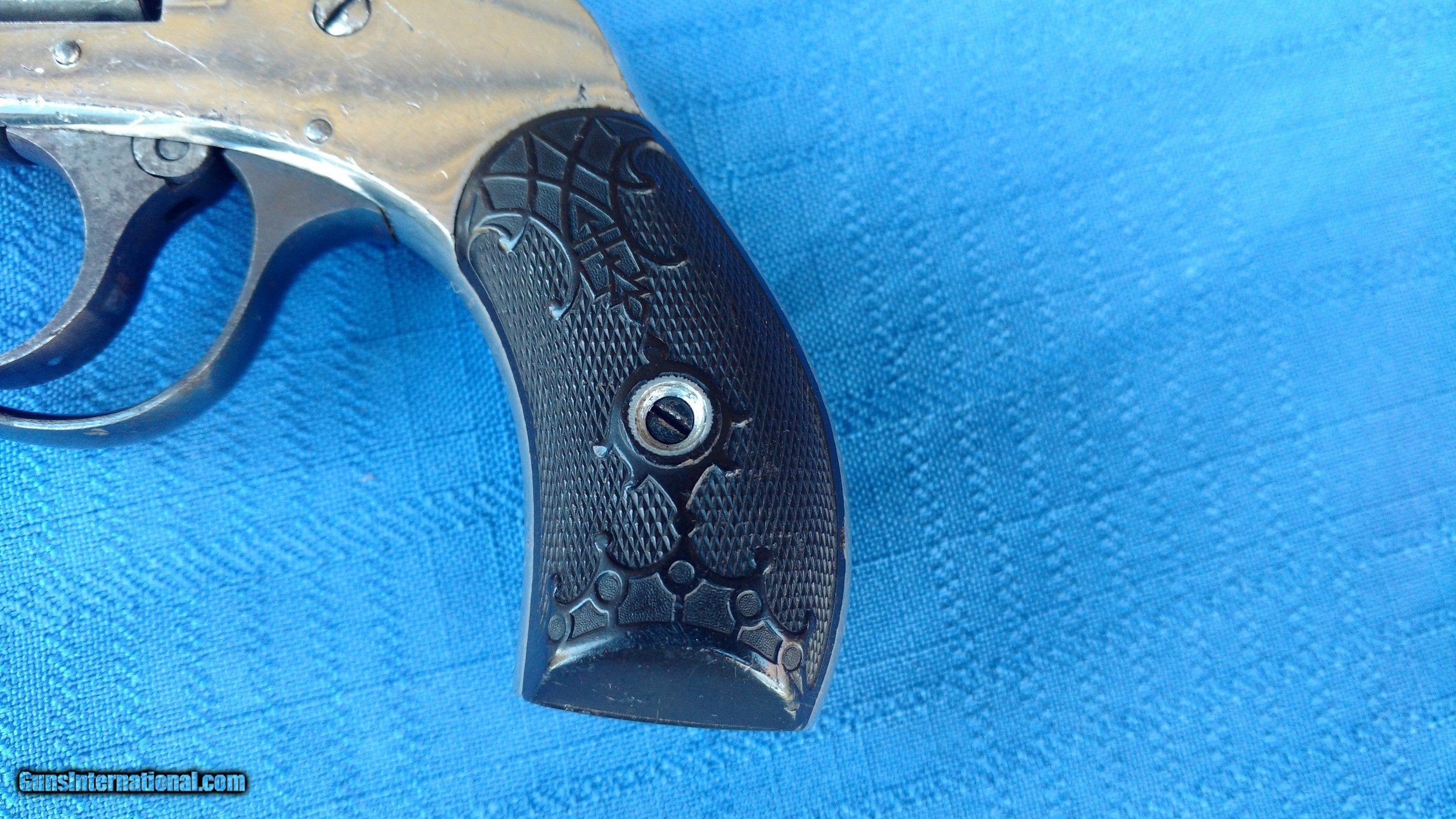 Description: Super rare " Bicycle Gun" with a 1 inch barrel. Made by Iver Johnson . 32 Caliber . Hammer less Revolver. Condition is Excellentplus original Condition ! Gun has all of its original Nickel Finish . Trigger Guard has all of its original Blue Finish remaining. Bore and Mechanics are Excellent . Super Nicely example of a Iver Johnson Bicycle Gun. Please review my photos and please email me with any questions ? 3day inspection . Thank you for looking , Little Jo SOLD Antique: Yes Manufacturer: Iver Johnson Serial Number: 70,902 |