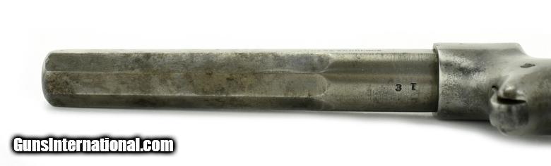 Description: Scarce Allen & Wheelock Center Hammer Pistol. Only 500 of these guns made. .31 Caliber with a 5” barrel. Bottom of the barrel has “31” marked which we are not certain if this is the serial number or caliber designation. Metal has a gray patina. Grips are very good. SOLD Antique: Yes |