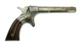 Scarce Allen & Wheelock Center Hammer Pistol. Only 500 of these guns made. .31 Caliber with a 5” barrel. Bottom of the barrel has “31” marked which we are not certain if this is the serial number or caliber designation. Metal has a gray patina. Grips are very good.