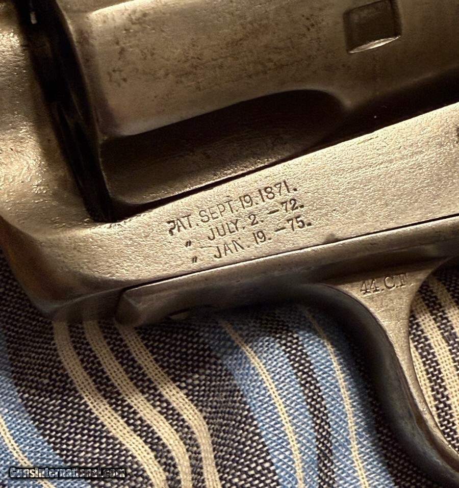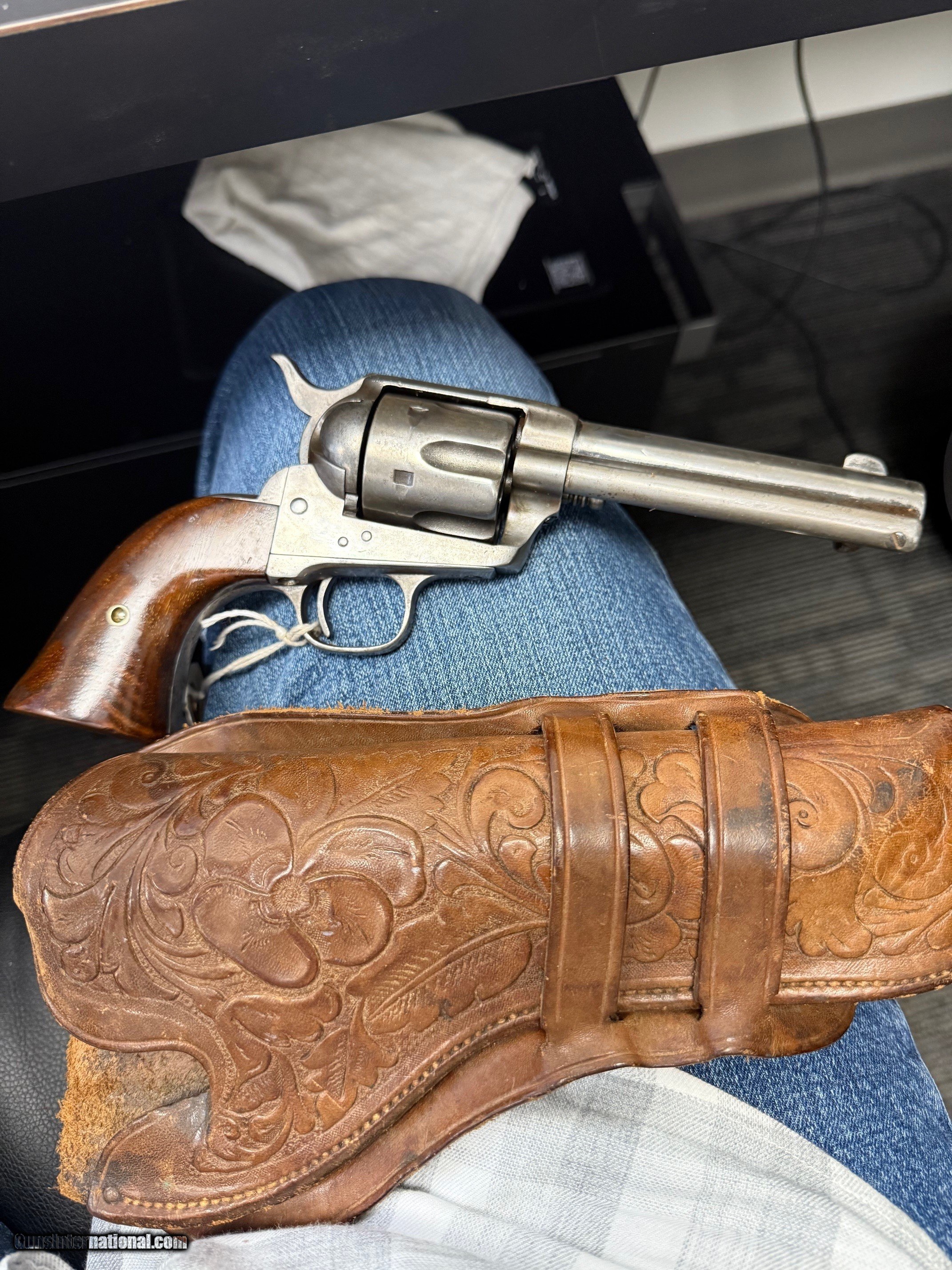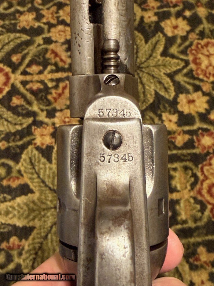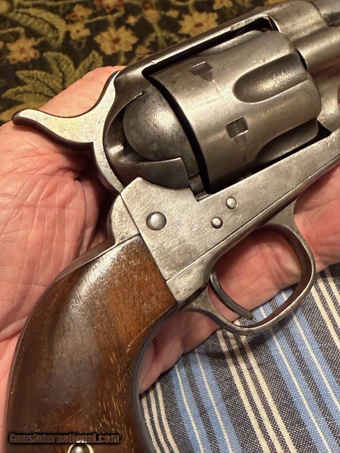 Description: Offered here is a very nice 1880 Colt Frontier Six Shooter in .44-40 Cal BP. with a low Serial #57xxx. 4 3/4" barrel length. All matching numbers, clean example w/ normal wear. Wording and markings are still visible although some faint. As most know, the method for early marking was by acid-etching which would wear off from repeated holstering. Period holster included (no belt). I have a C&R so can ship to your C&R or FFL or to an FFL of your choice if you prefer. As this pistol is pre-1898, shipping is not an issue. Reasonable offers entertained. Curio/Relic: Yes Antique: Yes Price: $4,000.00 Contact Seller |