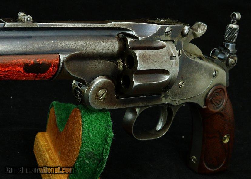 Description: "Buntline Special" Model 320 revolving rifle is one of the rarest Smith & Wesson firearms produced, with a production total production of just 977. The frame and the basic action of the Model 320 were taken from the New Model No. 3 revolver, with some minor differences... The modified bead and notch sights on the barrel and are period non-factory added Lyman peep sight tapped in behind the hammer on top of rear grip strap. The matching serial number appears on the butt, cylinder, 18" barrel and barrel latch... The finish shows 25% + of the original blue finish in the protected areas, Mechanically excellent, This is an opportunity to get your hands on a scarce Smith & Wesson revolving rifle. ANTIQUE (circa 1879-1887). I will sell this one for $4,450. SOLD Antique: Yes |