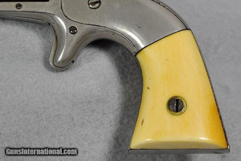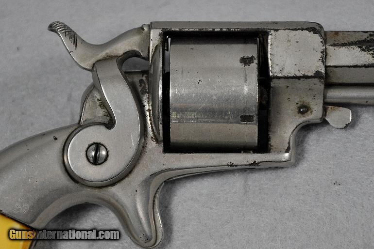 Description: Allen & Wheelock, ANTIQUE, PRESENTATION PIECE, 6 shot double action side hammer rimfire revolver, 2nd or 3rd Model, caliber .32 rimfire, s/n 52X (Mfg. 1859-1862), barrel length 4", retains about 85% original nickel or silver finish, open sights, bore is in Good condition, Ivory grips in Excellent condition, locks up tight, functions well, ENGRAVED "J. COTTON GIBSON, BROOKLYN, N.Y." ON BACKSTRAP, very neat little piece, SOLD AS A COLLECTORS ITEM ONLY- PURCHASER MUST AGREE TO HAVE IT CHECKED OUT BY A COMPETENT GUNSMITH IF HE INTENDS TO FIRE IT, Retail value 600.00, Sale priced at $395.00 Our firearms are best viewed on a desktop or laptop computer with at least a 15" high rez screen. Viewing on an I-phone, I-pad, or tablet just can't show the detail that our professional photographer exhibits in his photos. We have been in the firearms business for over 55 years under the same ownership. We are a Platinum dealer on GI. We are receiving up to 50 e-mails daily. All buyers are taken on a strict first come-first served basis depending on the date and time we receive their e-mail. We strive to describe all of our sale items accurately and fully and include professional quality photos of each item. We do our best to point out negatives (if any) regarding a sale item. Although we offer a 3-day, no questions asked, return policy it has rarely been used the entire time we have been in business. The first potential buyer who states that he definitely wants an item gets it. Those having questions who do not commit to purchase in their first inquiry will have their questions answered but may lose the sale if another buyer e-mails after they do and commits to purchase before we can get back to the first inquirer to answer their questions. This happens almost daily and disappoints a lot of people. If you see something you want- commit to buy it. You will not be disappointed. We cater to first time GI buyers. You can purchase from us with total confidence. We will guide you through the purchasing process if need be. We add guns and gun related items to GI virtually every day. WANT TO VISIT A GUN SHOW RIGHT ON YOUR COMPUTER? It’s as simple as 1, 2, 3........1.) Go to the GunsInternational homepage. 2) Look UNDER the search box on the homepage and CLICK DIRECTLY ON THE WORDS "Advanced Search (Help!)", (DO NOT ENTER INFORMATION INTO THE SEARCH BOX ITSELF). 3) Type “Maryland Arms Company” into the "Sellers Screenname" box and hit "enter" or click on the "Search" box at bottom of screen Over 100 guns and related items we currently have listed on GI will come up with photos and complete descriptions that are available for purchase right now. We keep our ads current. This stuffs for sale immediately. No fooling around wasting time trying to beat out other people. No stupid fees. Who has the time and money for that? That’s the beauty of GI. Tell all your friends. USA SALES ONLY. Thank you SOLD Antique: Yes |