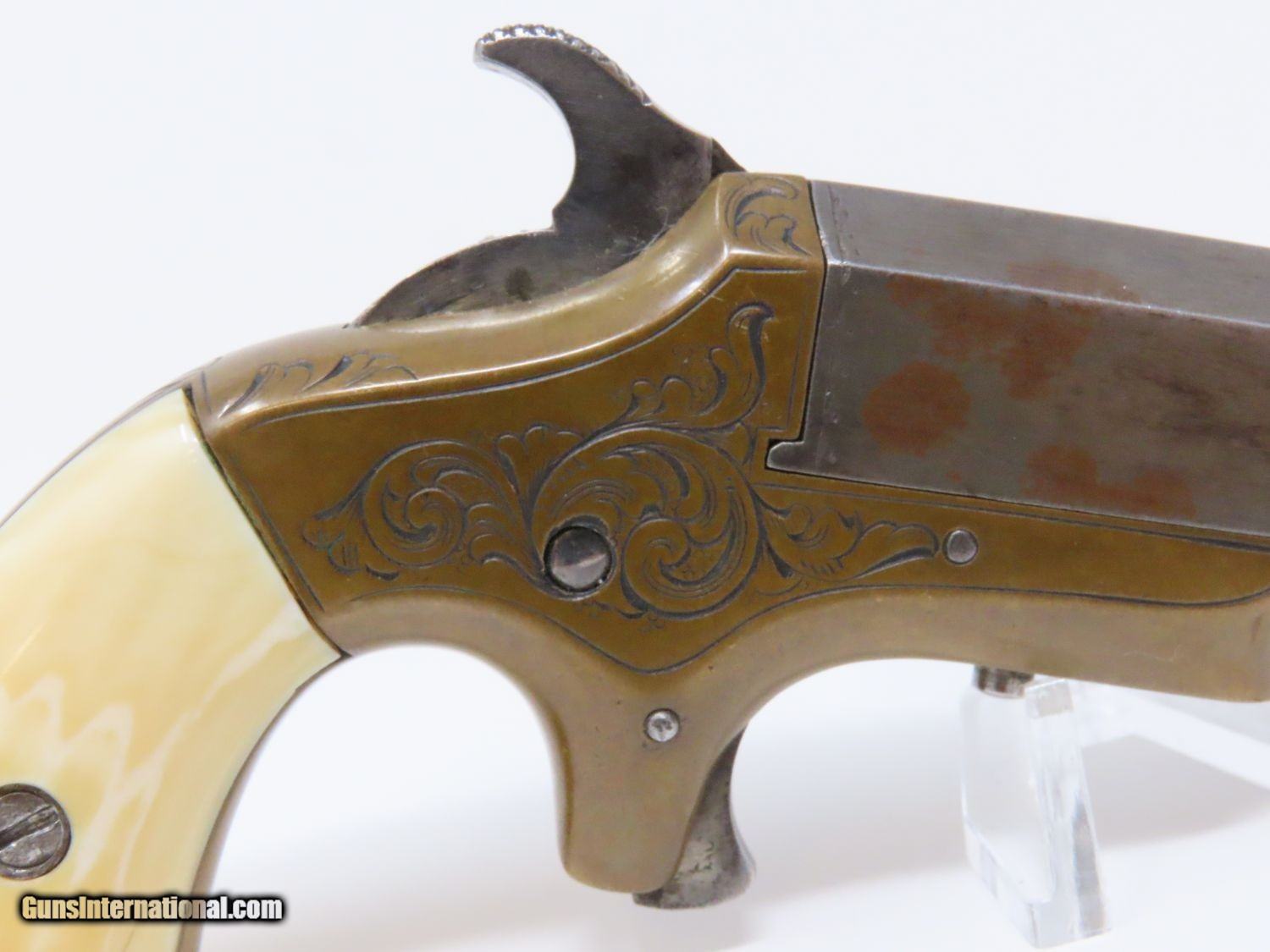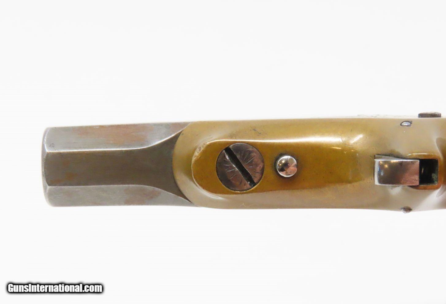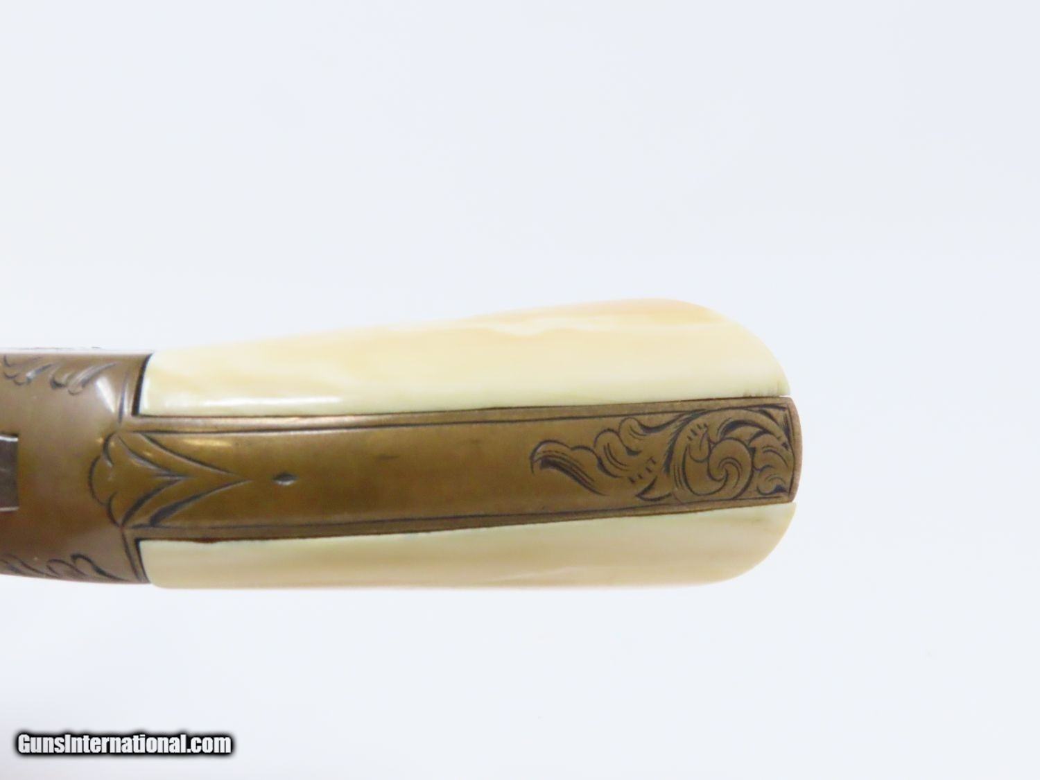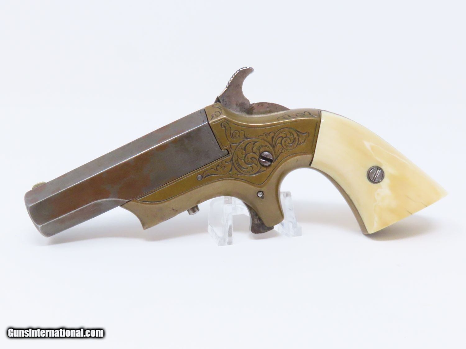 Antique BRASS FRAME Merrimack Arms Spur Trigger “SOUTHERNER” .41 Deringer Engraved Single Shot Hideout with Ivories!