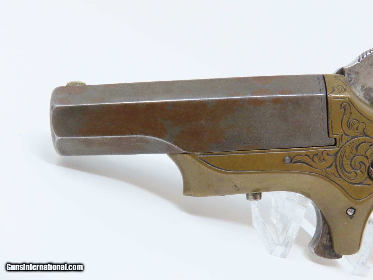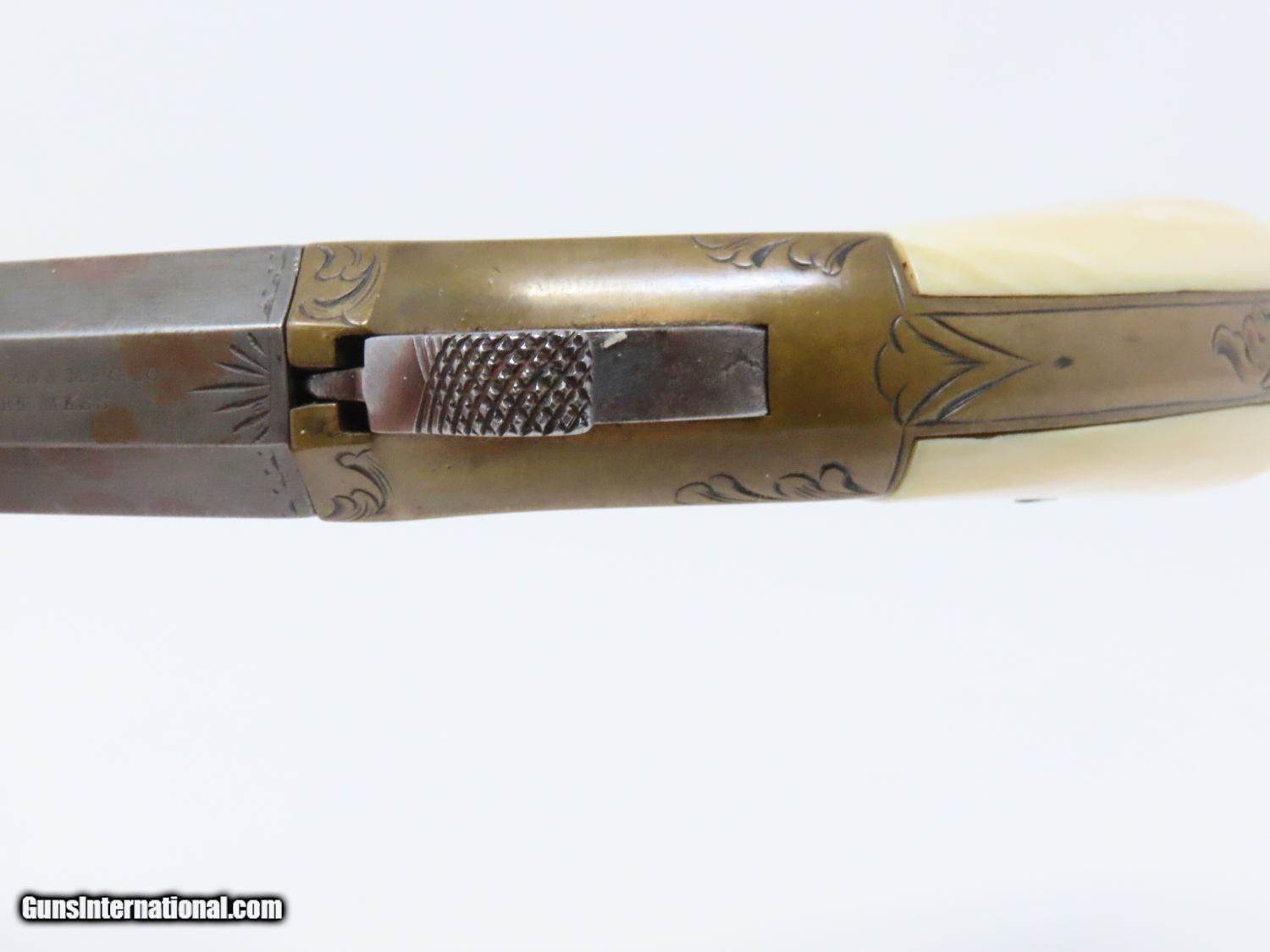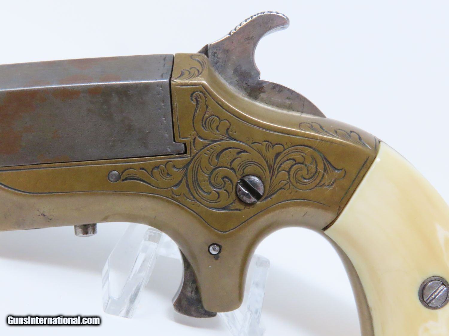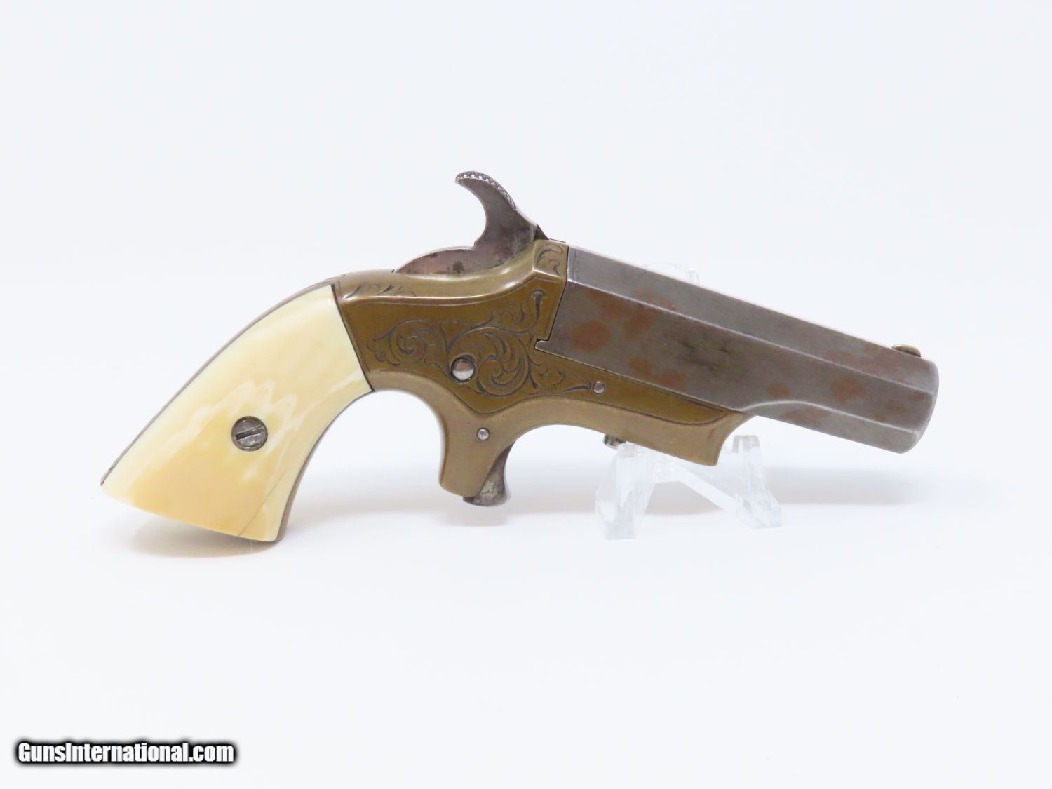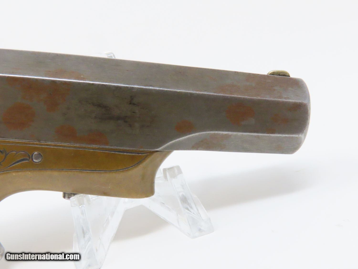 Antique BRASS FRAME Merrimack Arms Spur Trigger “SOUTHERNER” .41 Deringer Engraved Single Shot Hideout with Ivories!