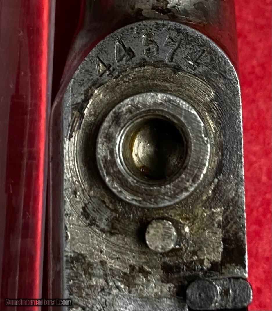 Description: Antique Colt 3rd Model Derringer .41 RF manufactured in 1883. Matching Serial Numbers. Very good condition overall. Tight little derringer with a tight lock up. Functions just as it should. Good bore with some pitting but deep lands and grooves. Tight fitting grips although the left grip is cracked. $10 Shipping. SOLD Antique: Yes Handgun Caliber: .41 Rimfire Manufacturer: Colt Model: Derringer Serial Number: 44574 Condition: Very good Metal Condition: Very good Bore Condition: Good Action: SA Finish: Nickel/Blued Sights: Fixed Manufacture Date: 1883 Item Location: WV |