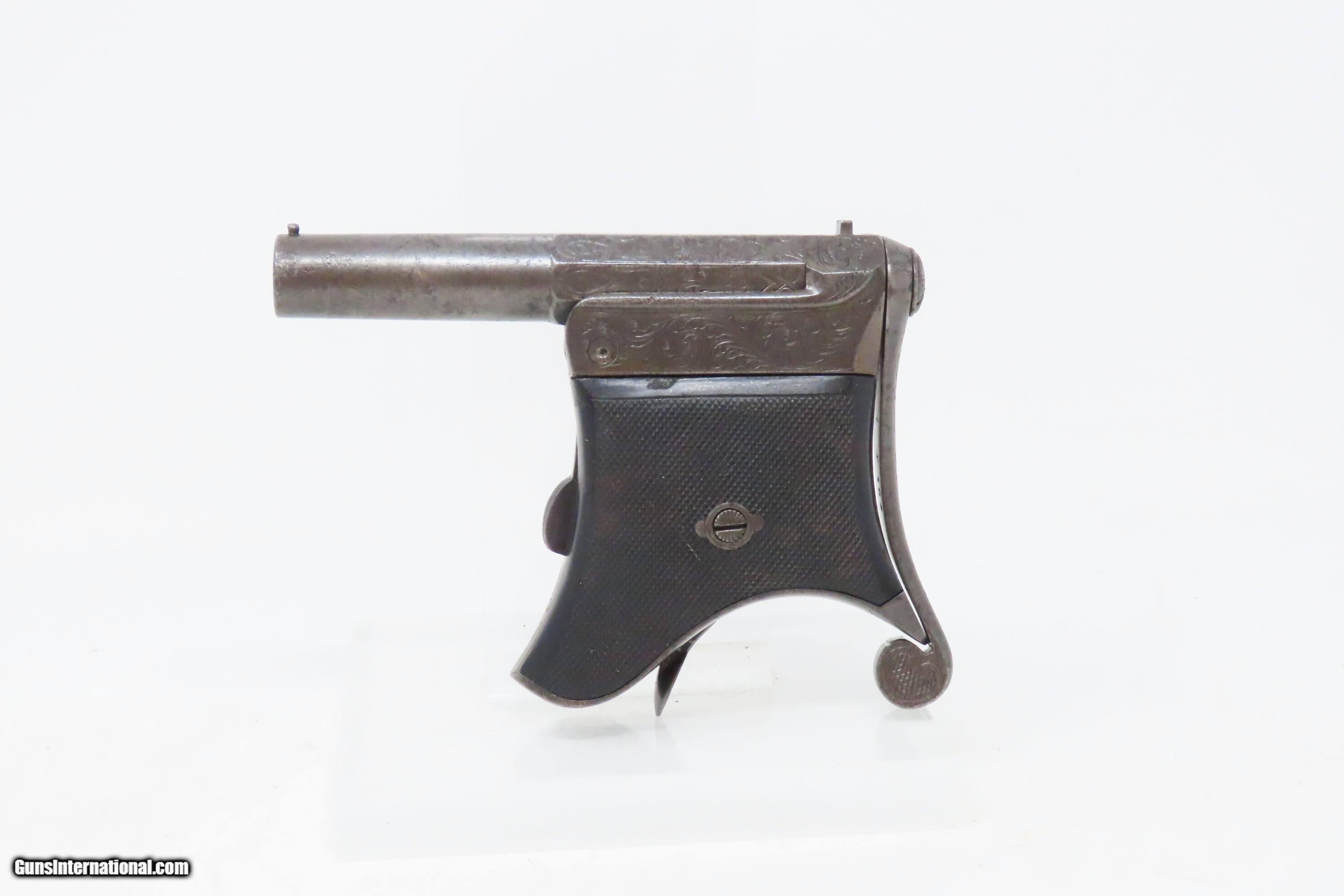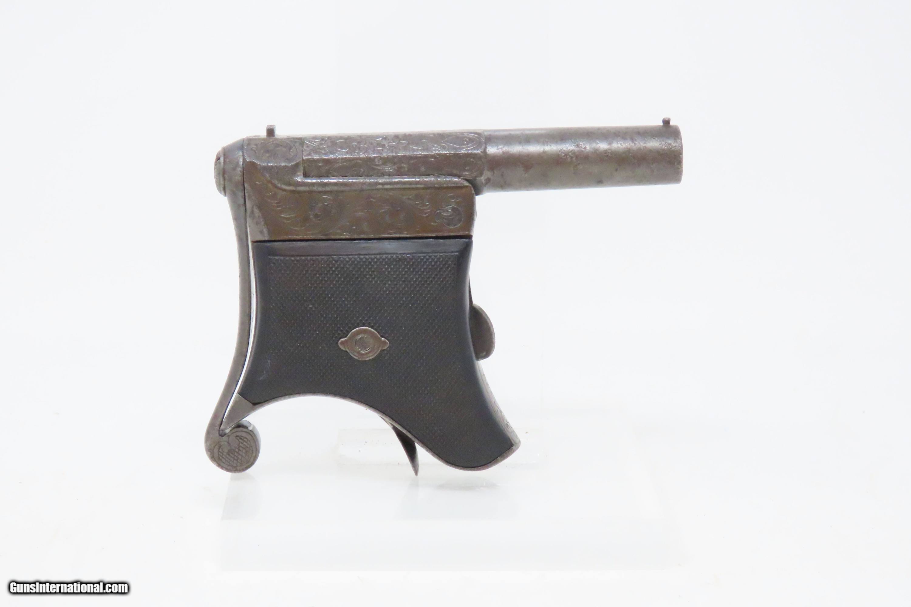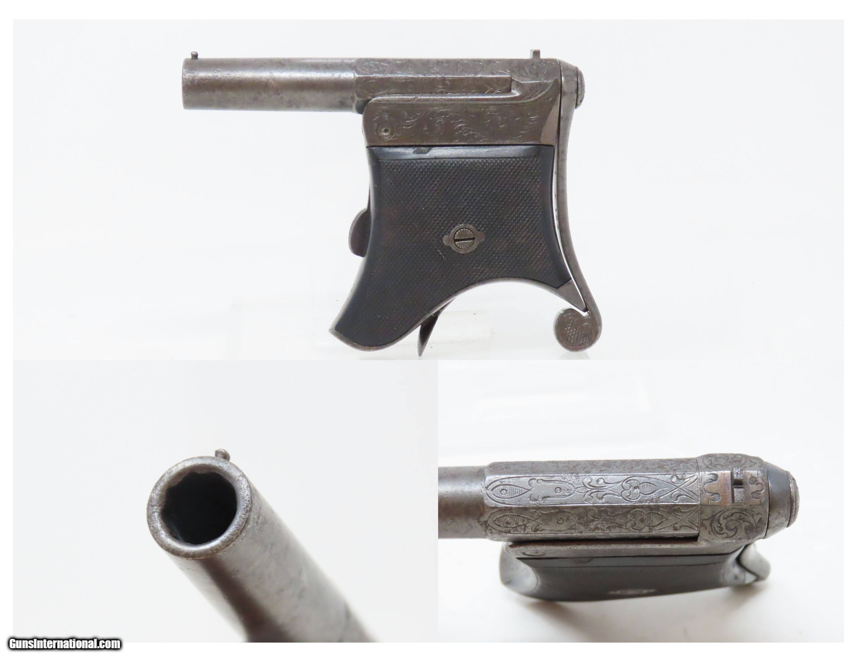 Antique ENGRAVED Single Shot LIEGE PROOFED .38 Rimfire Tip-Up POCKET Pistol Belgian Made Tip-Up Single Shot Pistol