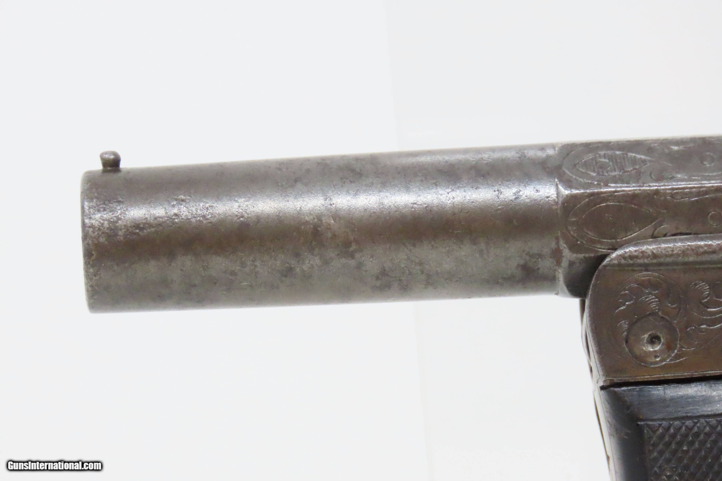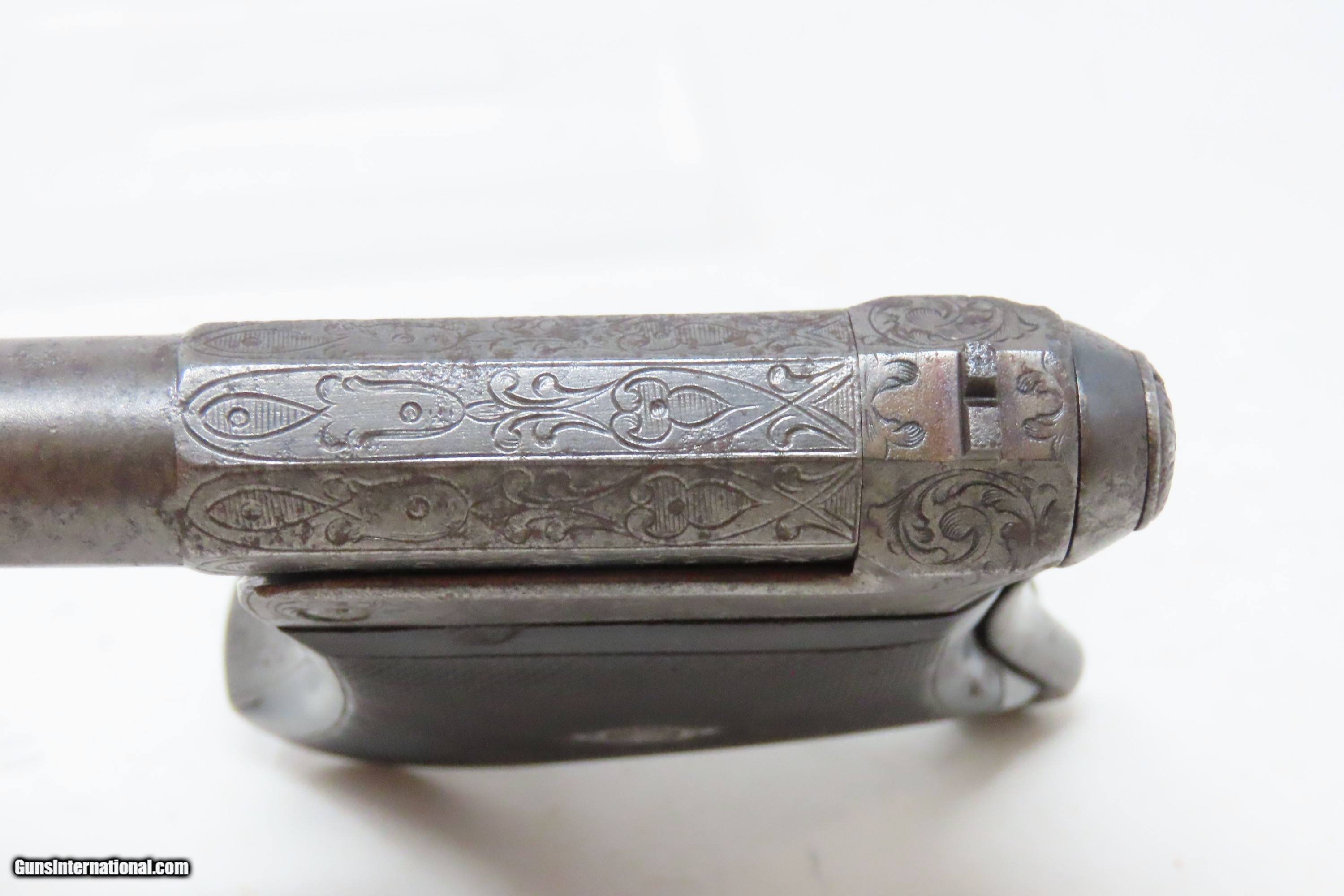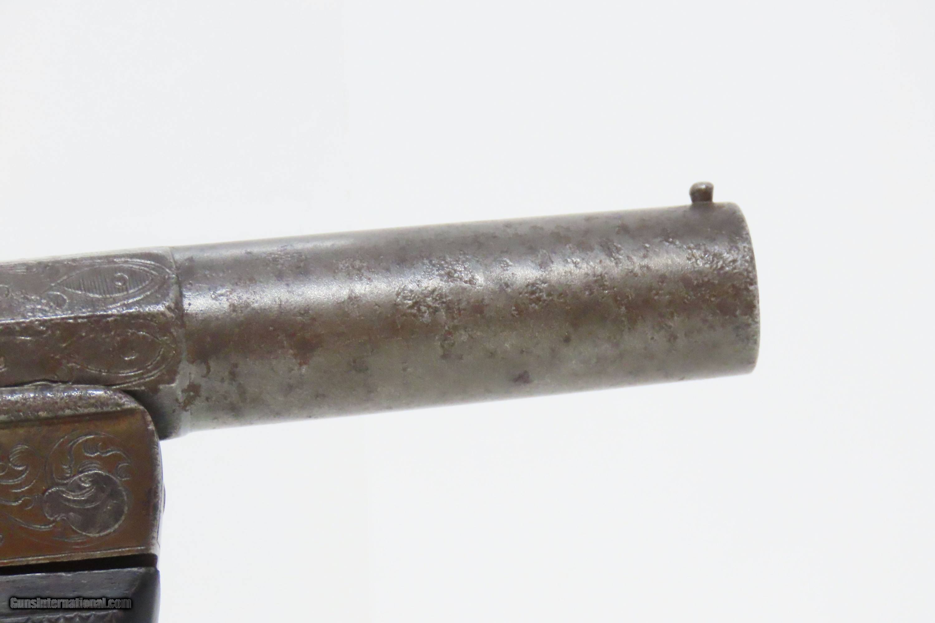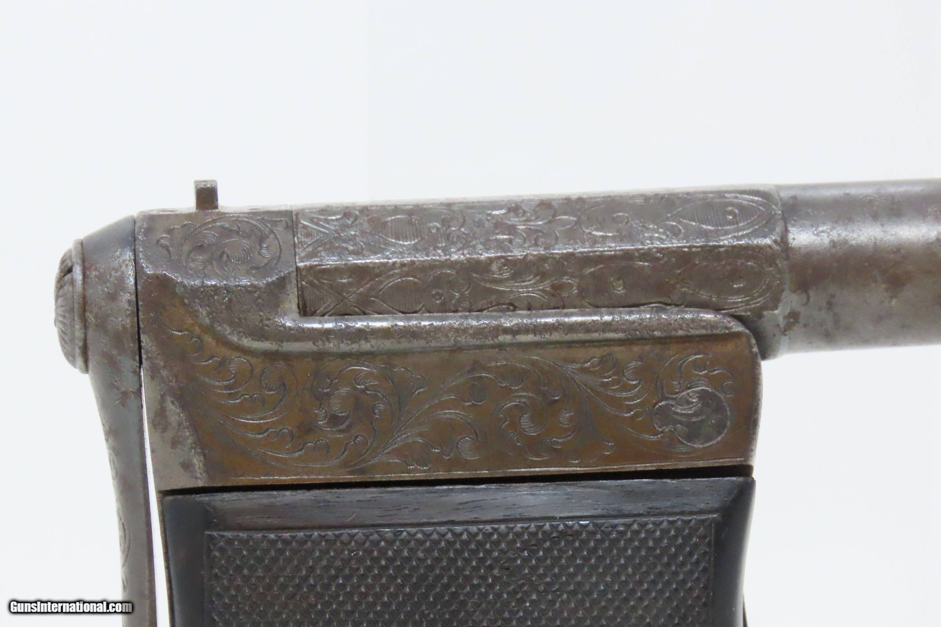 Antique ENGRAVED Single Shot LIEGE PROOFED .38 Rimfire Tip-Up POCKET Pistol Belgian Made Tip-Up Single Shot Pistol