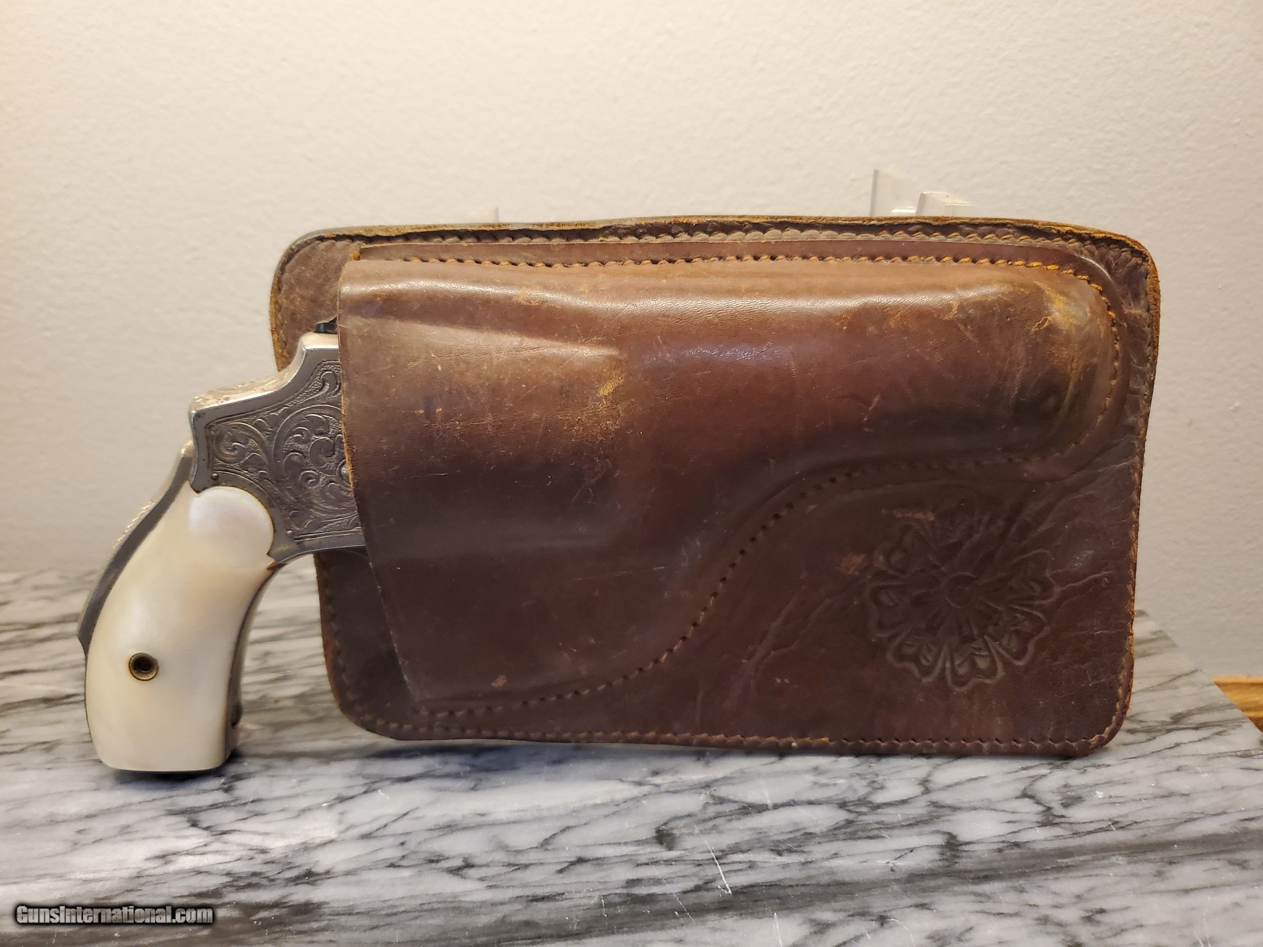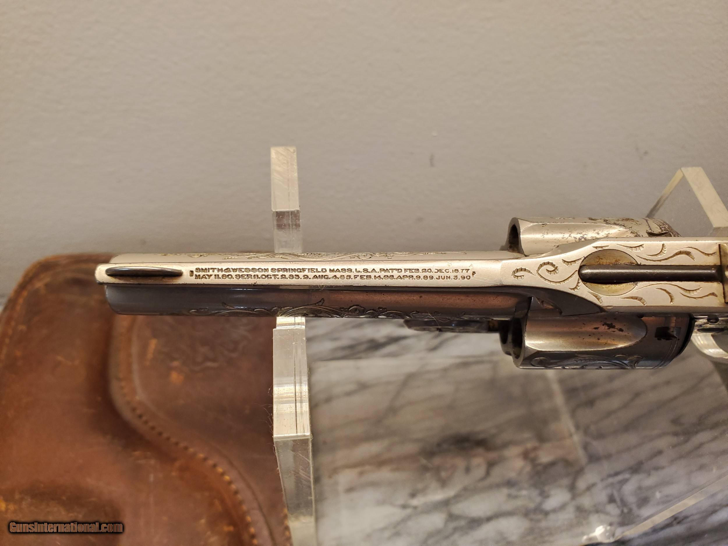 Description: AntiqueSmith and Wesson 3rd model safety hammerless manufactured between 1890 and 1898, I believe this was new york engraved by one of the smith and Wesson distributors in the 1890s. It is beautifully engraved, with outstanding original mother of pearl grips. Come with a lovely period hideaway holster. Condition, excellent displaying 95% original finish, grips are excellent and fit perfectly. THIS ANTIQUE REVOLVER IS FROM MY PERSONAL ENGRAVED HANDGUN COLLECTION. WHAT A GREAT GROUP WITH HOLSTER. SOLD Antique: Yes Manufacturer: Smith Wesson Model: 3RD MODEL SAFETY HAMMERLESS Serial Number: 63661 Bore Condition: VERY GOOD Action: DOUBLE |