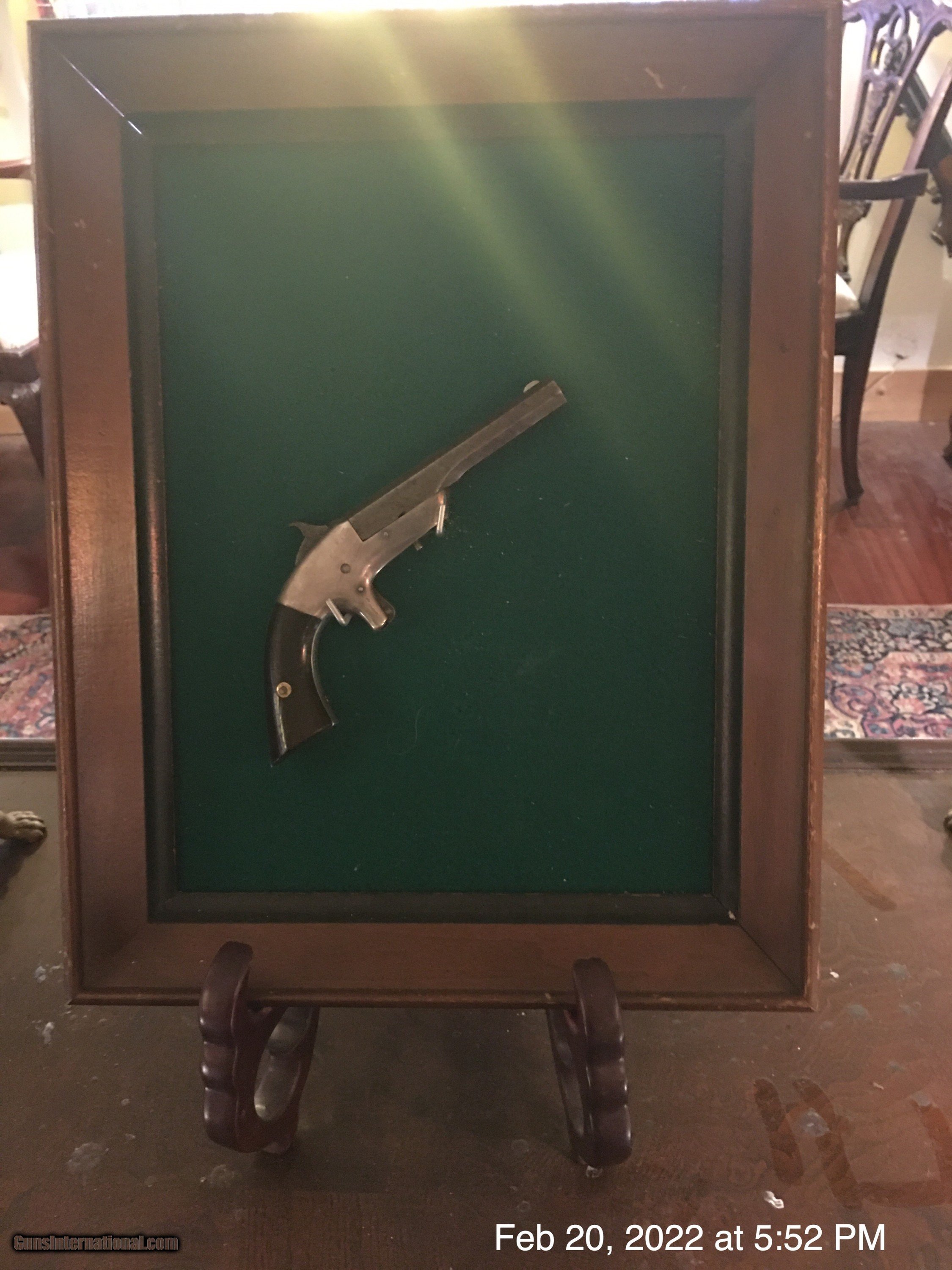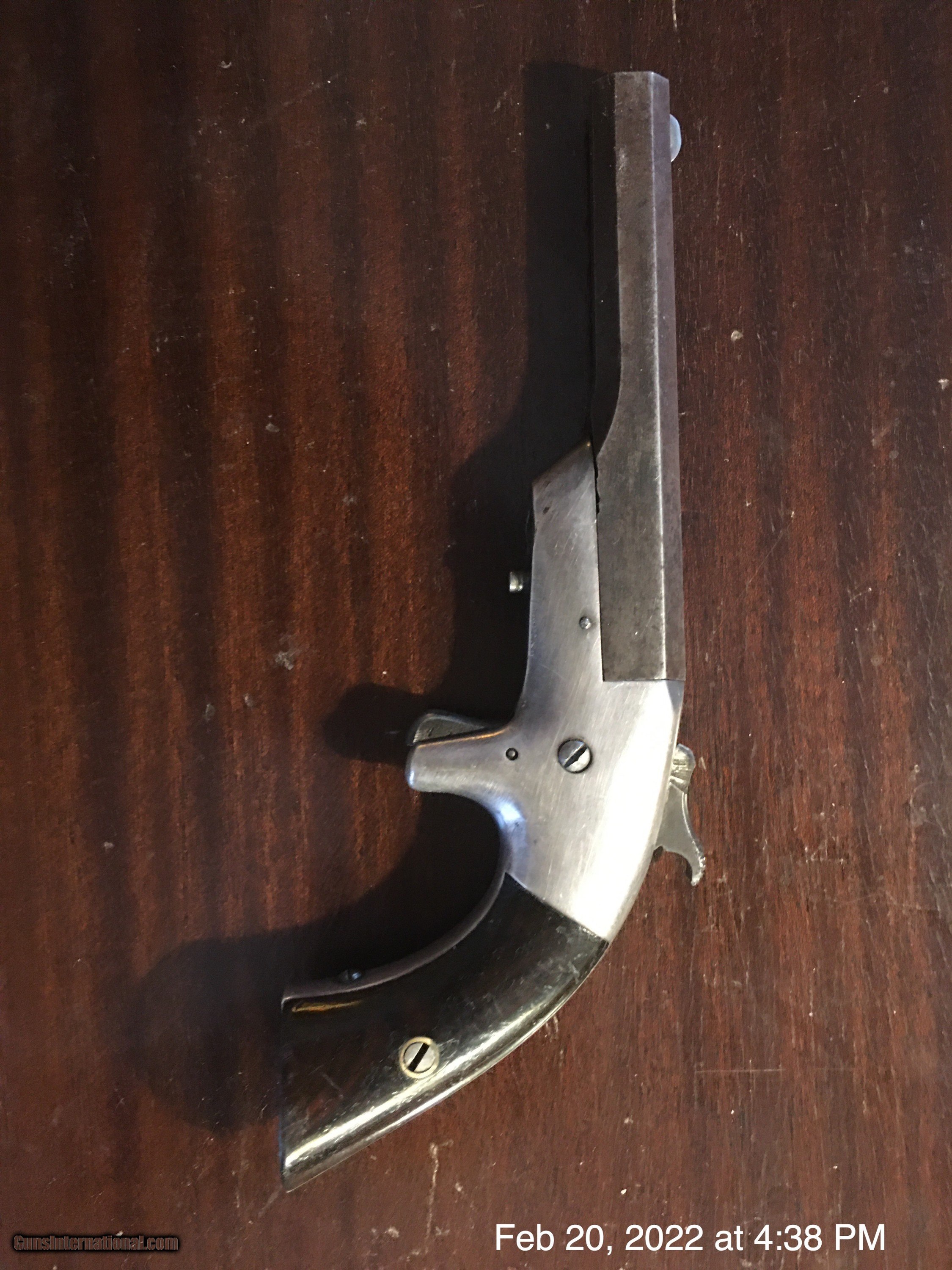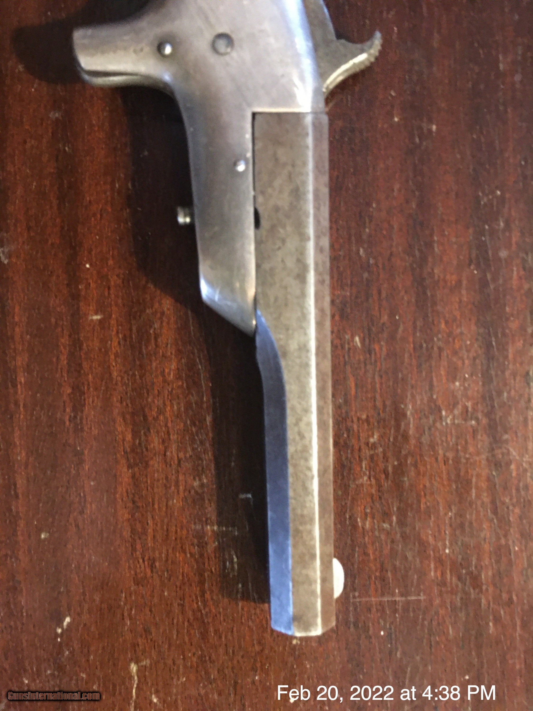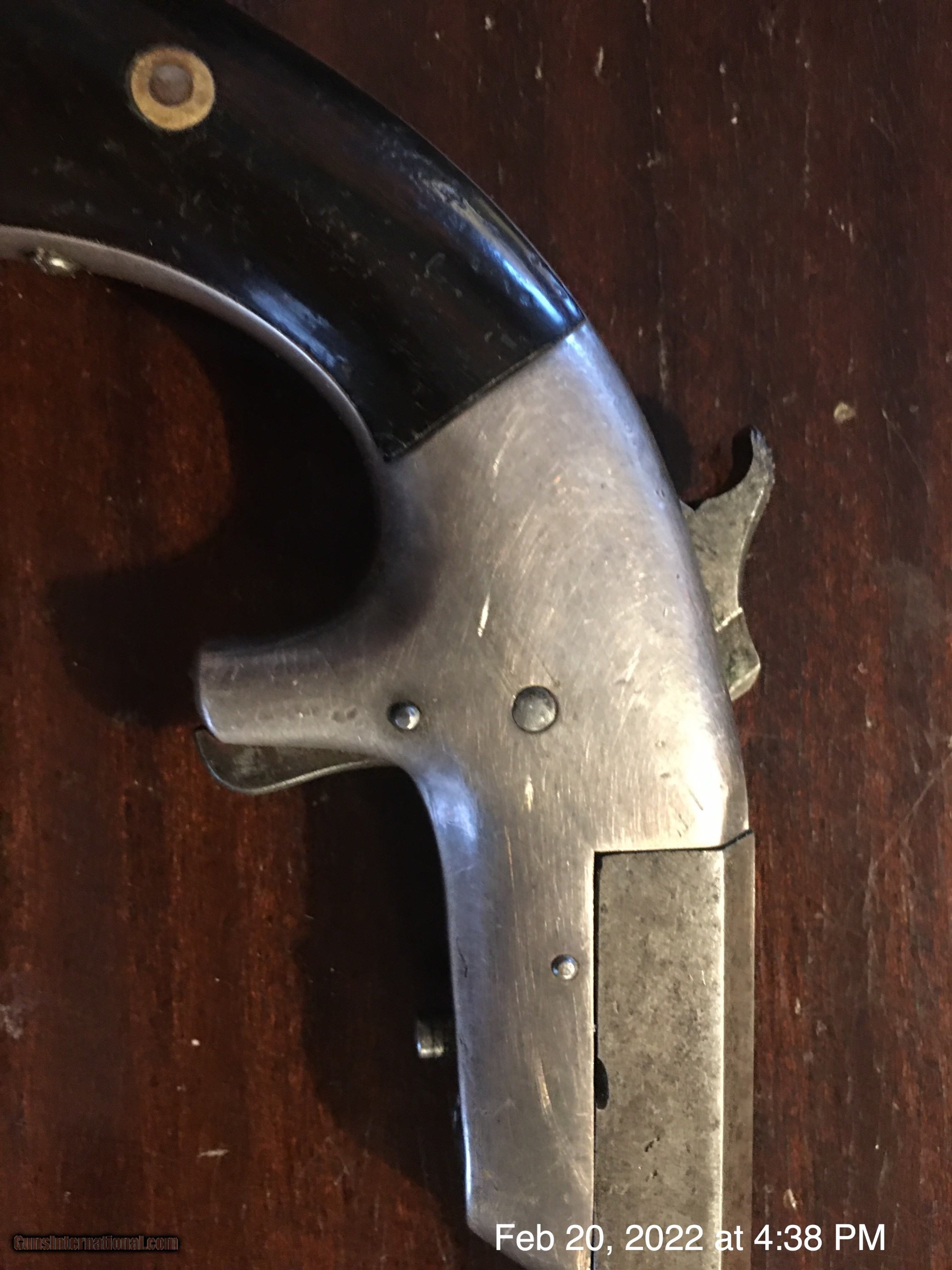 Description: This is a Merwin & Bray single Shot .30 rim fire black powder pistol. Likely made by Bacon as the quality is very good, as is the condition. 4 inch swing out barrel. Excellent grips. Excellent original nickel finish. Looks fantastic mounted in a small frame with felt backing. Frame shown in photos is not included. This is the lowest cost antique pistol in fine condition on all of gunsinternational. Prices are going crazy and increase month by month. By summer the least expensive pistol on any gun site will likely be over $500. Antique guns are hedging inflation better than real estate or precious metals like gold or silver. Antique and can be shipped directly to any adult who may legally receive and possess such a pistol. Trades possible. Please email any questions or comments. Thank you. Shipping $9. SOLD Antique: Yes Handgun Caliber: .30 RF |