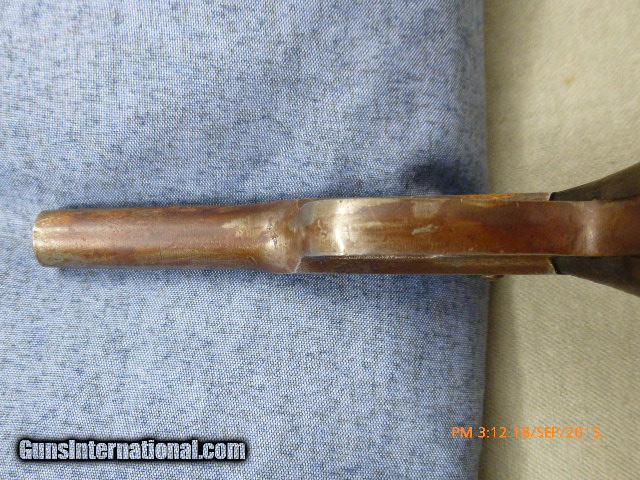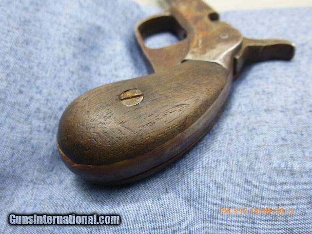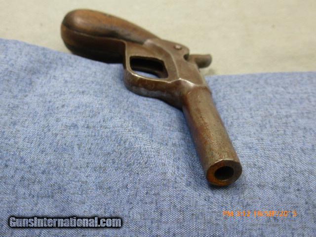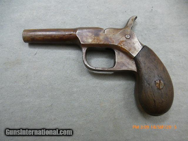 Description: Boss Single Shot Blank “Derringer” 15-86. Boss Single Shot Blank “Derringer” Invented by L. Holt & J. C. Marshall, Springfield Massachusetts. Manufactured by Dexter Smith (son of Horace Smith of S&W). Distributed by Buckland Brothers, wholesale jewelers of Springfield, c. 1870’s. Formerly believed to have been made by Hopkins & Allen. Quantity unknown; likely few hundred;quite scarce. Patented April 22, 1873. Although intended strictly as a 22 Rimfire blank noise-maker pistol, it does accept a 22 Short cartridge and likely would quite dangerous if fired as the barrel is a much larger smooth bore caliber. Extremely simple mechanism; hammer and trigger one-place. You pull the hammer back, load the blank, pull the trigger and let the hammer fall which detonates the blank, this one has “cocked” position. Nickname, with others of their type. “ Fourth of July pistol”. Irons frame made without trigger guard. 2-1/2” barrel marked on top Boss and on top of BBL PAT APR.22.73. (15-87) $300.00 I take Visa/Mastercard, add 3%. Allow two weeks for all checks, whether bank, personal or certified to clear. It is also possible to wire funds to my account for instant credit for a $20.00 wire charge. 3 day- no questions asked return period for refund of price paid for gun. Call or email with any questions or for more pictures. Guns are antique and should not be fired without examination by gunsmith. $40 shipping for long guns, $30 for hand guns to lower 48 states, about $50 to most European countries and $70 to Australia for antique handguns. We can generally get insurance if you want through shipper but coverage is limited. Notify me if you want it. You can send 20% down- balance in 90 days for installment payment plan. No refunds on installment plans. I have shipped to Norway (long gun w/fragile stock) see feedback, England (Winchester1876, Rem Dbl. Derr.), Northern Ireland, France, Australia and Sweden. Email if you are not U.S. for estimated shipping costs, payment methods, etc. I am always buying and trading for antique and collectible guns, Indian items, rare ammo,etc. Email what you have got for sale or trade. SOLD Antique: Yes |