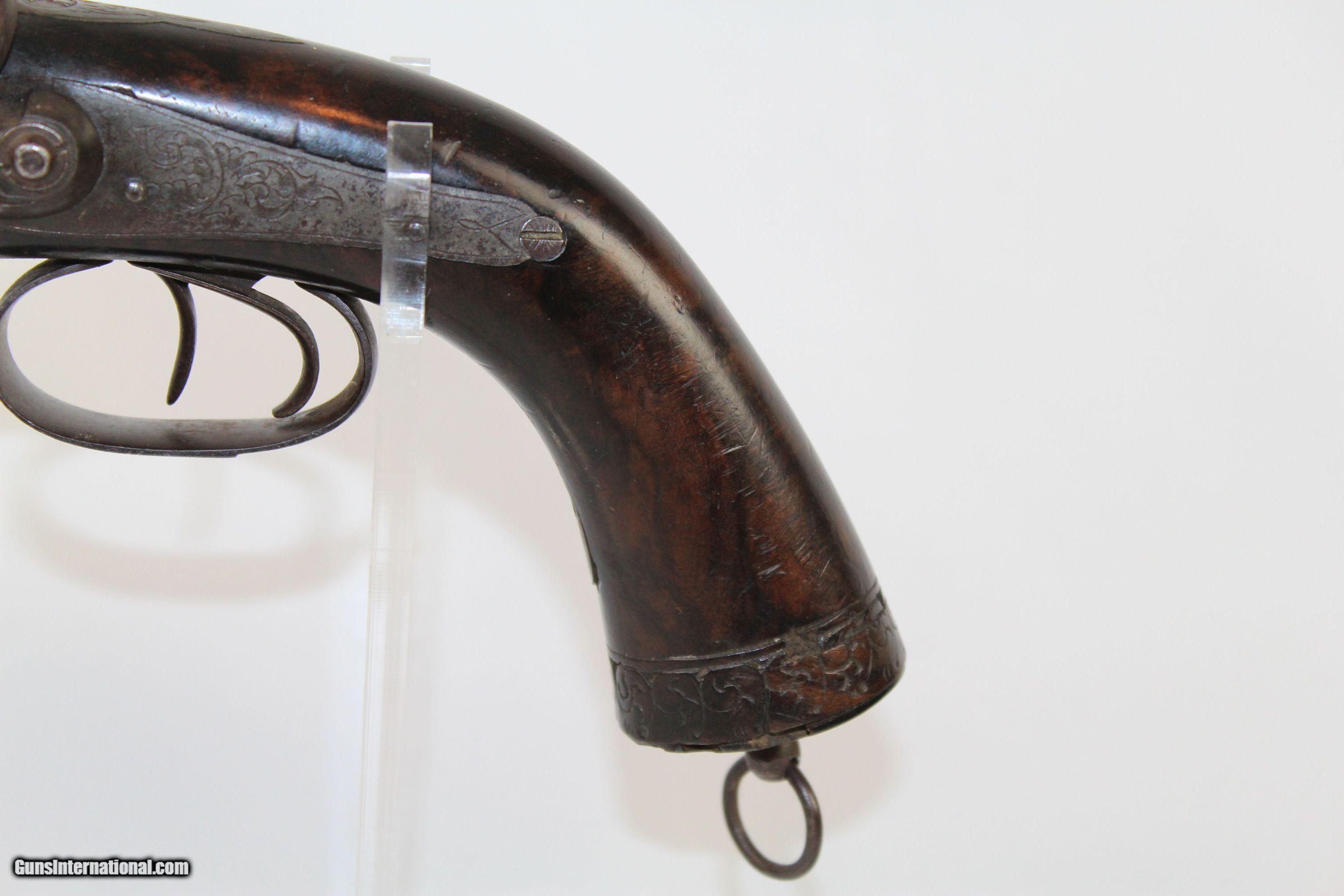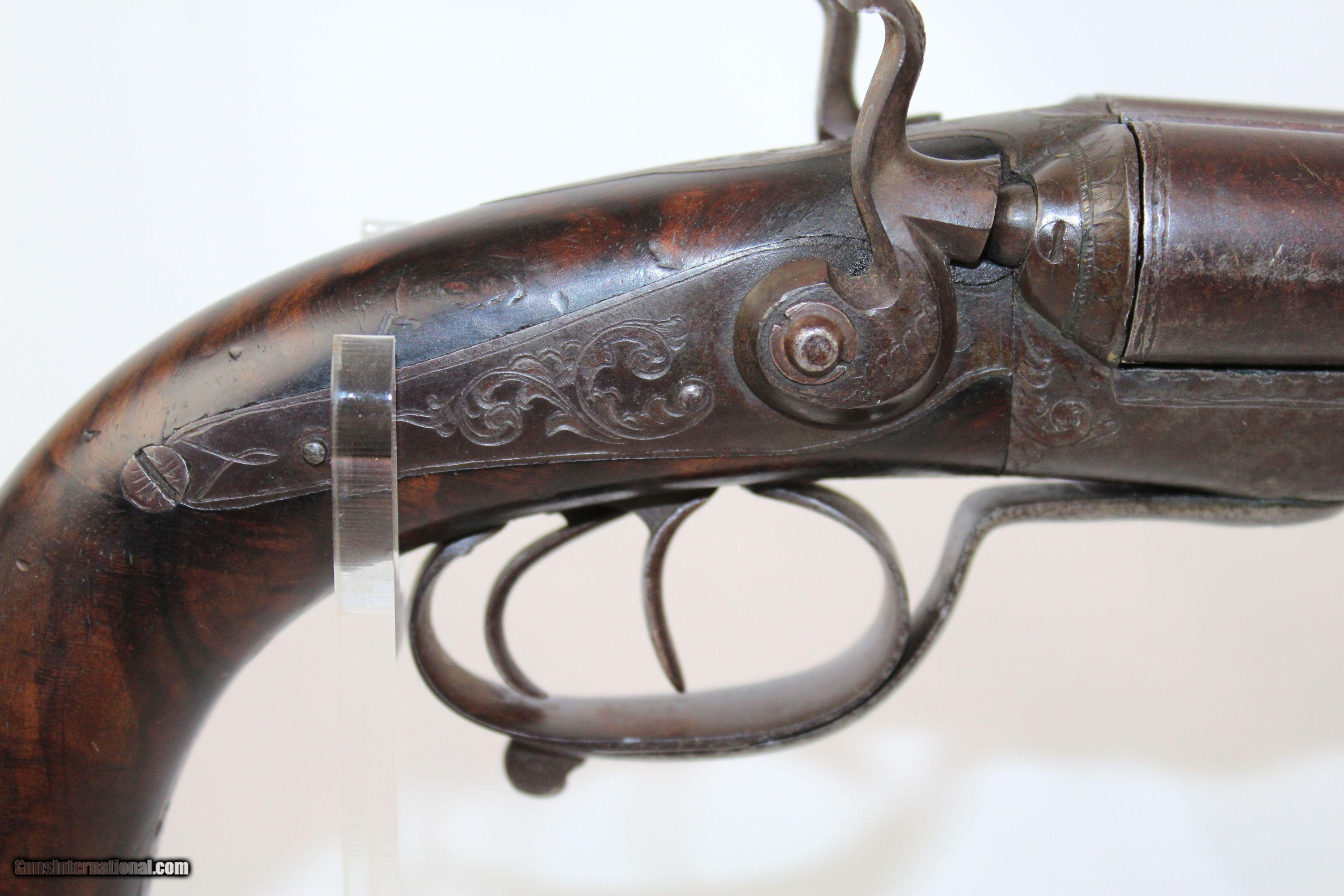BRITISH Indian ENGRAVED Antique SxS HOWDAH Pistol