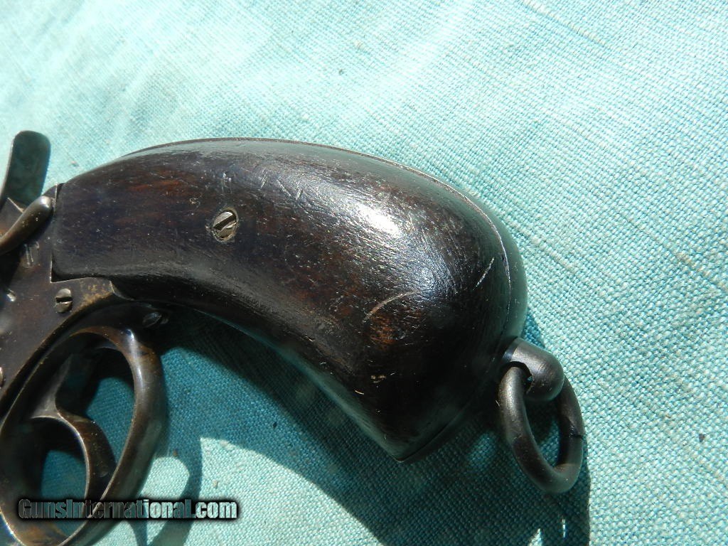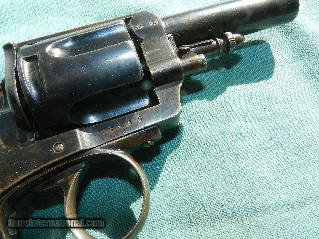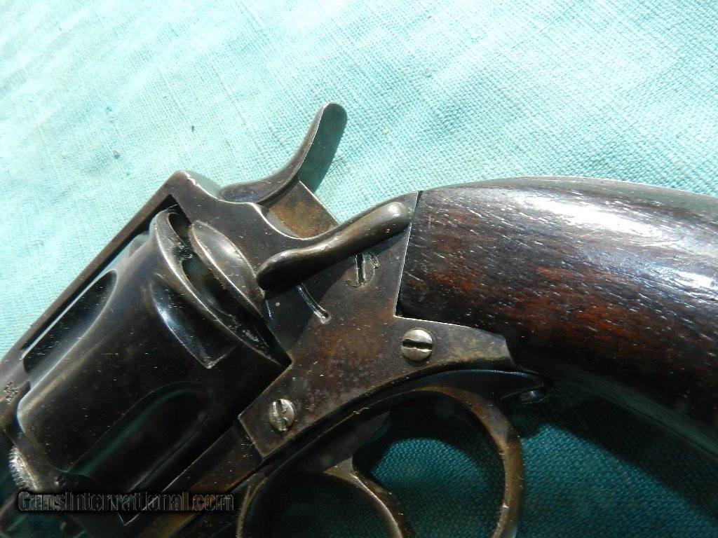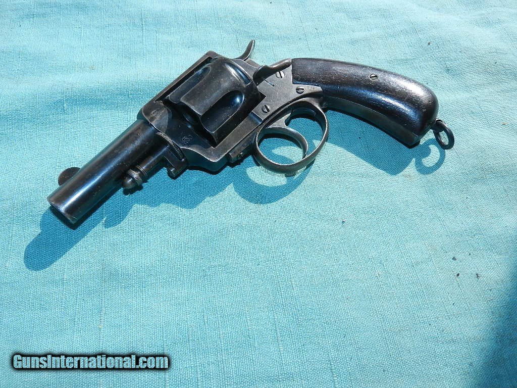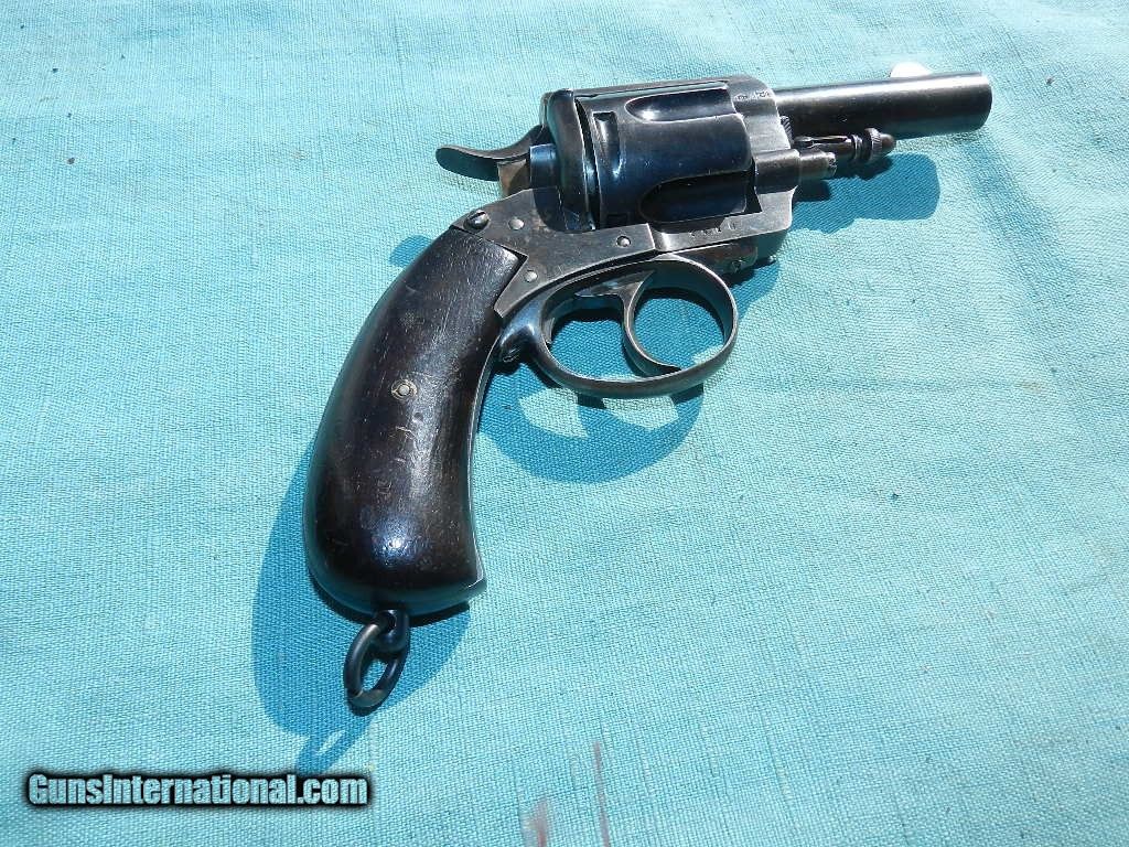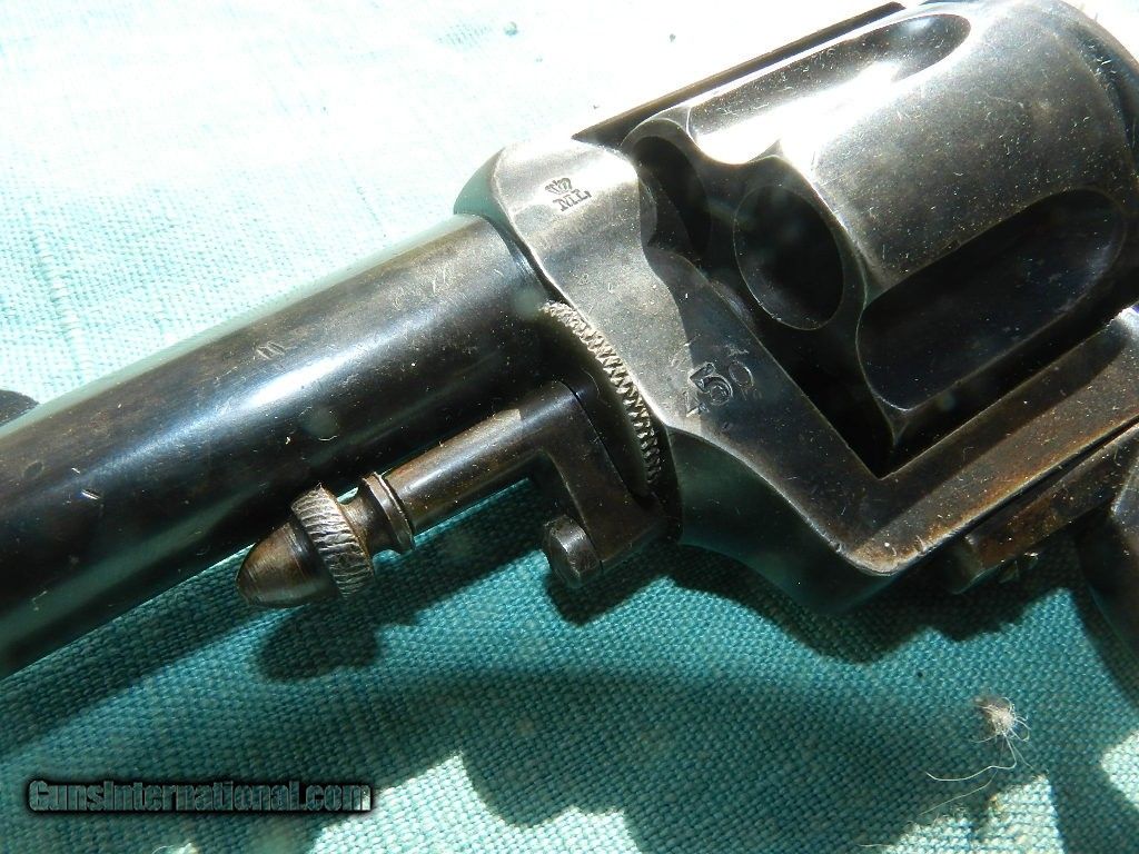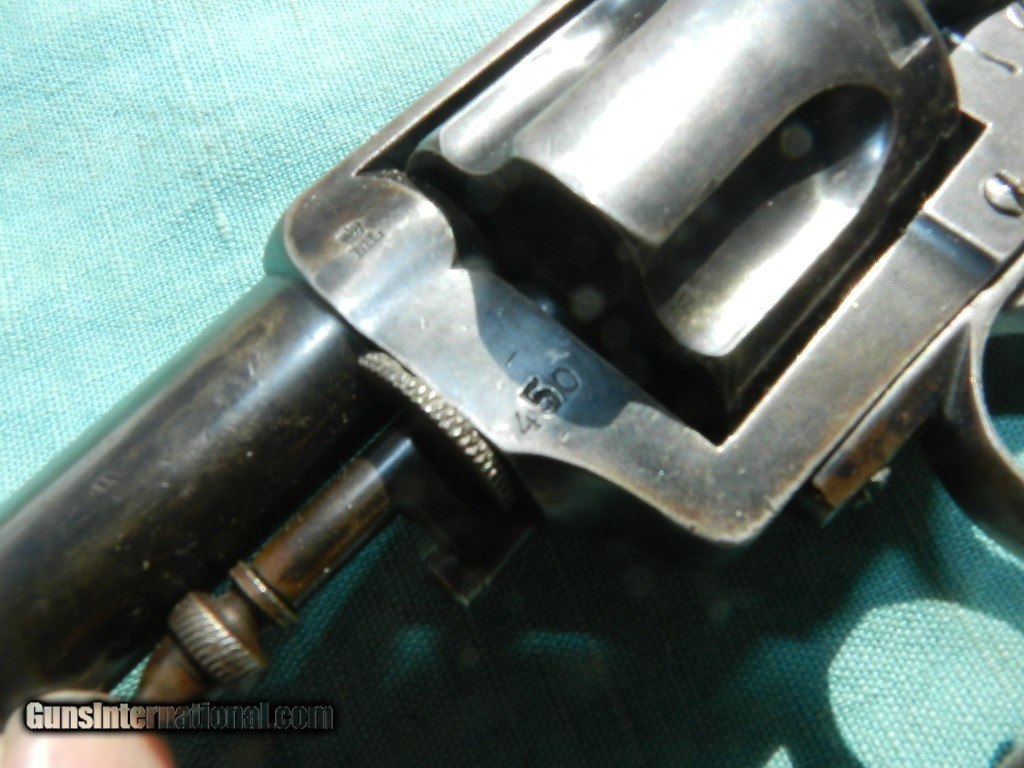 Description: A clean working bulldog .450 cal revolver with a rounf 2 3/4" barrel, and a clea rifled bore. Action works well on both SA ad DA. The smooth grips are black walnut and are very good with the exterior metal abou 90% armory blue with wear to high points.HAs .450 stamed on the left side, and a crown over ML on the left, and crown over R for Leige maker proof. About all the British Bulldogs and other European countries came from Belgium, as found in the definitive book : The British Bulldog Revolver by Geoge Layman with one of my former fine guns on the cover photo.Made fampus by the movies of Sherlock Holmes, these were often used by the Irish Constabulary. This fine gun has the lanyard loop also. A very strong revolver that I'm sure could tell some stories! Will nor ship to some locations, please ask. When buying a gun always have it examined by a competent gunsmith before shooting. To buy a gun from me you must get a direct email for me, with details, and shipping cost. We don’t have a web site .I prefer money orders or a check. Item ships when funds come in. I try to keep guns affordable, which means I make less money than most dealers. You won’t get altitude sickness, or nose bleed, with my prices! I consistently have the best selection of older guns If you attempt to buy, you must still contact us for details . Best to email to buy. Sometimes a local person can stop buy and purchase before the gun is removed. Sometimes not home to get calls. Some guns are required shipment to a gun dealer near you for a transfer to you when it arrives. Otherwise many older or black powder guns ship to your door. With the widest selection of older guns at great prices, We don’t have a store, and sell on the internet only. I’m easy to get along with. Thank You SOLD |