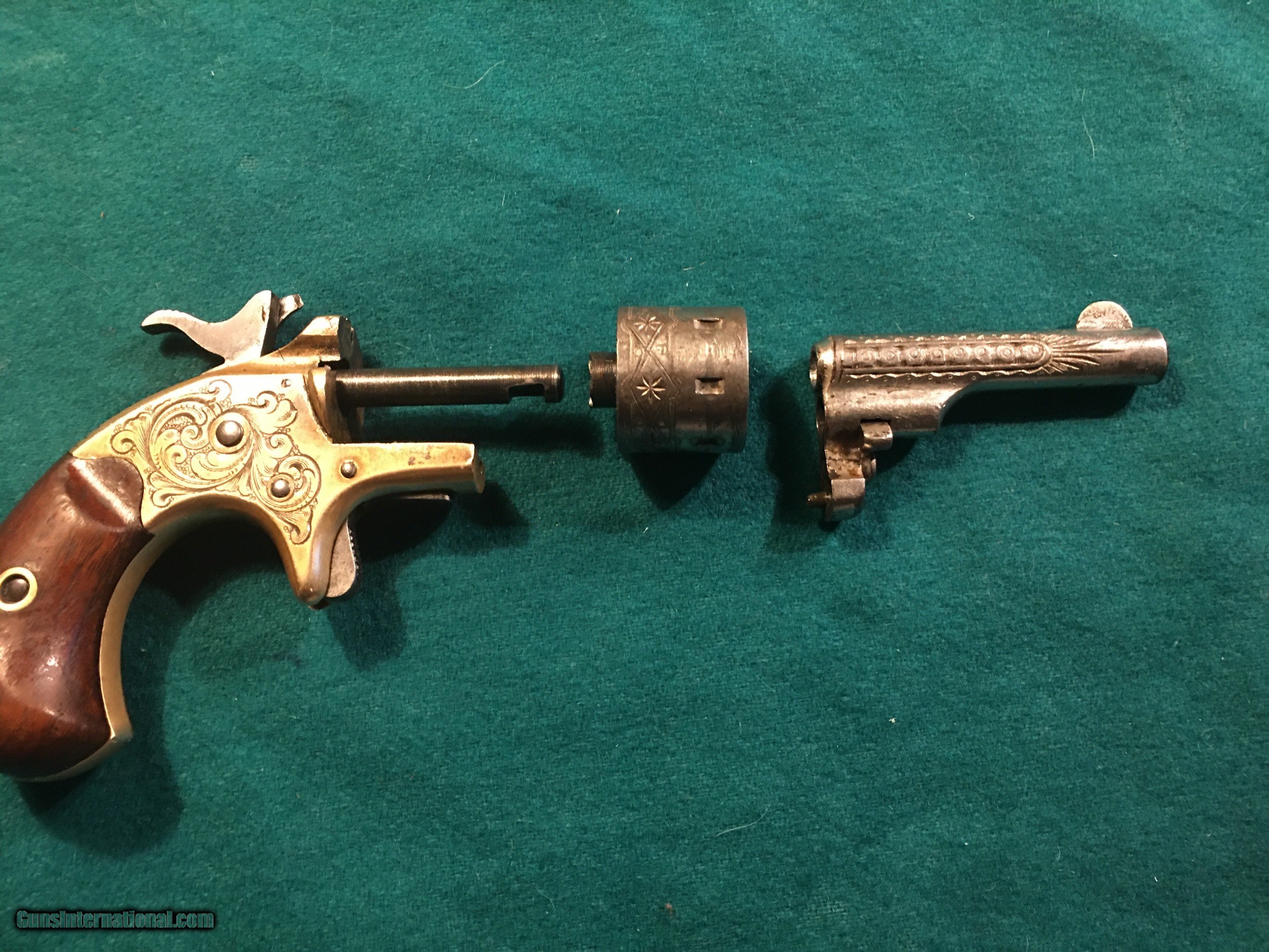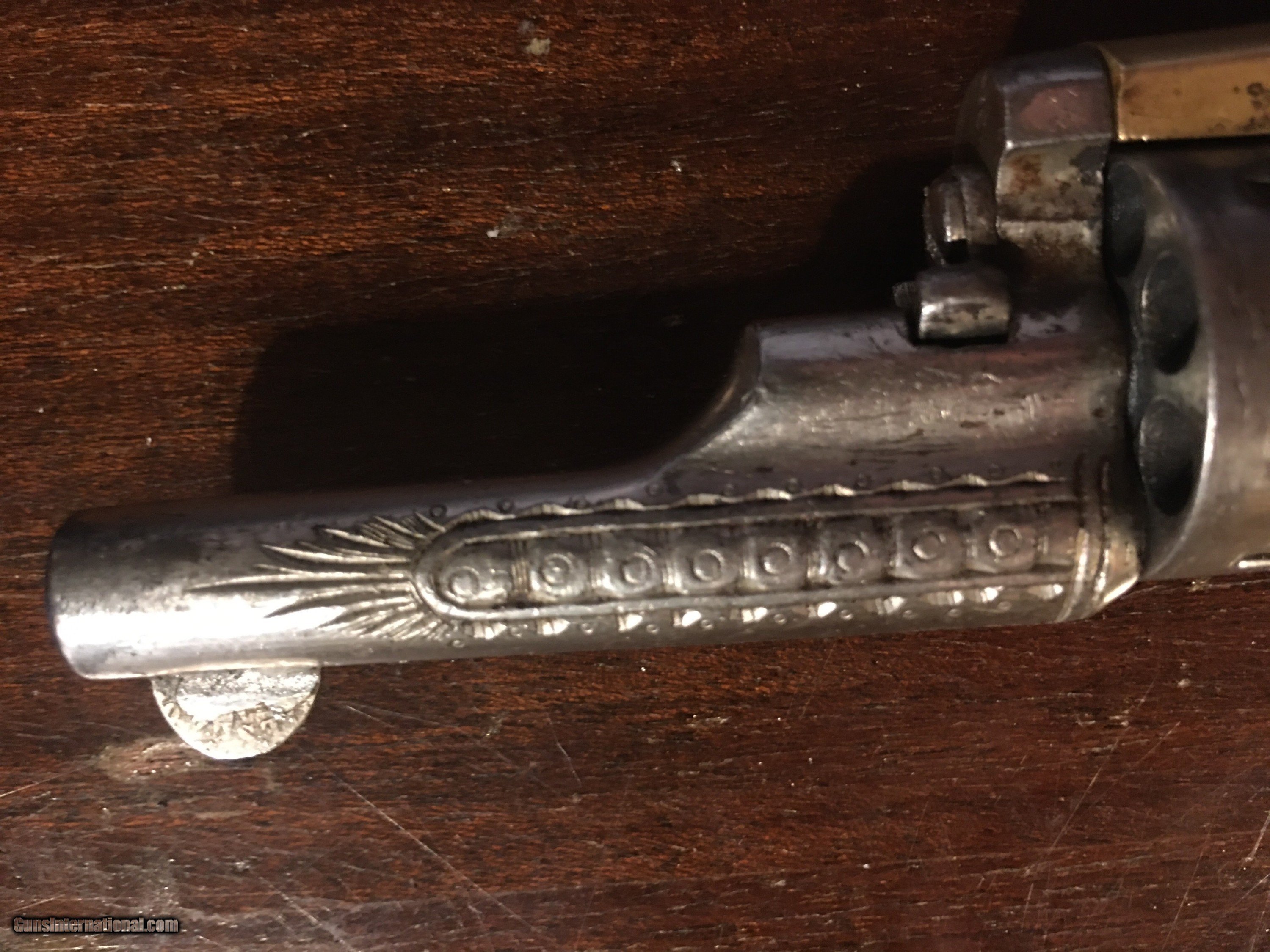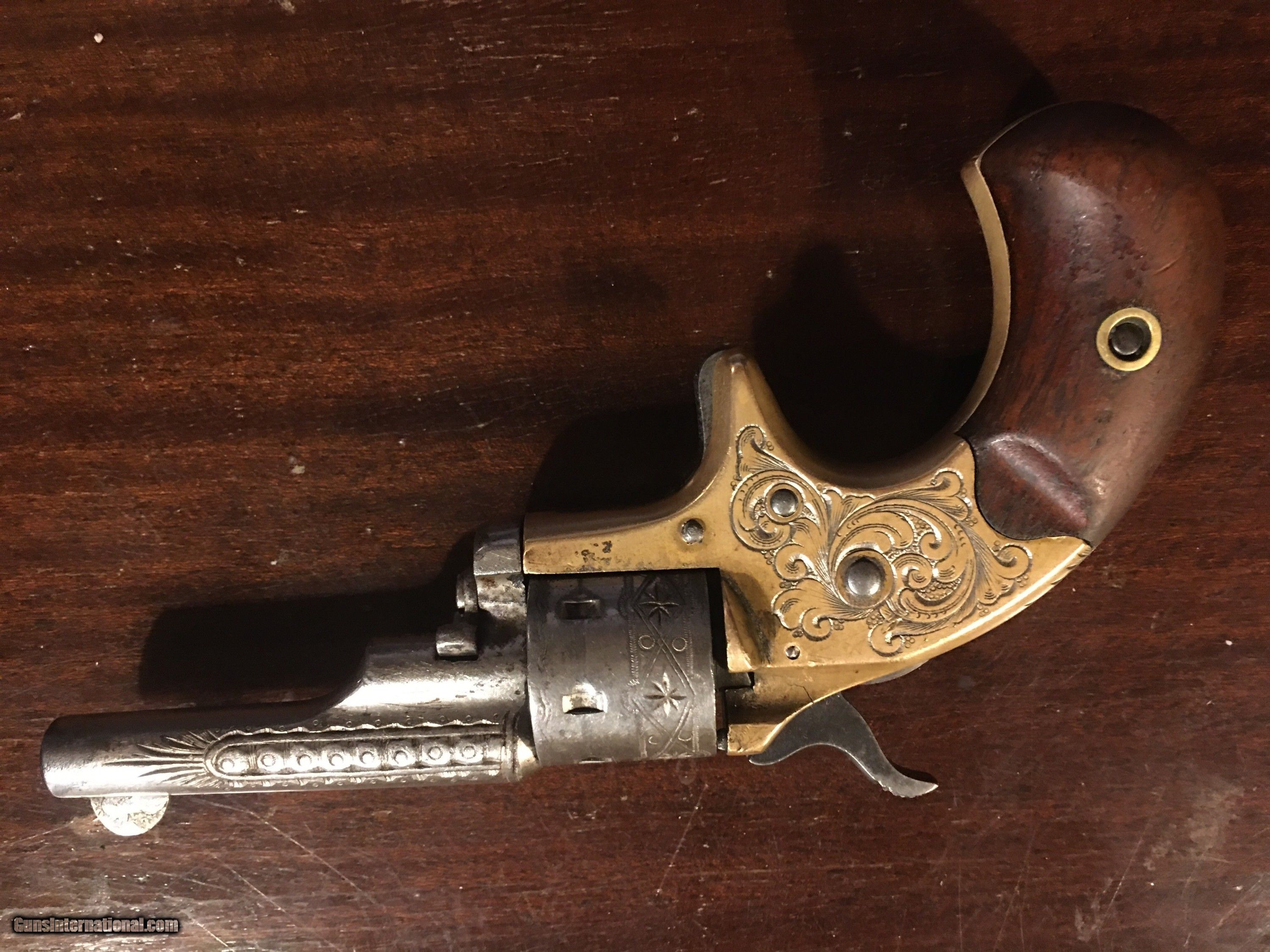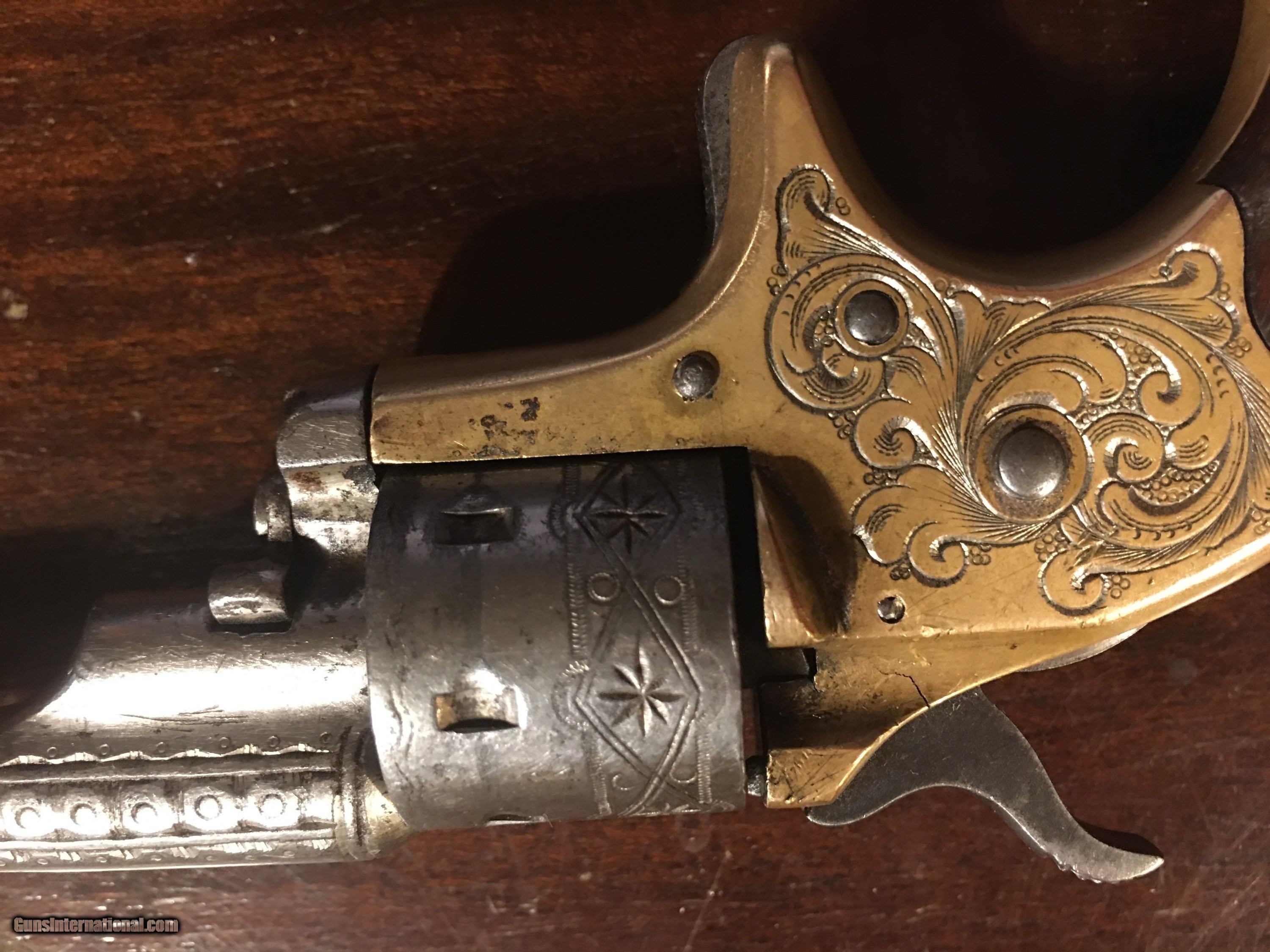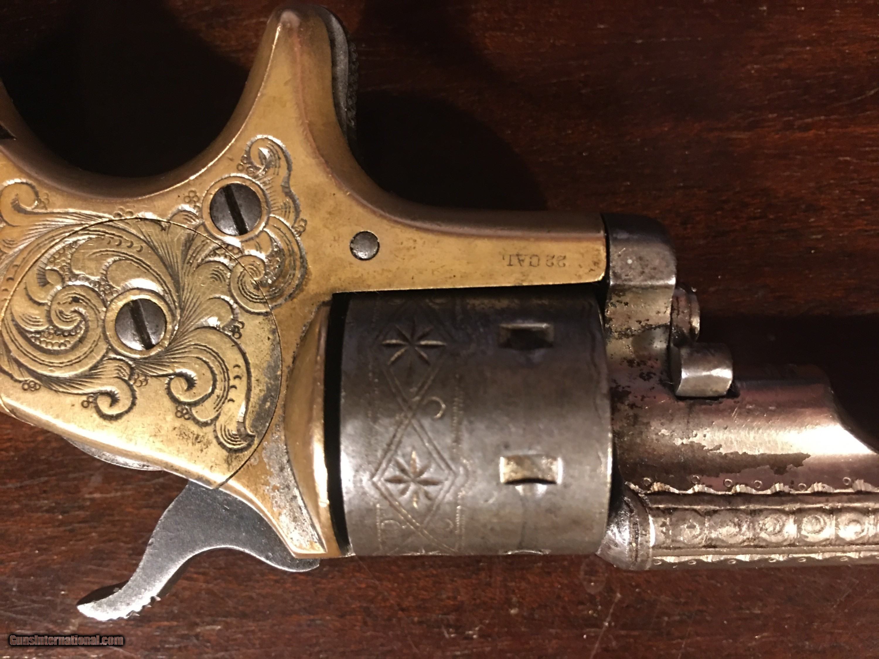 Description: This is a fine example of .22 Colt Open Top pistol from the post Civil War era. It is in sound condition and exceptionally attractive. The author of the definitive book on Colt Open Top .22’s, Robert Swartz, and an expert on antiquarian engraving, contacted me after seeing this gun the day it was listed. He indicated that the engraving was done by Nimschke, and he included a descriptive photo of Nimschke’s work as a reference. Mr. Swartz’s book, now in its second printing, is called Colt’s Firearms At The Brink, and is a fascinating and surprising reference work on the Colt Open Top .22, the smallest, yet one of the most important guns Colt ever made. His email is discovercolt. This is a rather excellent black powder Colt 1871 Open Top .22rf short revolver. In the Hartley & Graham Factory engraved order of 1888. Very solid and very clean over all. Serial #71306. Grips in excellent condition. An extremely good looking pistol and an important part of the Colt line up following the Civil War. As nice as ever seen! Please email any questions! Buyer stipulates that he is over 21 and that it is legal to acquire and own this antique weapon in his jurisdiction. Not for sale to California. If you have a collection of engraved pistols or want to start a collection right at the top, this is an excellent candidate. Please send any offers. Possible trades for other early cartridge pistols. SOLD Antique: Yes Handgun Caliber: .17 HMR, 5mm Clement, 5.5mm Velo Dog, .22 CB, .22 Reed Express, .22 Remington Jet (.22 Jet, .22 Centerfire Magnum), 5.56x45mm NATO Manufacturer: Colt Model: 1871 Open Top .22 Chambers: 7 Condition: Excellent Action: Single Manufacture Date: 1870-1888 Engraving: Full Nimschke Engraving |