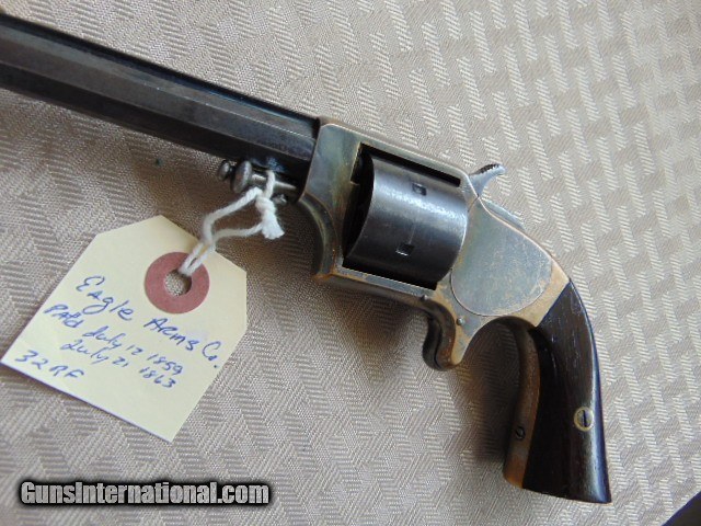 Description: EAGLE ARMS CO. NEW YORK . CIVIL WAR ERA PAT'D DATE JULY 12, 1859. JULY 21, 1863. CALIBER 32RF. 3 1/2" OCTAGON BARREL . TIGHT ACTION THAT FUNCTIONS AND WORKS FINE, ORIGINAL BLUE FINISH ON THE BARREL , NICKEL OVER BRASS ON THE FRAME , VERY NICE ROSEWOOD GRIP PANELS. ADD 35.00 UPS 2ND DAY AIR SHIPPING EASTERN BRANCH FIREARMS Questions e-mail or call Glen at Eastern Branch Firearms 207-215-5021 TERMS – PLEASE READ BEFORE I DO NOT HAVE A LAYAWAY OPTION ( WE ACCEPT ALL MAJOR CREDIT CARDS ) -- I GET ALOT OF REQUEST FOR TRADES, I WOULD PERFER NOT TO DO TRADES ON MY INTERNET LISTINGS. LEGAL REQUIREMENT- Modern firearms must be transferred through a licensed FFL dealer in your area. to supply a signed copy of local dealer’s license before shipment will be made. A C&R License is acceptable for C&R firearms only (guns determined to be C&R’s by ATF and guns known to be at least 50 years old). California law will NOT allow shipment of C&R handguns direct to a C&R holder in the State of California, a 01 FFL LIC. dealer must be used. Antique firearms require to supply proof of age. Some areas still require an FFL transfer for antique & black powder firearms (New Jersey, NYC, etc.) Large capacity magazine restrictions: New Jersey - 15 round maximum for semi-automatic firearms only. California - 10 round maximum for all magazines. Maryland - 20 round maximum for all magazines. Massachusetts - over 10 rounds. Hawaii - 10 round maximum for all handgun magazines. PAYMENT OPTIONS- We accept money orders, cashier’s checks , bank checks. sorry no personal checks. We accept all major credit cards please add 3% to the ’s cash discount price .Handguns and long guns do need to be shipped separate. PLEASE do not send payment via FED EX . USPS & UPS are fine. Thank you. We include a signed copy of our FFL with each firearm shipped. AMMO •WARNING: Buyer must be over the age of 21 with proof of age to purchase. All state, local and federal laws apply. Please do notif you are prohibited from buying this item in your area. No ammunition will ship to prohibited areas such as the cities of Los Angeles, Oakland and San Francisco. No Shipments to Massachusetts, New York City or Washington D.C. No Shipments to Chicago, IL residents must provide a FOID card. We cannot ship to Alaska or Hawaii. If you are a resident of one of these areas please do not bid. Thank you. SAFTY NOTICE- Buyer is solely responsible for determining that a used gun is safe to shoot. The firearms offered have not been test fired but have been given a visual inspection only for purposes. It is a requirement that every used firearm is inspected by a qualified gunsmith before firing. By , the buyer agrees to hold seller harmless against damages, injury, or death caused by defective merchandise. RETURN POLICY- All firearms come with a 3-day non firing , non messing with ( turning srews ,taking apart,removing parts, scoping. firing, cleaning or messing with in anyway) inspection/return privilege.Inspection is based on a visual review of the gun to confirm the gun is in the condition stated. In the case of a return, buyer pays all shipping charges & if paid for with a credit card buyer absorbs the 3% credit card charges . So please ask questions BEFORE you bid. In the event that the site goes down within 12 hours of the end of the , We reserve the right to relist the item. Thanks for Looking and Good Luck!! U.S. sales only, no exports…this includes antiques. I will ship to third party for exporting- SOLD Antique: Yes Handgun Caliber: .32 Rimfire |