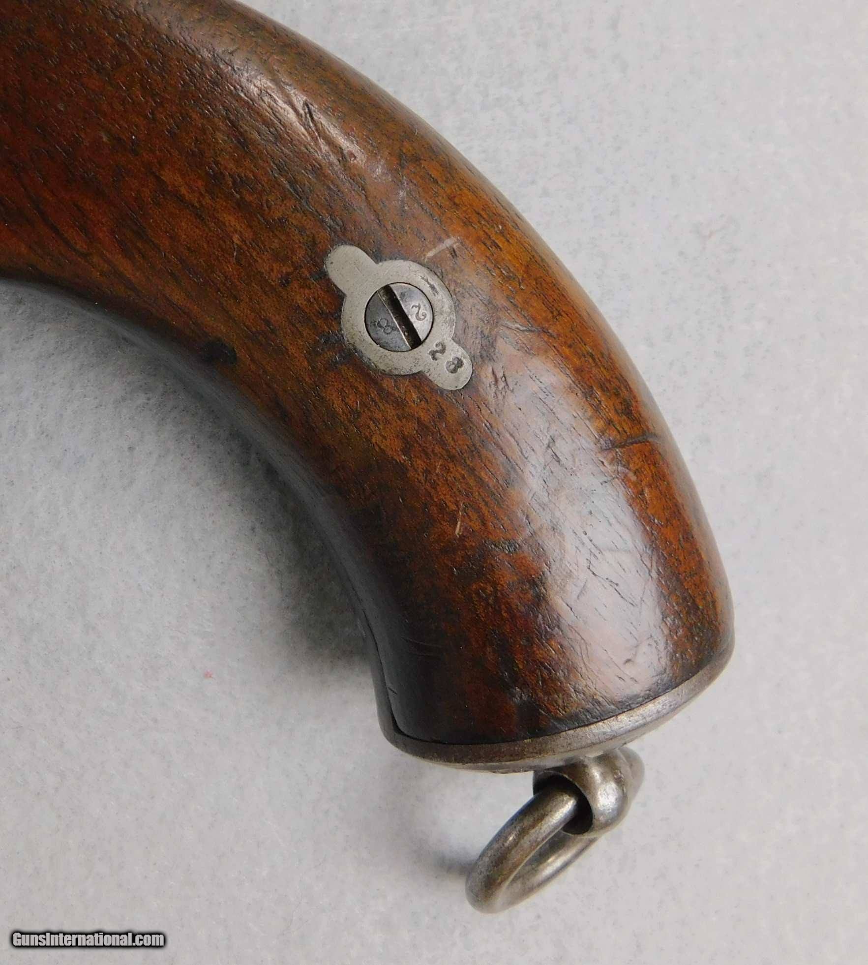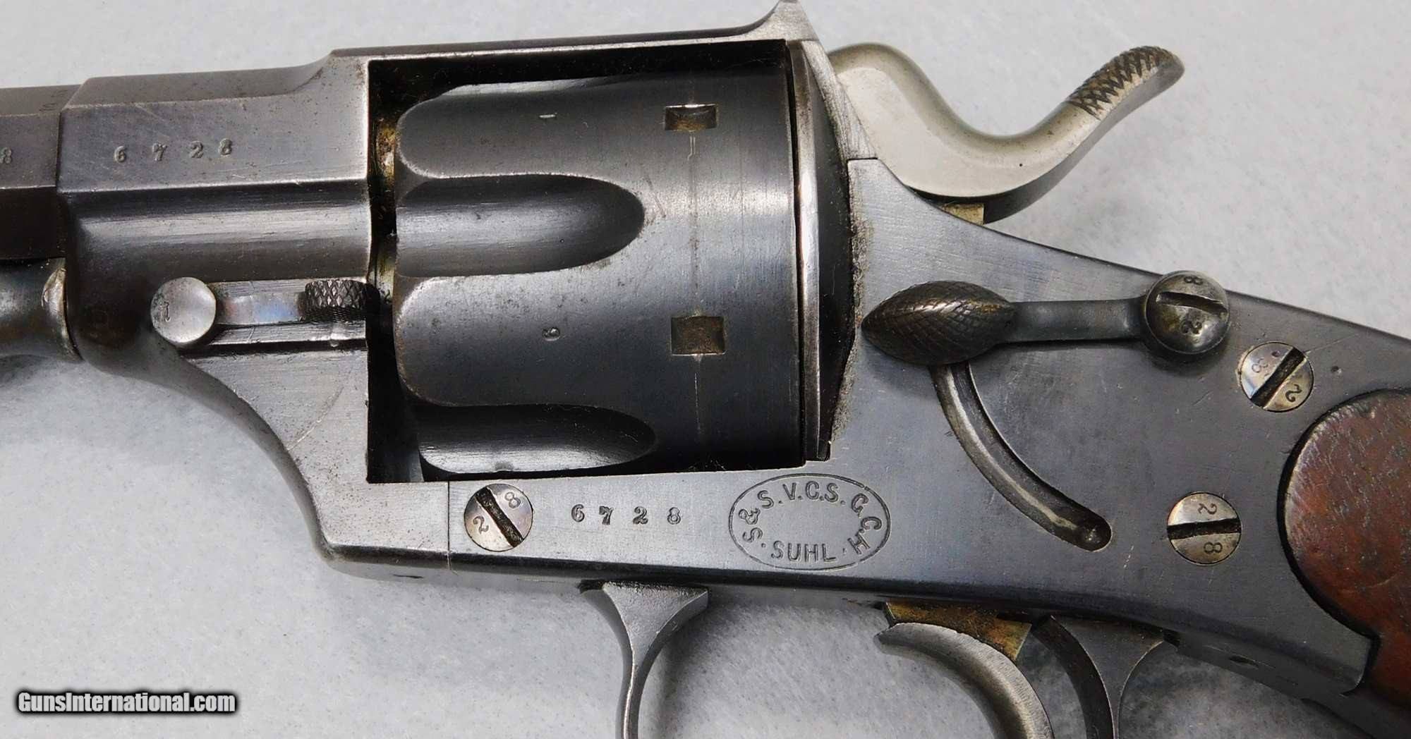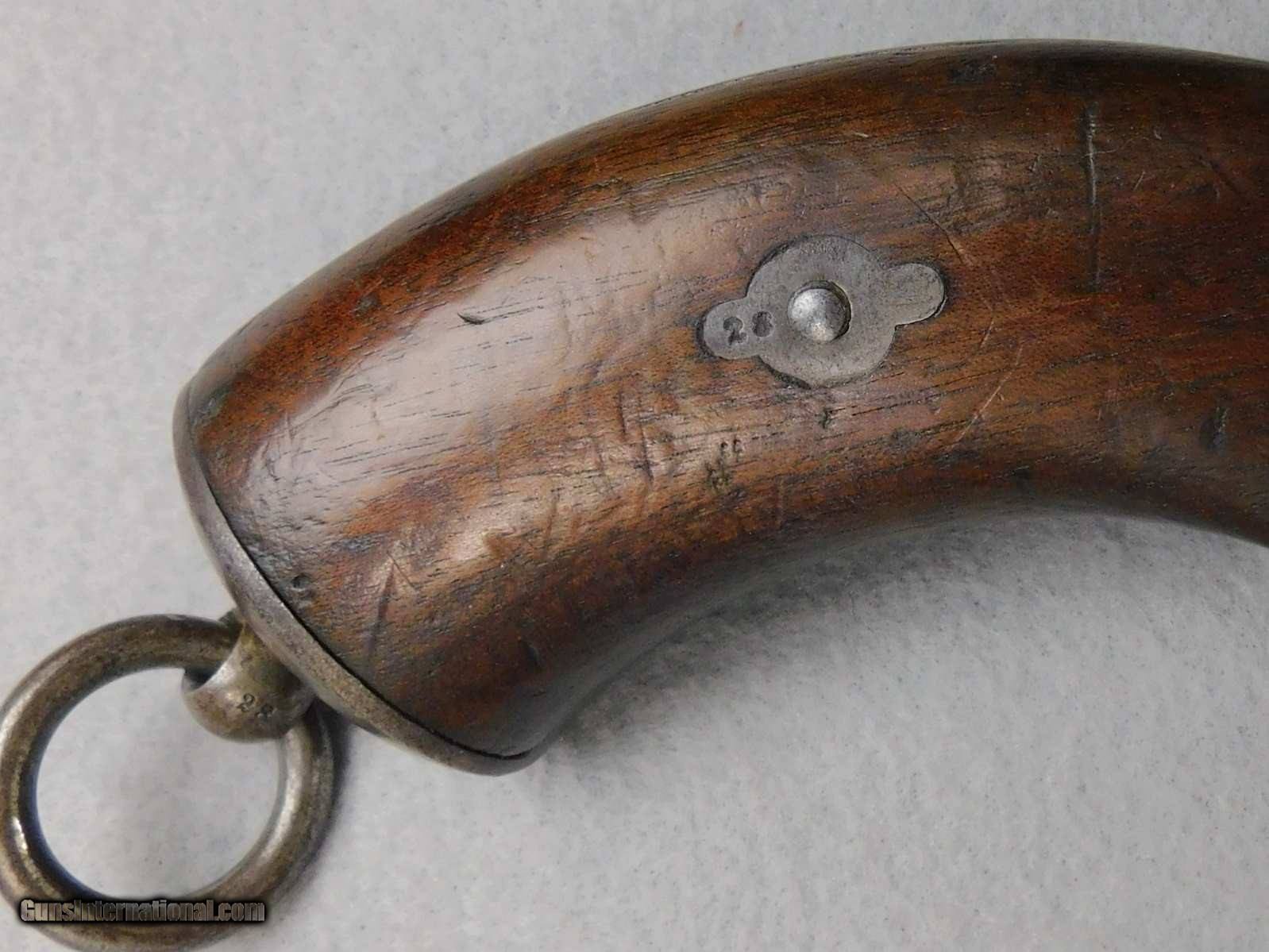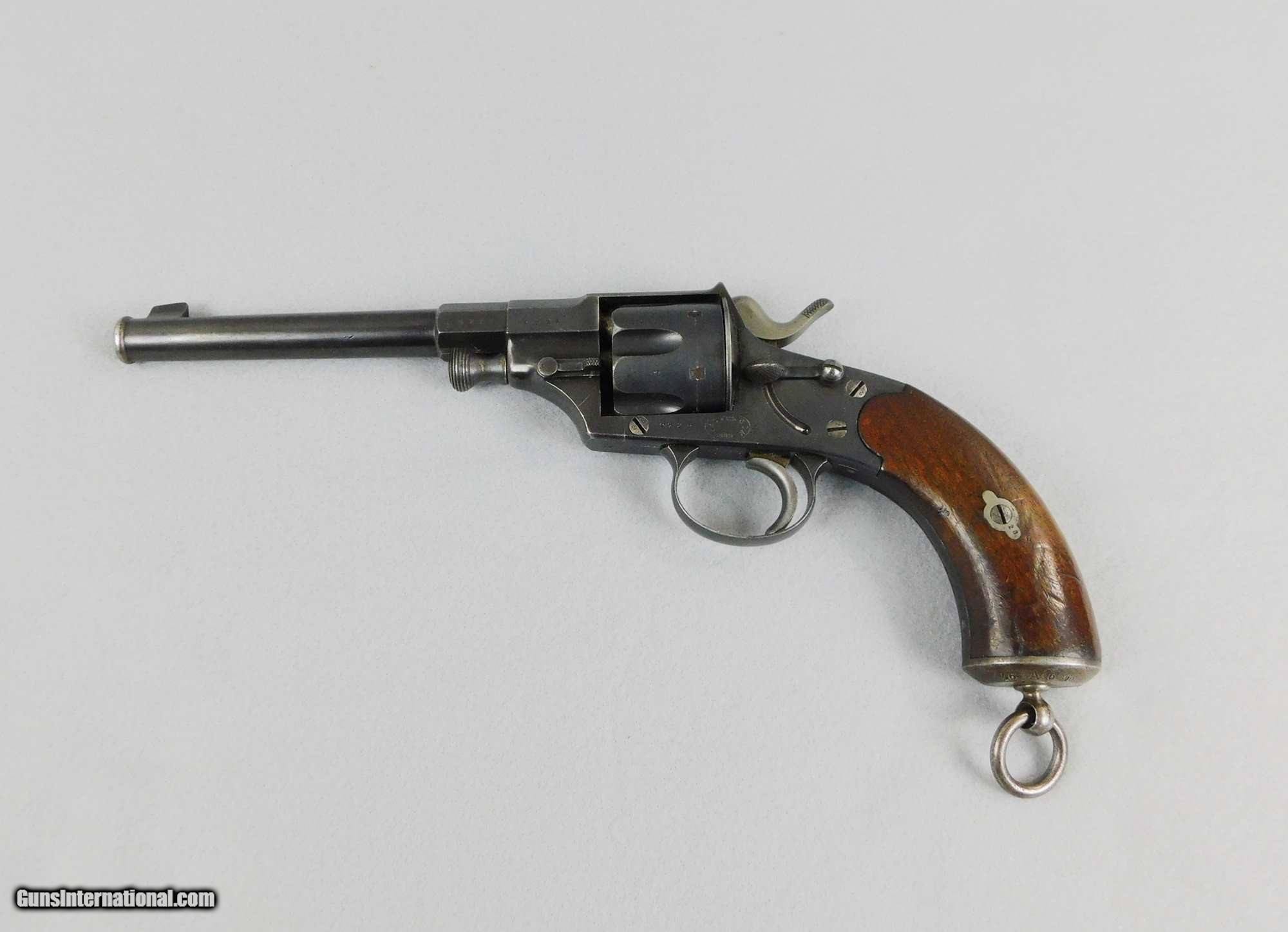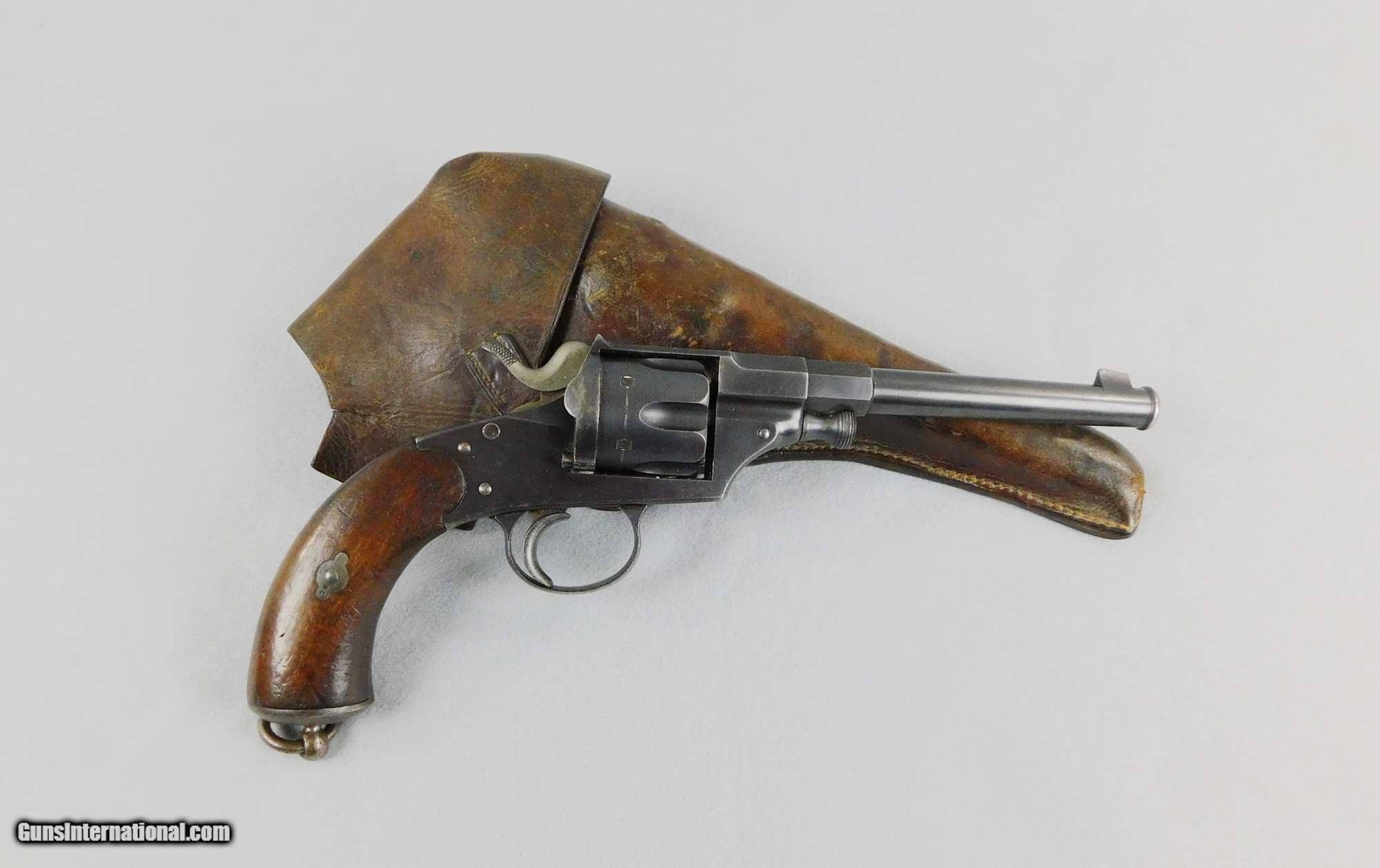 Description: This is an original German Model 1879 Reichsrevolver service pistol in 10.55 mm and is Regimentally marked on the butt. It is A.6. 70.46. and is all matching numbers and is serial number 6728. The mechanical function is very good crisp and tight. The bore is very good bright and shiny with strong rifling. The holster is maker marked on the back L Rigen/ Karlsruhe and dated 1900. Leather did not hold up as well as the revolvers so replacements were on hand at the arsenals. This service revolver retains 80% of the original brown color. My understanding is that reloads can be made with 44 S&W Russian brass and dies are available. I would consider trades for pre 1899 ANTIQUE PISTOLS and rifles on any of my items.. WHAT DO YOU HAVE TO TRADE? Ask about our 30-90 day lay-away program. We accept Bank Check, Money order, Personal checks or wire transfer. SOLD Antique: Yes Model: Model 1879 Reichsrevolver Serial Number: 6728 |