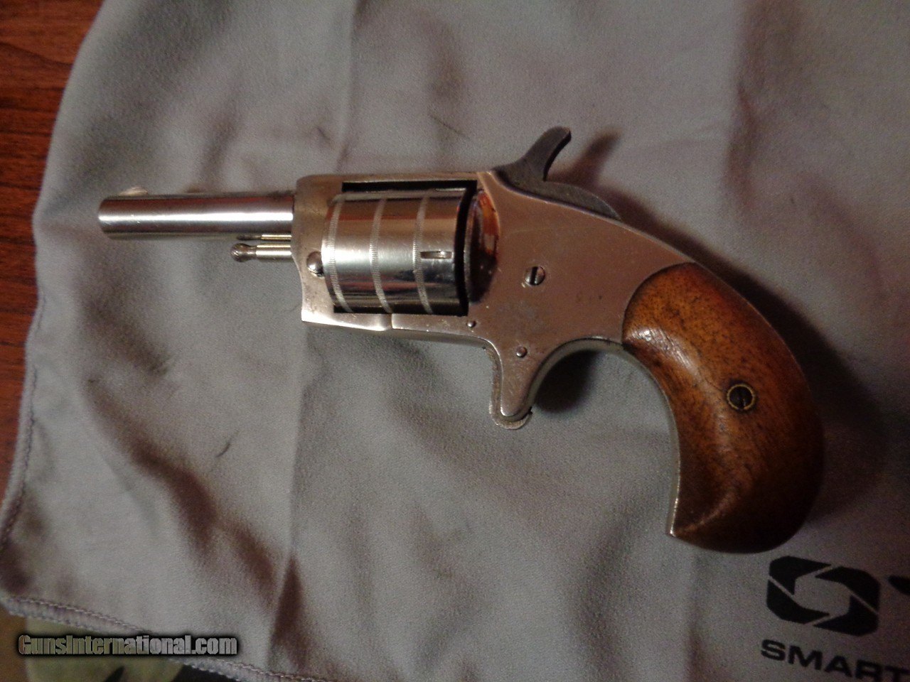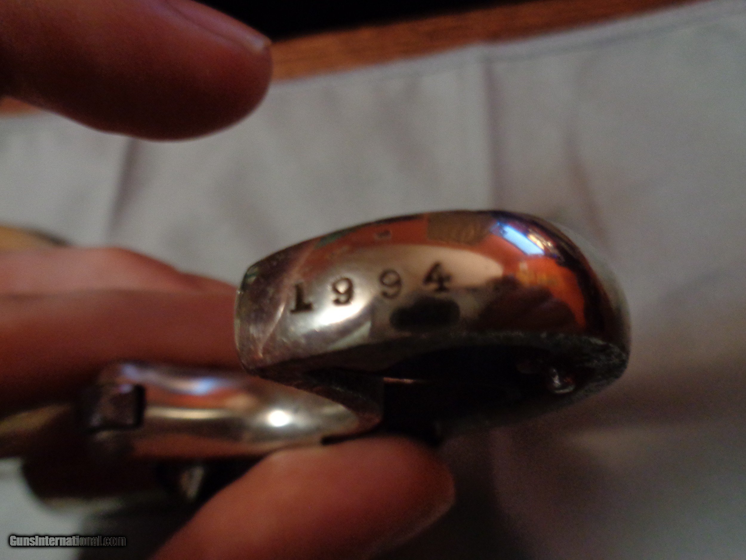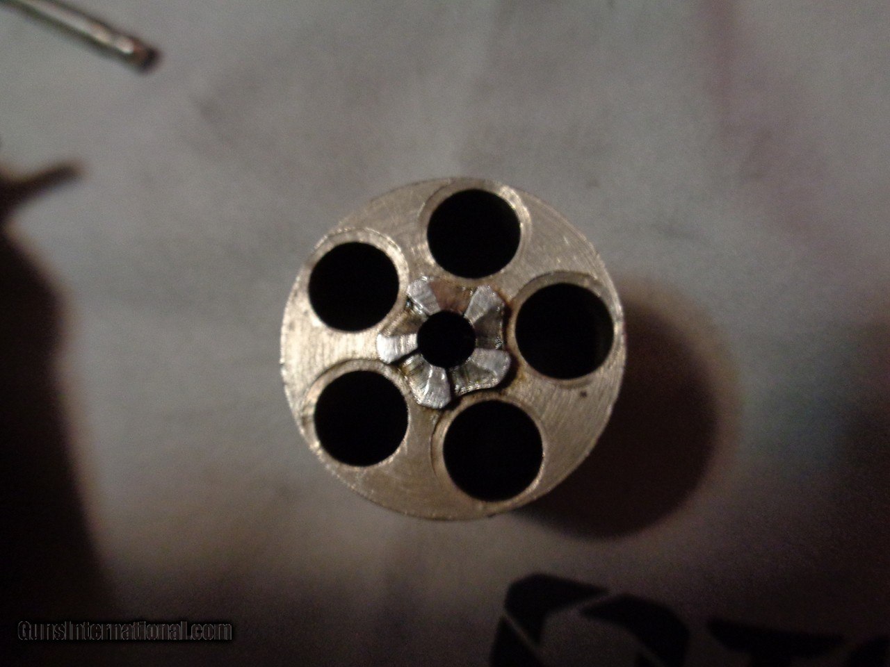 Description: A very nice example of a rare Hood Arms Hard Pan 2 in 32 RF late 1870s 5 shot spur trigger The gun over all is in excellent condition with 95% nickle remaining, mint grips birds head style Cylinder is shiny bore wise no pitting(pics posted)....barrel looks to be a smooth bore with the condition of the gun ,no pitting im gona say smooth bore was never rifled.....to wear the rifling out on a gun it has to be shot a lot to were the gun would show very hard usage wouldnt look in excellent condition wise nor mechanics condition.. Mechanics--safety works fine single cock ,gun times perfect and tight on each cylinder there is slight issue with the cylinder key locking arm wanting to engage sometimes,before lifter arm starts to rotate cylinder...very minor issue very slight touch on cylinder itl work perfect..possibly a spring has lost its tension a little bit..the lifter arm and cylinder locking arm both look in great condition hardly worn You dont usually find these with working actions that are tight or even functioning in this kind of condition,they usually have free spining cylinders,hammer wont stay back ect A very nice example,would make a nice addition to any fine gun collection Gun has very low serial as well at #1994 all numbers match including grips which are numbered Listing updated---new pics posted $525 free shipping and insurance usps priority mail Any questions please feel free to ask Thanx for looking!!!! SOLD Antique: Yes Handgun Caliber: .32 Rimfire |