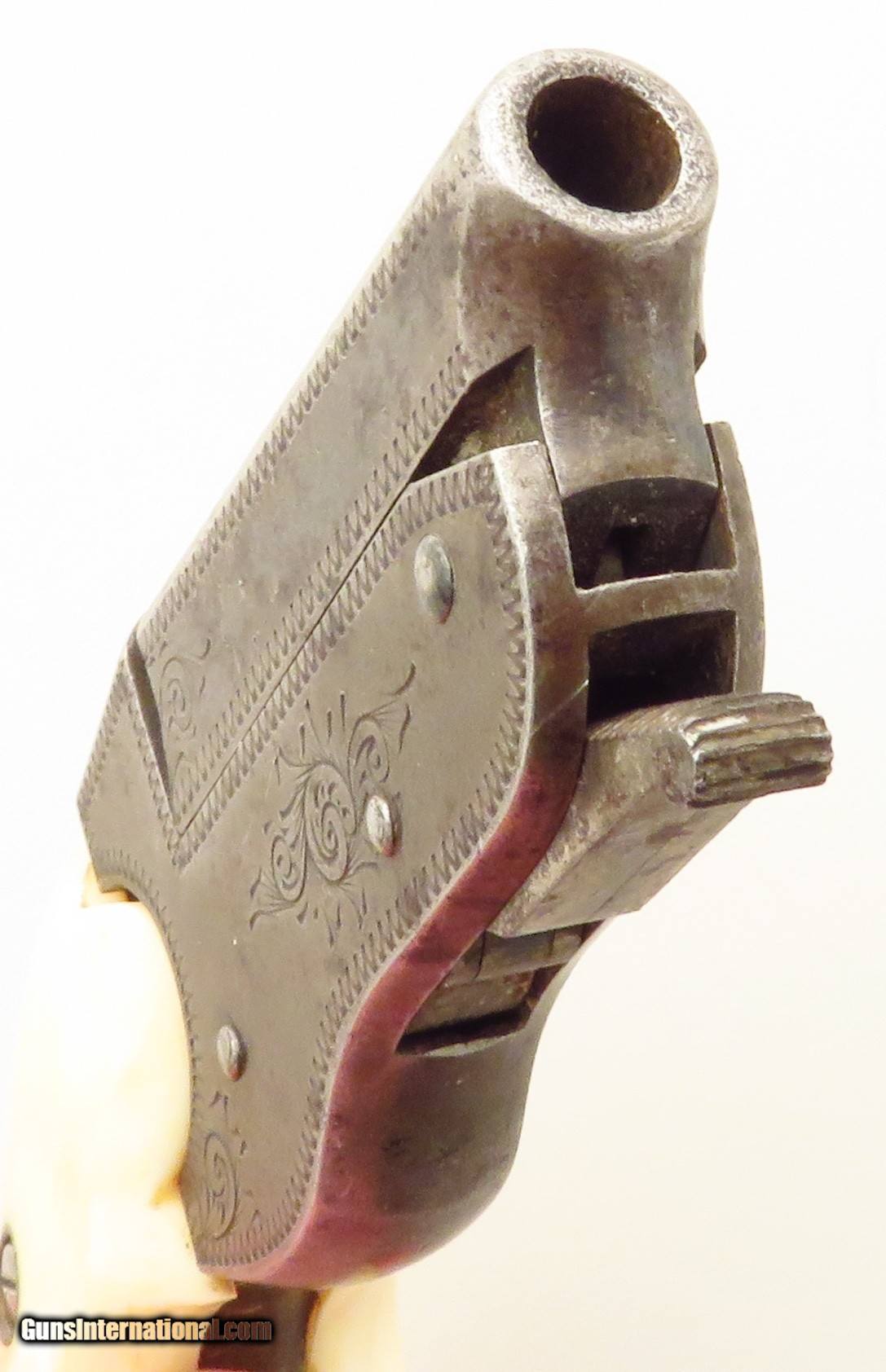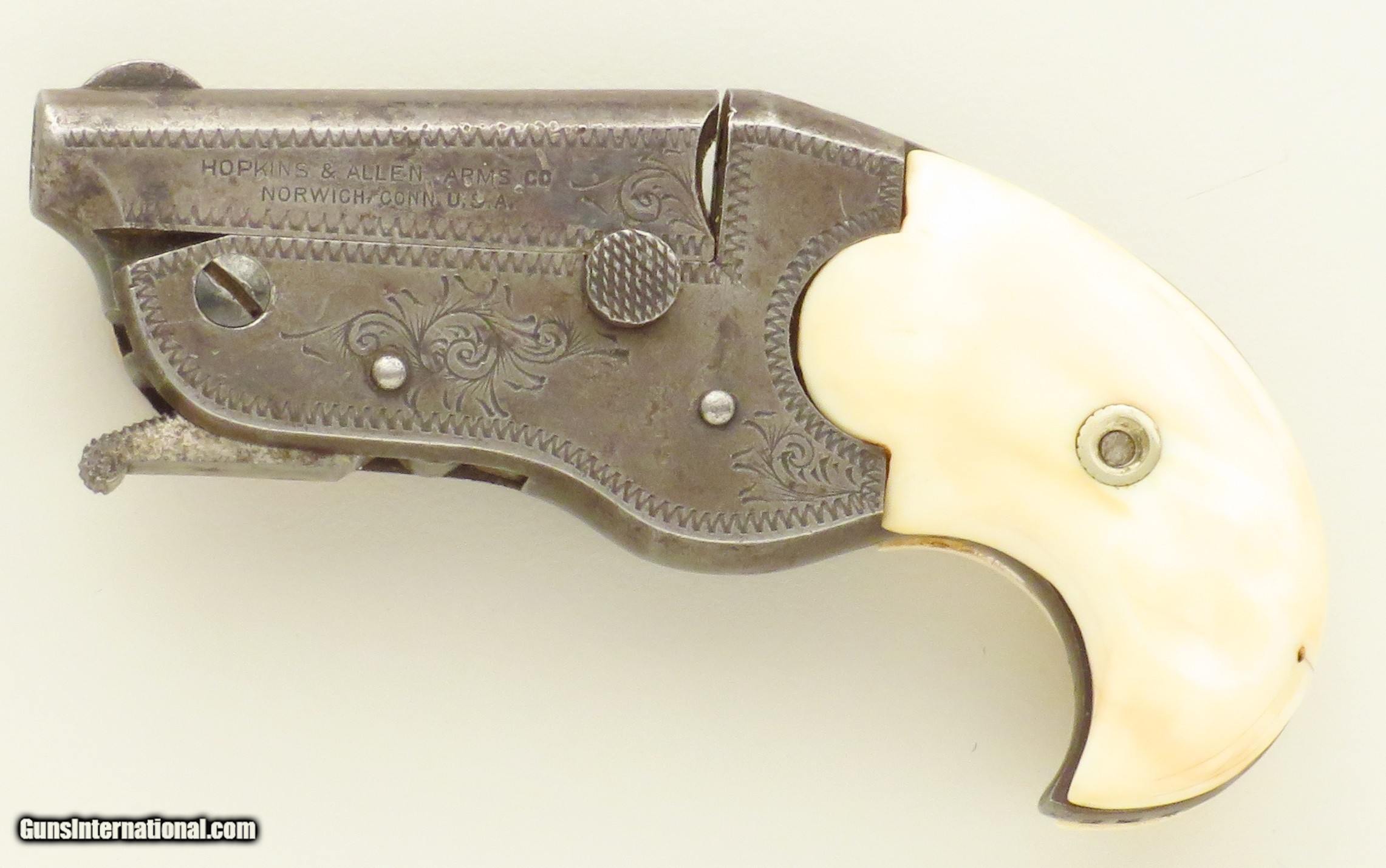 Hopkins & Allen .22 caliber derringer, serial 256, folding trigger, ivory, engraving, layaway