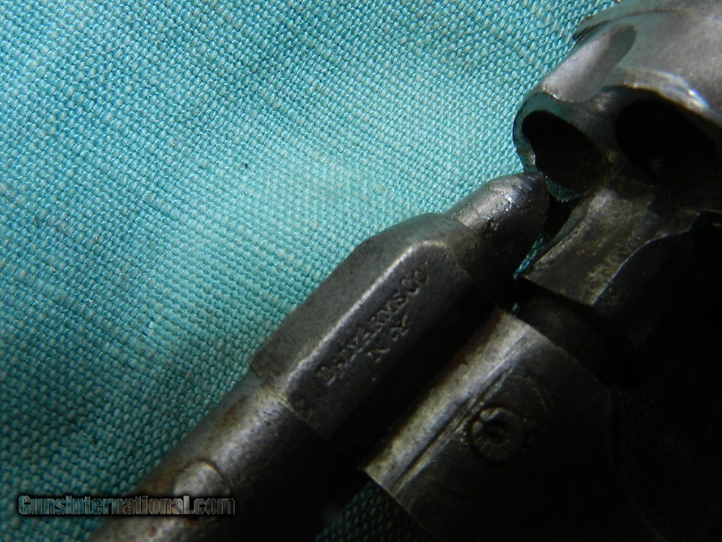 Description: An interesting imported Belgium .32 rimfire revolver with a stamping of: BALY Arms , N.Y. on the breech of the barrel. Iy is evident that this was imported and had the breech spiked and pinned and the cylinder face cut off for blank cartridges or gas cartridges that are rim fire. Gun exterior looks complete , but hammwr locks when trying to pull back, Has French walnut grips. Measures about 6 1/2" long with a 2 3/4" long barrel.. Matbe good for parys or restoration? When buying a gun always have it examined by a competent gunsmith before shooting. To buy a gun from me you must get a direct email for me, with details, and shipping cost. We don’t have a web site .I prefer money orders or a check. Item ships when funds come in. I try to keep guns affordable, which means I make less money than most dealers. You won’t get altitude sickness, or nose bleed, with my prices! I consistently have the best selection of older guns If you attempt to buy, you must still contact us for details . Best to email to buy. Sometimes a local person can stop buy and purchase before the gun is removed. Sometimes not home to get calls. Some guns are required shipment to a gun dealer near you for a transfer to you when it arrives. Otherwise many older or black powder guns ship to your door. With the widest selection of older guns at great prices, We don’t have a store, and sell on the internet only. I’m easy to get along with. Thank You SOLD Antique: Yes |