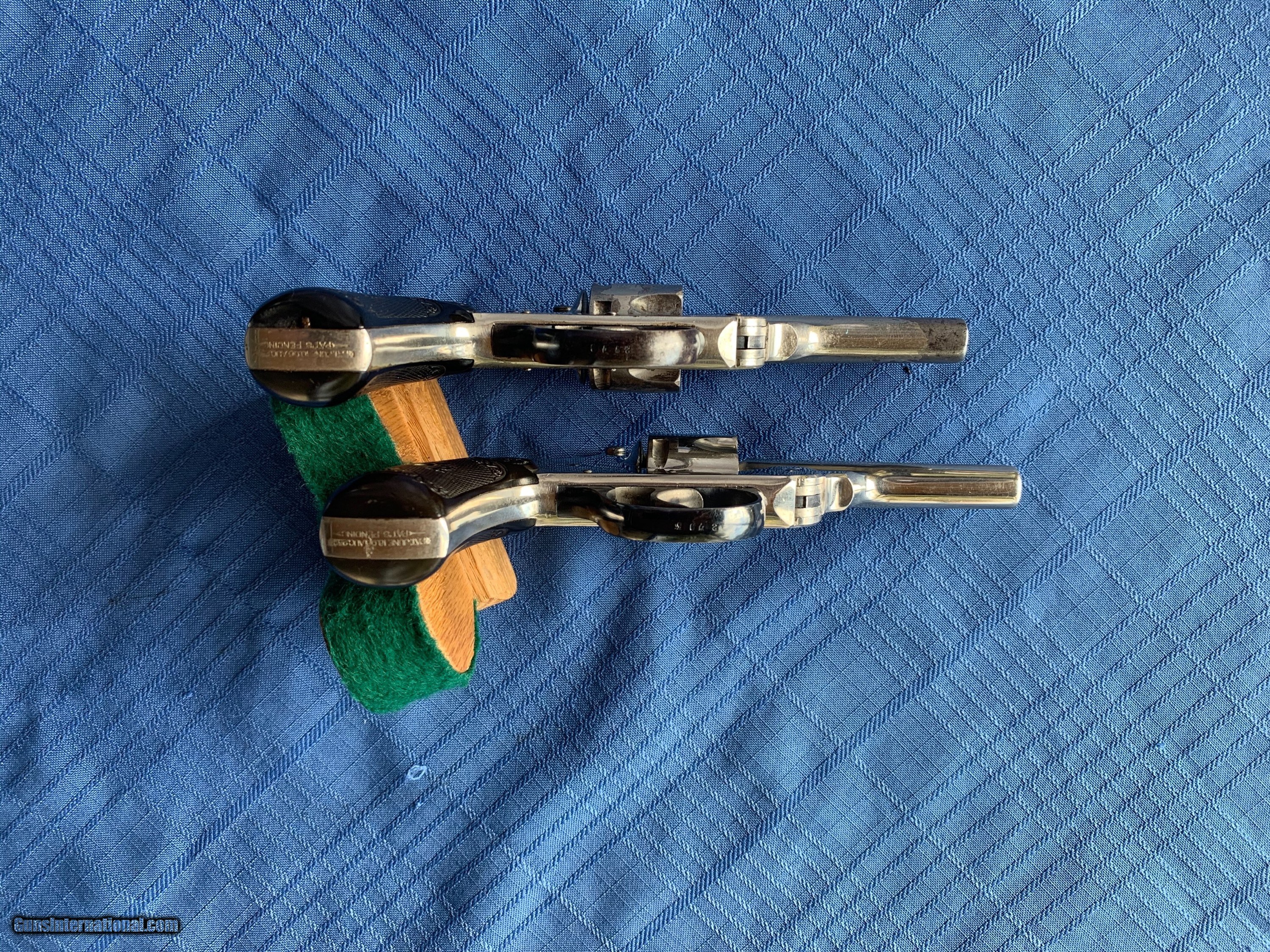 Description: Heres 2 Antique Revolvers in 32 Caliber made by Iver Johnson. Both guns are Factory Nickel Finish. Both guns are 32 caliber. Both guns have Excellent bores and Mechanics. Both guns lock up tight and are in Working Order. Overall very nice Examples. Please review my photos and email me with any questions ? 3 day inspection as allways . Thank you for looking Little Jo SOLD Antique: Yes Manufacturer: Iver Johnson Model: Antique Revolvers |