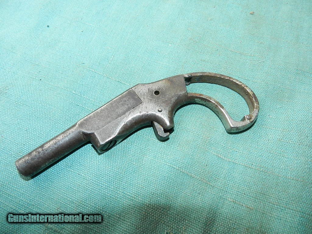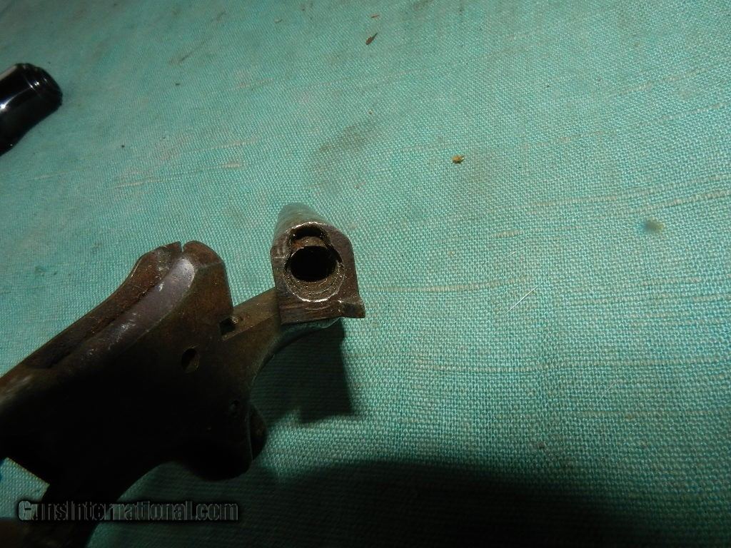 Description: A good project this spur trigger black powder .22 shot revolver measures about 4 3/4" long with a 2 1/2" long barrel, and swing out lock-up works well. the exterior metal is patina and not pitted. No name or numbers found on this pocket revolver . HAs the barrel screw, and trigger with a strong trigger return spring. Needs grips , hammer and pawl . When buying a gun always have it examined by a competent gunsmith before shooting. To buy a gun from me you must get a direct email for me, with details, and shipping cost. We don’t have a web site .I prefer money orders or a check. Item ships when funds come in. I try to keep guns affordable, which means I make less money than most dealers. You won’t get altitude sickness, or nose bleed, with my prices! I consistently have the best selection of older guns If you attempt to buy, you must still contact us for details . Best to email to buy. Sometimes a local person can stop buy and purchase before the gun is removed. Sometimes not home to get calls. Some guns are required shipment to a gun dealer near you for a transfer to you when it arrives. Otherwise many older or black powder guns ship to your door. With the widest selection of older guns at great prices, We don’t have a store, and sell on the internet only. I’m easy to get along with. Thank You SOLD Antique: Yes |