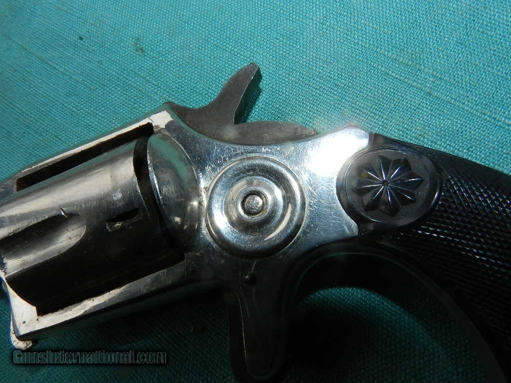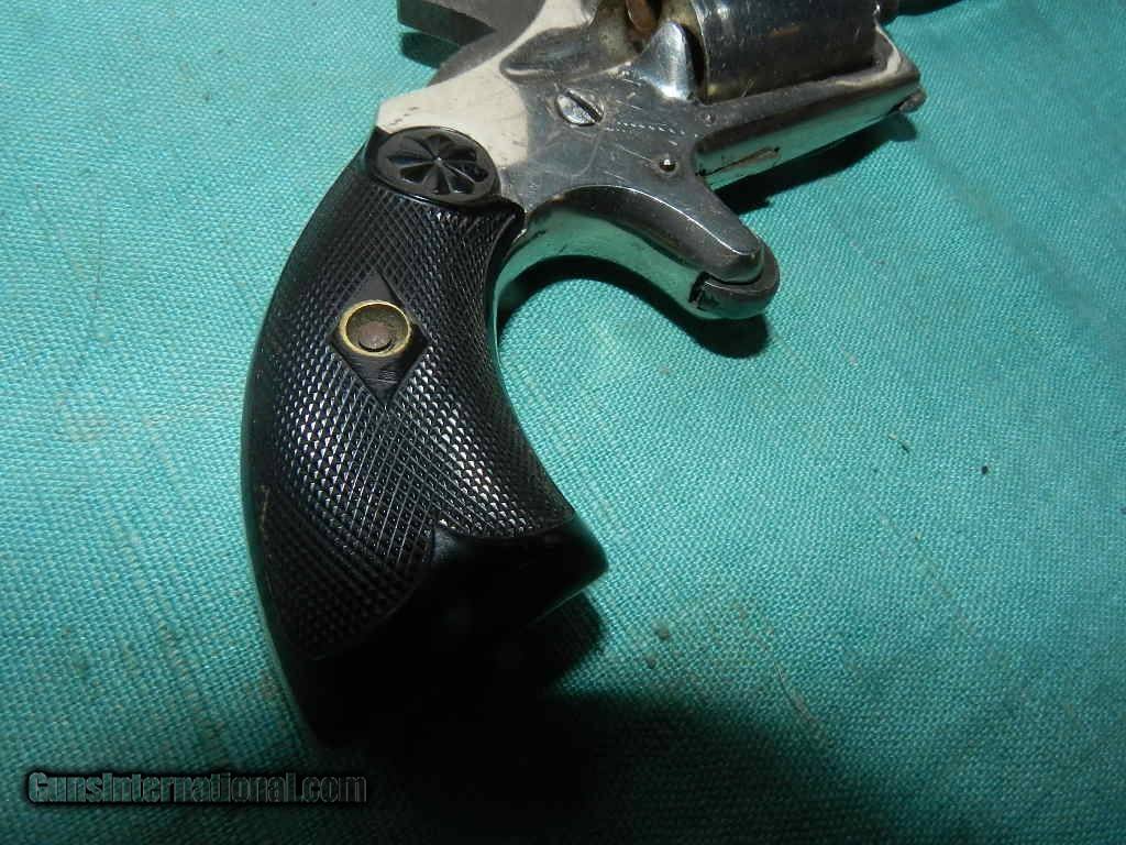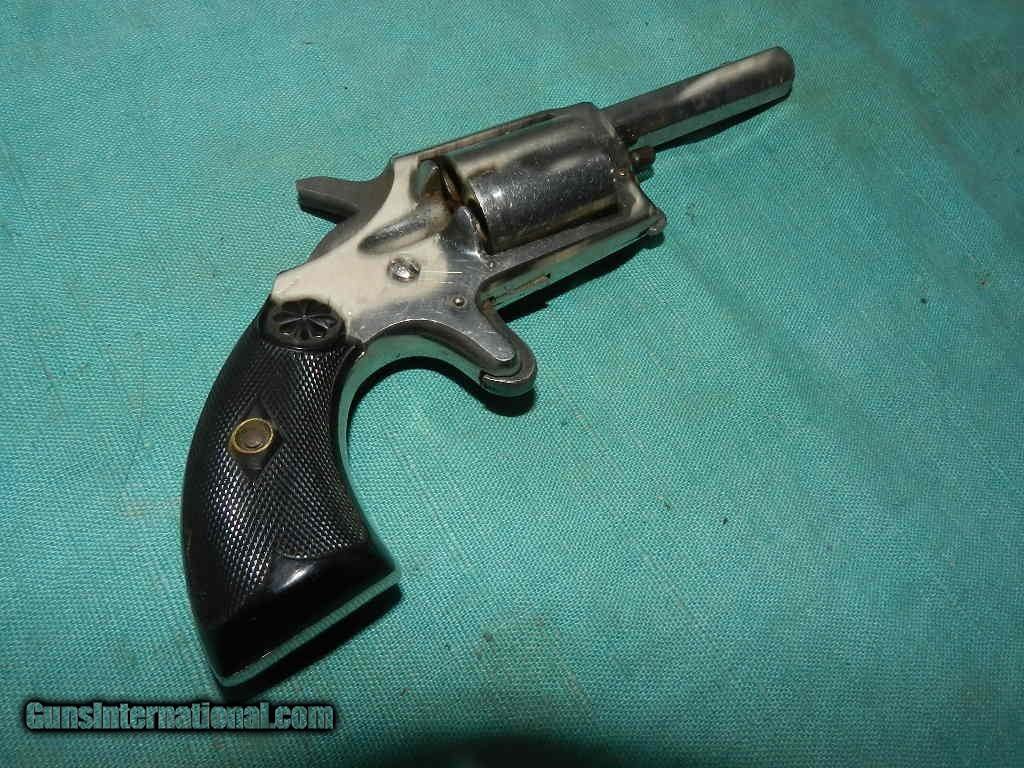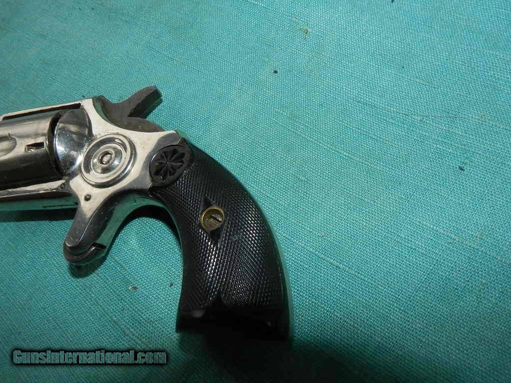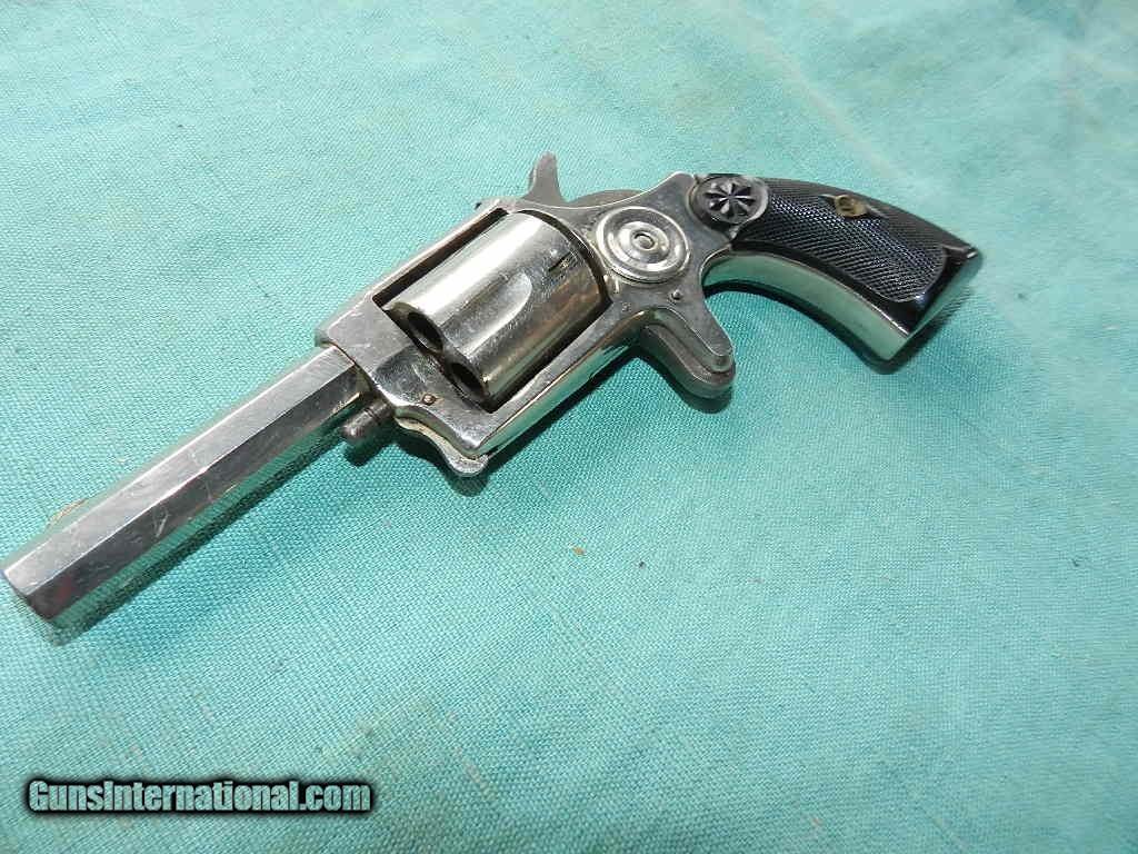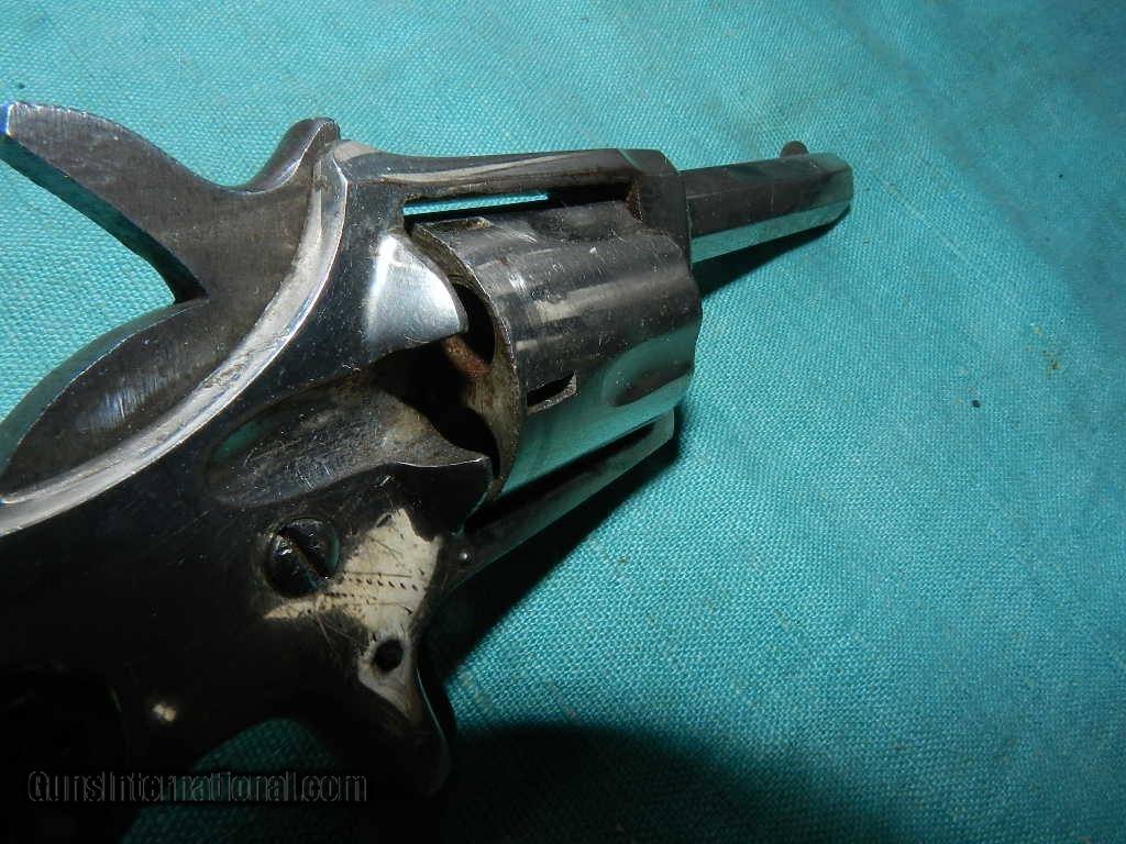 Description: An interesting .32 rim fire revolver , with a 2 5/8" octagonal barrel and a decent bore with strong rifling and the surface metal has surface corrosion. The original nickle finish is about 97% and the factory black hard rubber grips are very sharp detail, with no wear. Mechanically the gun rotates the cylinder and sometimes gets out of time and locks, Has the cylinder stop and hand . This mode has the half moon brass blade sight. This gun was made by Hood Firearms. Check my inventory of rare grips, unusual gun parts, barrels and holsters. Shipping may be higher than stated as shippers raise their prices twice year without notice! When buying a gun always have it examined by a competent gunsmith before shooting. To buy a gun from me you must get a direct email for me, with details, and shipping cost. We don’t have a web site .I prefer money orders or a check. Item ships when funds come in. If you can only pay with a card let me know. I try to keep guns affordable, which means I make less money than most dealers. You won’t get altitude sickness, or nose bleed, with my prices! I consistently have the best selection of older guns If you attempt to buy, you must still contact us for details . Best to email to buy. Sometimes a local person can stop buy and purchase before the gun is removed. Sometimes not home to get calls. Some guns are required shipment to a gun dealer near you for a transfer to you when it arrives. Otherwise many older or black powder guns ship to your door. With the widest selection of older guns at great prices, We don’t have a store, and sell on the internet only. I’m easy to get along with. Thank You. SOLD Antique: Yes |