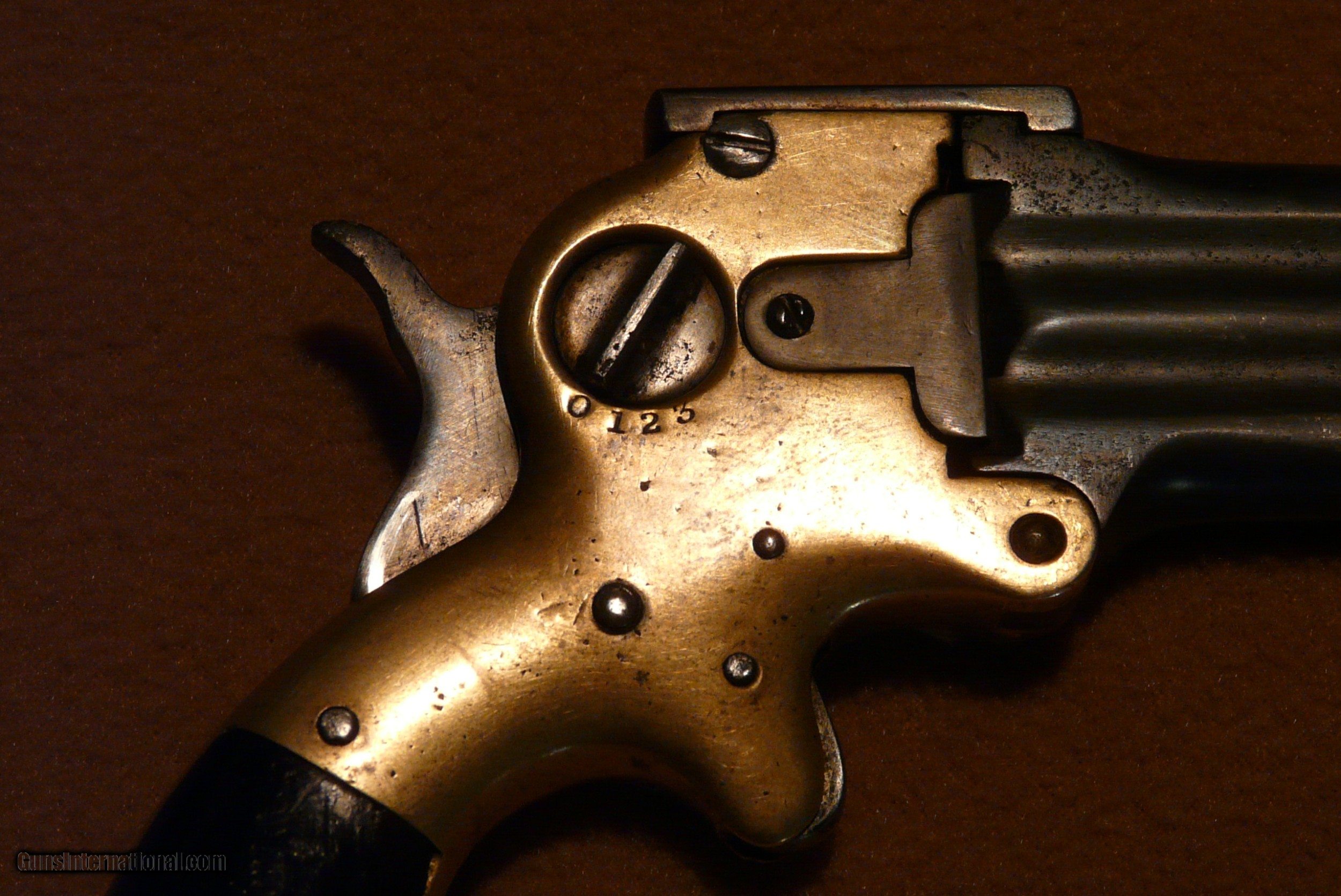 Description: Ser# 888 31 caliber three shot, brass receiver, steel barrels with Good rifled Bores, with some pitting !! Over all very good working condition also !! Antique, can be shipped to buyers home address, THis Gun is sold , thanks Mike SOLD |