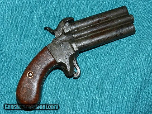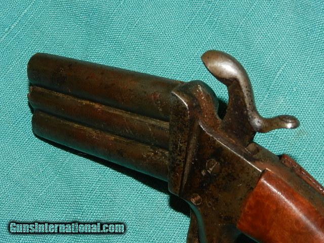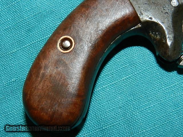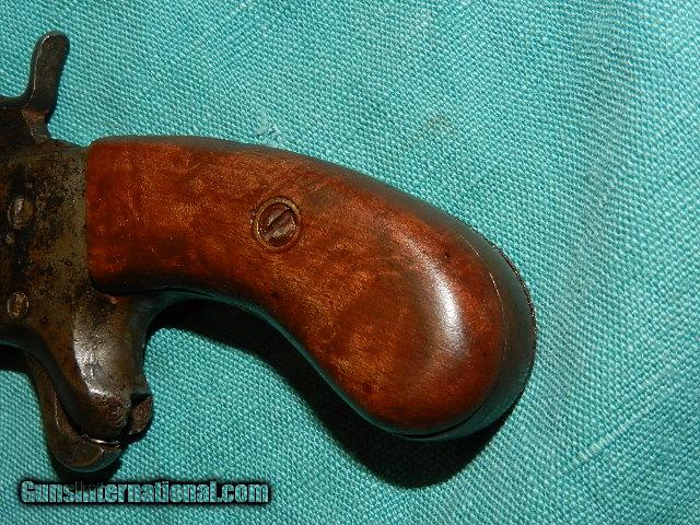 Description: An interesting small frame over/under turn barrel pin fire of about .36 caliber. The overall length is about 5 1/2" with barrels of about 2 1/2" long. The bore have soft visible rifling and surface corrosion. the outside metal is about grey, with traces of smooth brown. The action works good but the mainspring is weak.The barrels swing to the left . Grips are a burl wood that looks European. Gun is most likely French or Belgium. We don’t have asite .I prefer money orders or a check. Item ships when funds come in. If you can only pay with a card let me know. I hope you like my wide selection of unusual guns, knives and gun parts. Shipping price determined by zip code. I try to keep the prices affordable, which means I make less money than most dealers. You won’t get altitude sickness with my prices! I consistently have the best selection of older guns If you BUY IT NOW you must still contact us for details buy it now doesn't end the sale, it just sends an email telling us you want to buy this gun. A phone call won’t secure a sale! Not home many times, the first buyer by email buys the gun !Thissite doesnot close down a sale when you do a BUY IT NOW like Ebay!I can get six buy it nows in an hour, first buyer to email gets the guns, others are in second place! Best to send another email . Sometimes not home to get calls. Some guns are required shipment to a gun dealer near you for a transfer to you when it arrives. With the widest selection of older guns at great prices, We don’t have a store, and sell on the internet only. SOLD Antique: Yes |